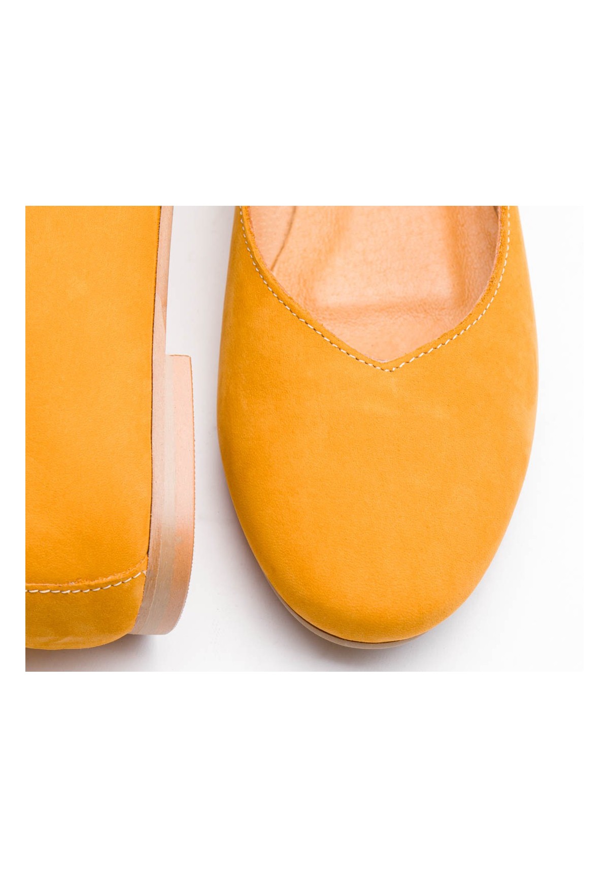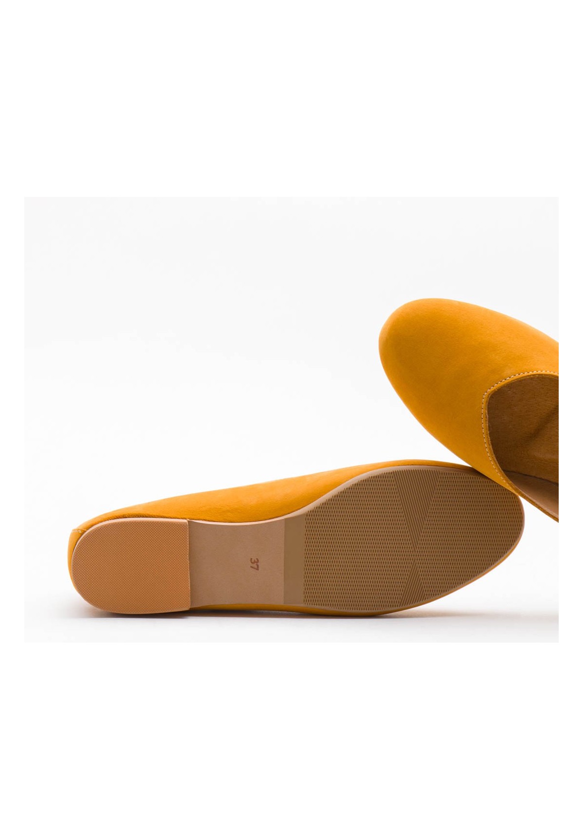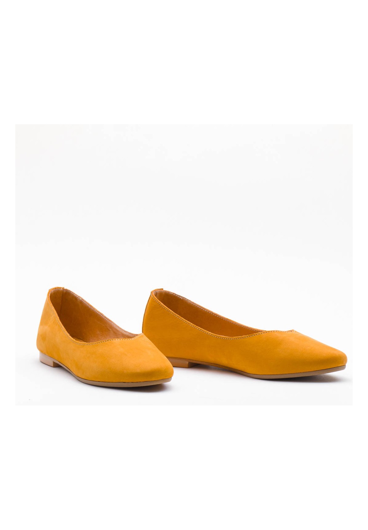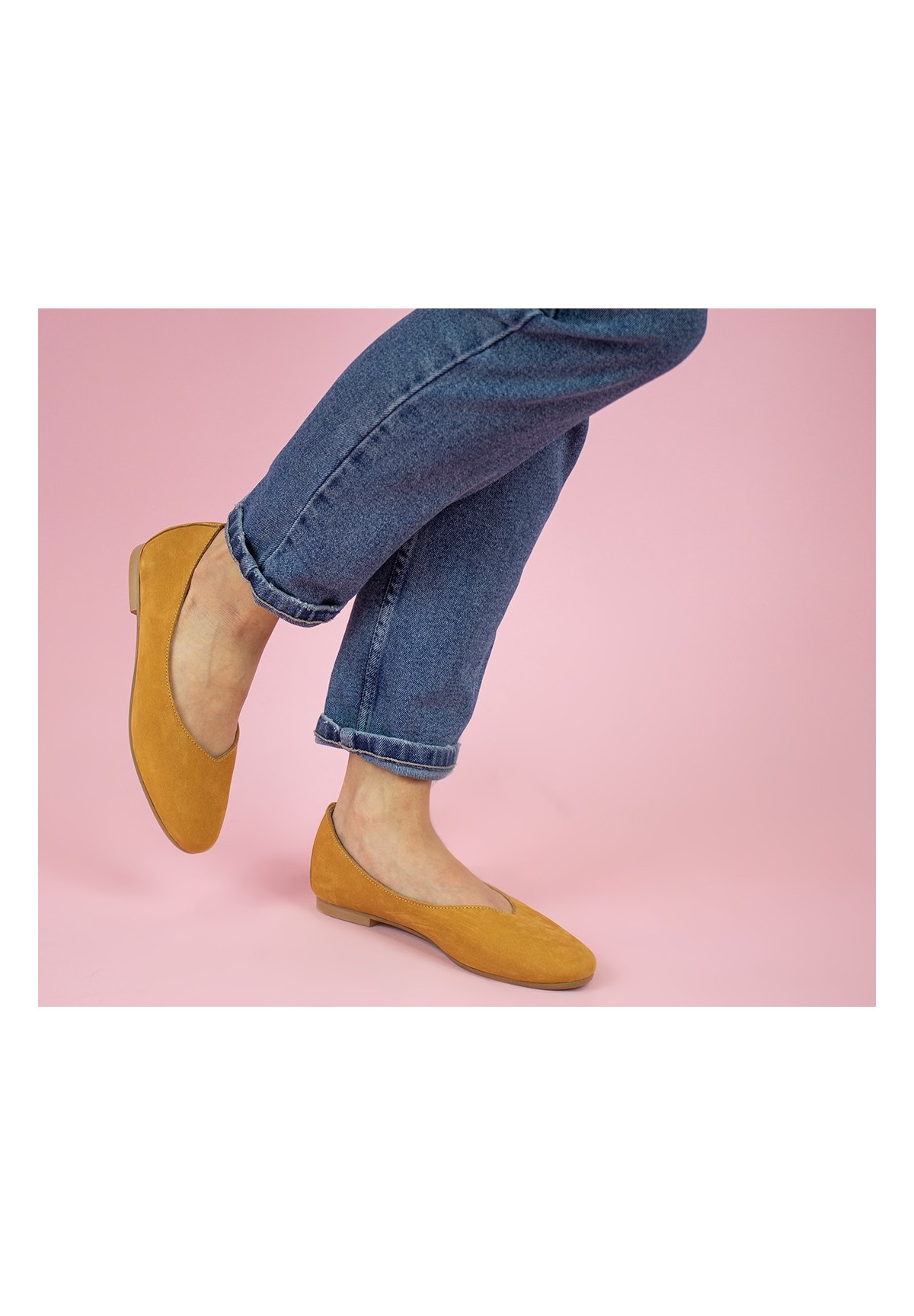Klasyczne baleriny damskie niezależnie od trendów, cieszą się niesłabnącą popularnością. Zostały wykonane z najlepszej jakości skóry zamszowej w kolorze żółtym. Praktyczny model pasuje do każdej stylizacji. Buty idealnie dopasowują się do stopy, a miękka wkładka zapewnia odpowiedni komfort podczas chodzenia. Delikatnie wycięte w górnej części cholewki.