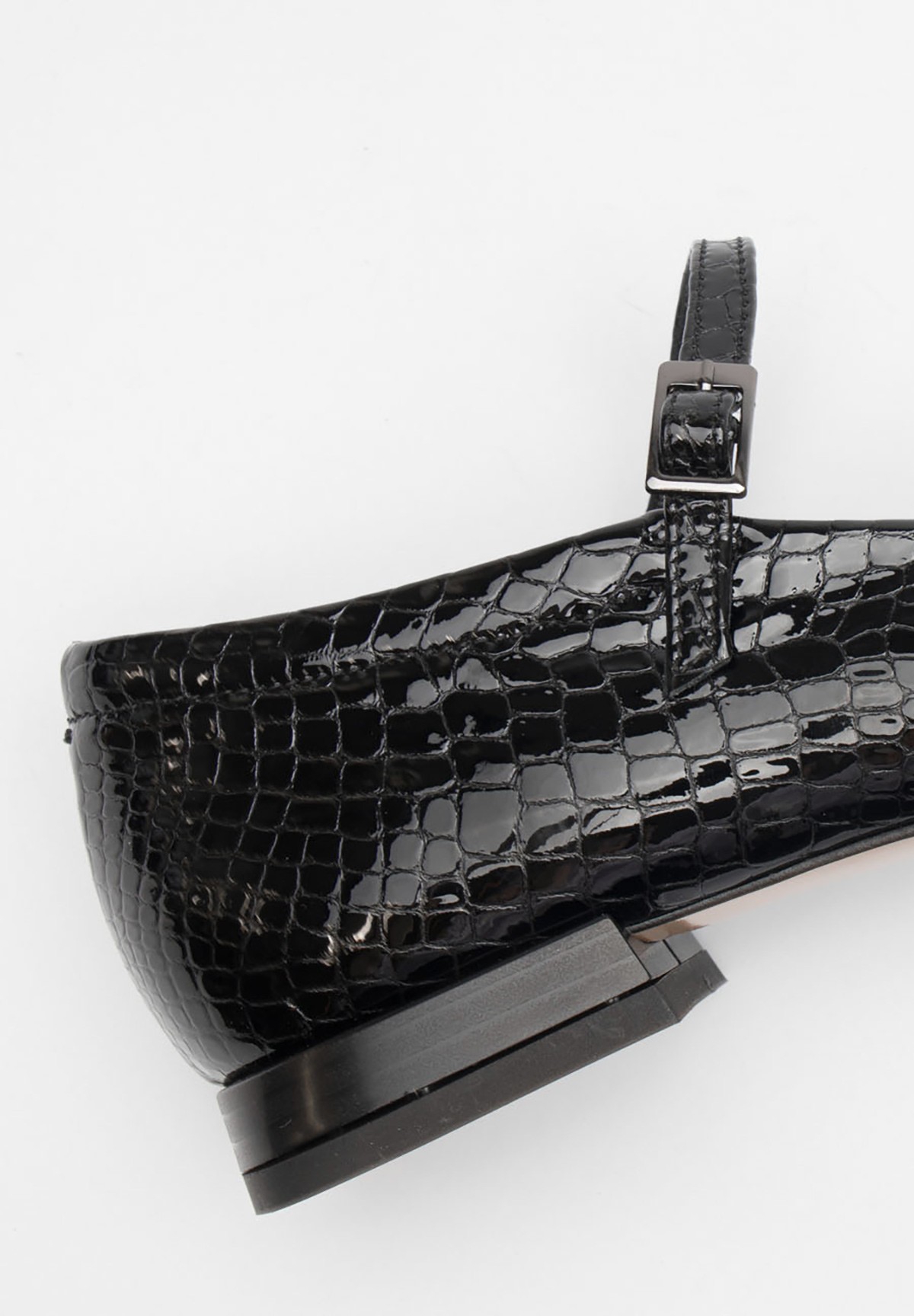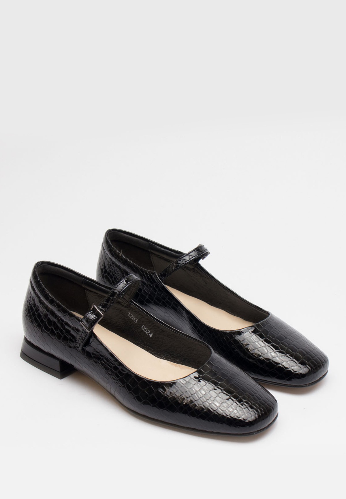 Baleriny damskie w typie Mary Jane to połączenie klasyki i wygody - idealne dla kobiet ceniących sobie elegancję oraz komfort. Wykonane z wysokiej jakości skóry lakierowanej. Ich prosty, lecz elegancki design wyróżnia się kwadratowym, ściętym noskiem, dodając charakteru całej stylizacji. Kluczowym elementem tych balerin jest zapięcie za pomocą paska z klamrą, które dodaje nie tylko funkcjonalności, ale także subtelnej nuty szyku. Baleriny posiadają podeszwę z niskim obcasem, która zapewnia stabilność podczas chodzenia, pozwalając na swobodne poruszanie się przez cały dzień. Wnętrze wyścielane jest naturalną podszewką oraz wkładką, co gwarantuje maksymalny komfort noszenia. Dzięki temu buty te idealnie dopasowują się do stopy i zapewniają uczucie lekkości nawet podczas długotrwałego noszenia.