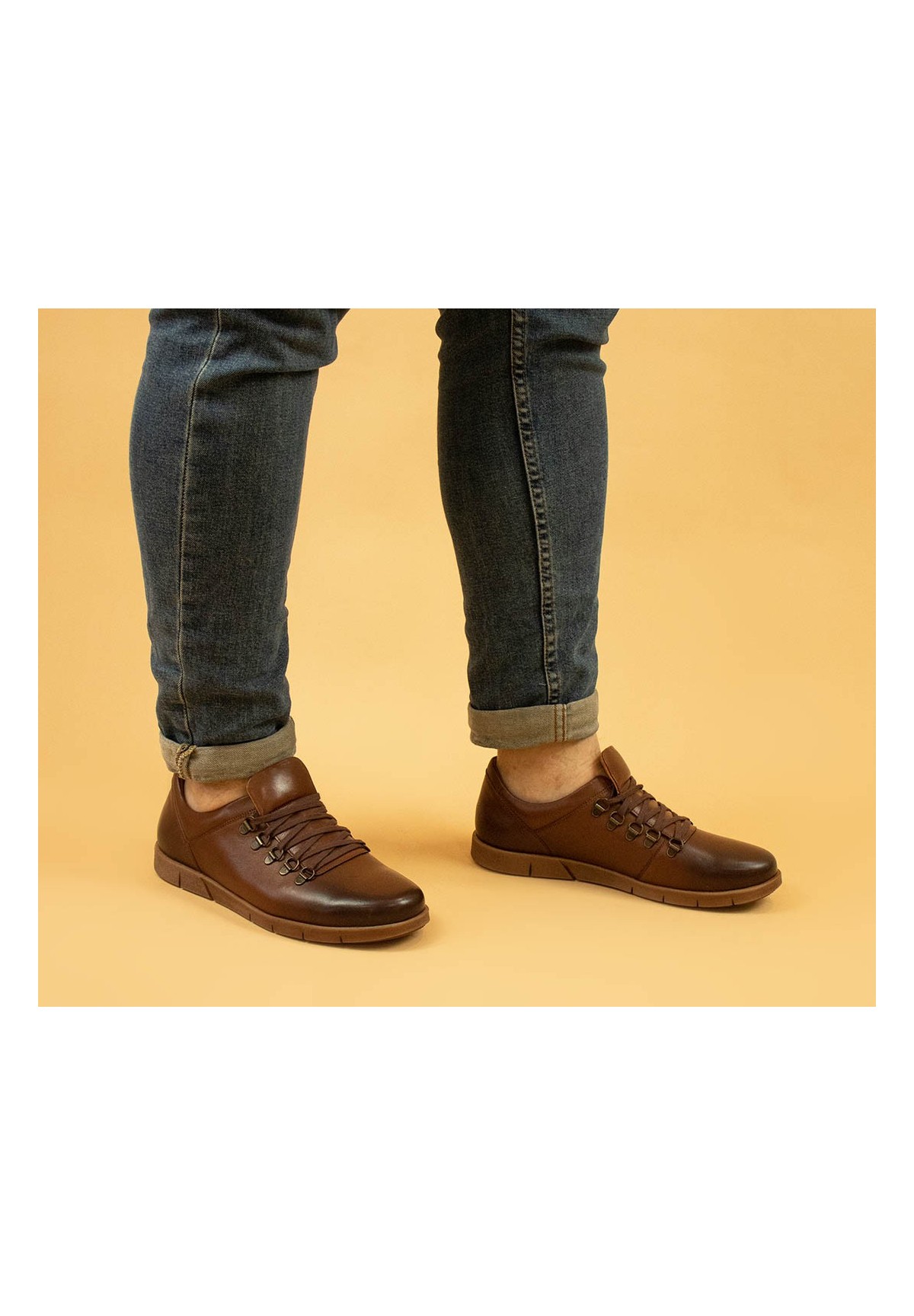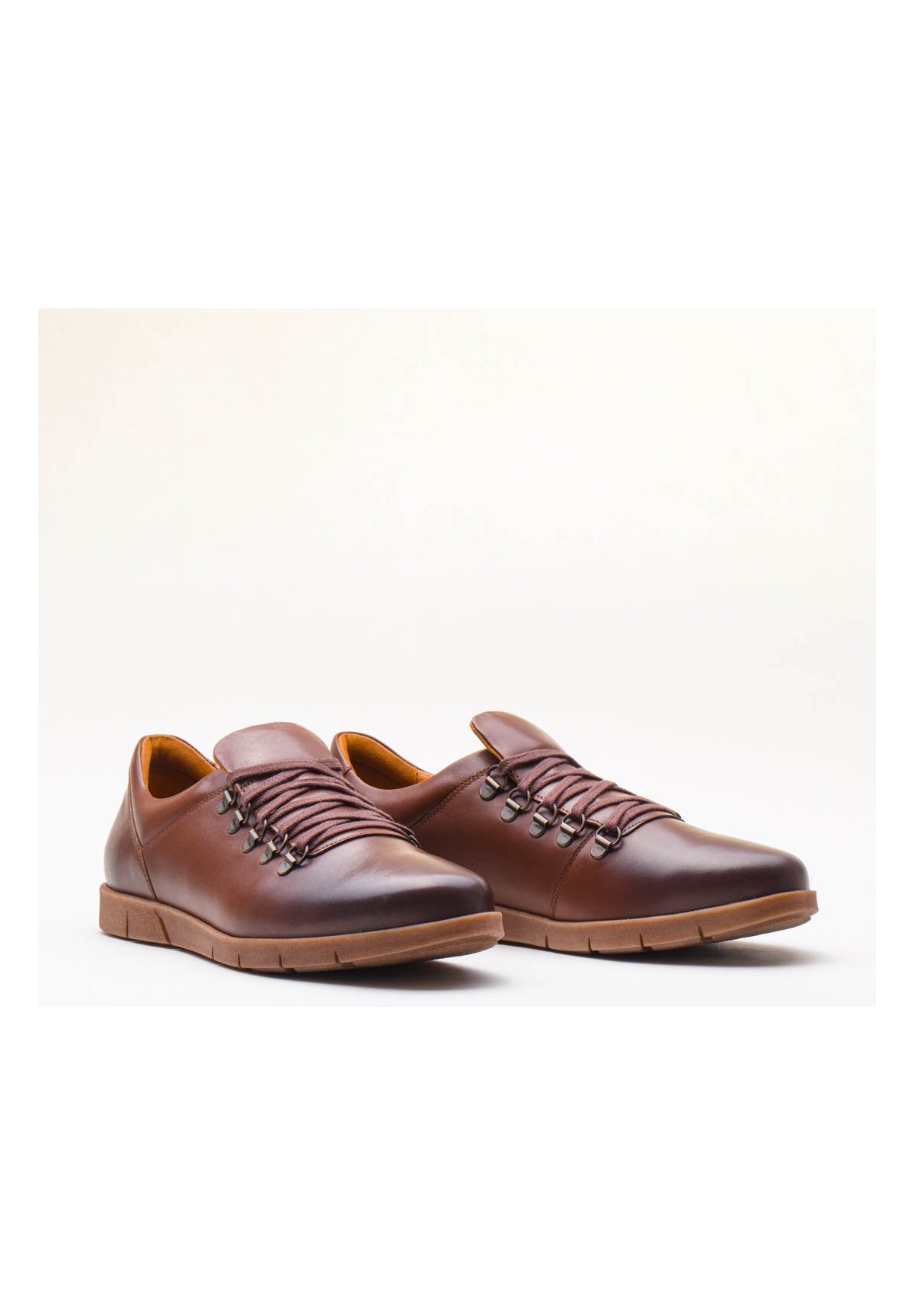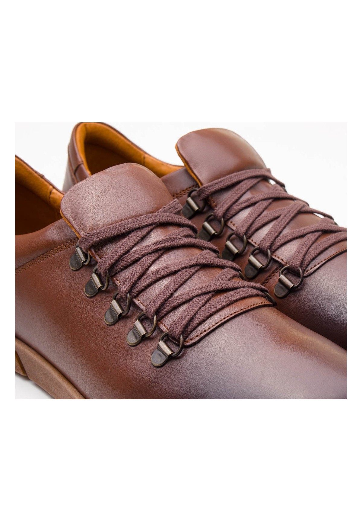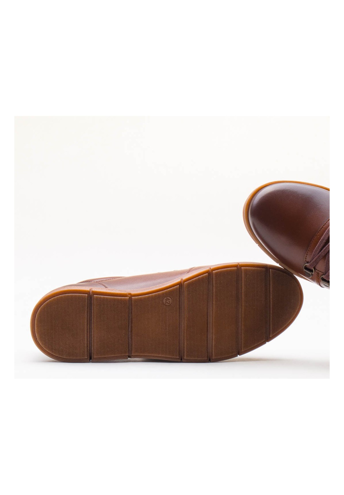 Brązowe półbuty wykonane ze skóry licowej. Wygodny, uniwersalny model pasujący do wielu stylizacji.