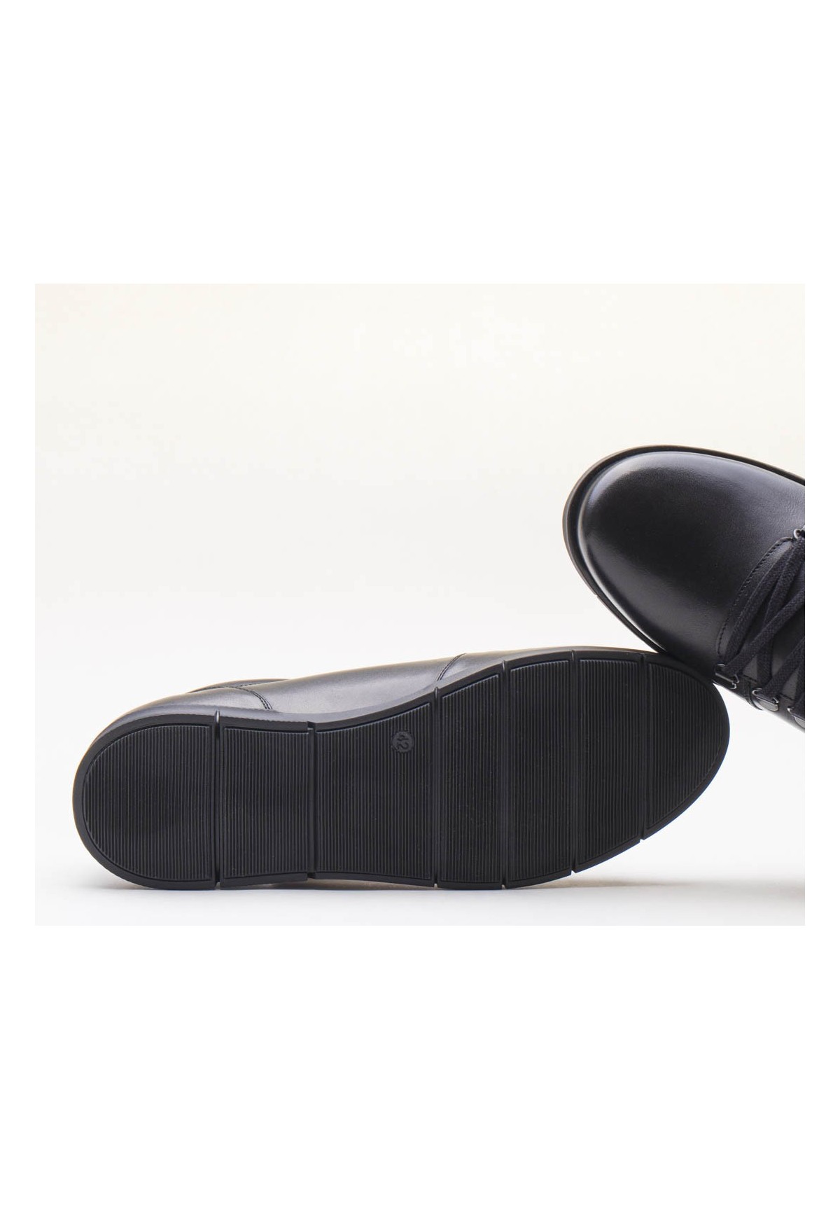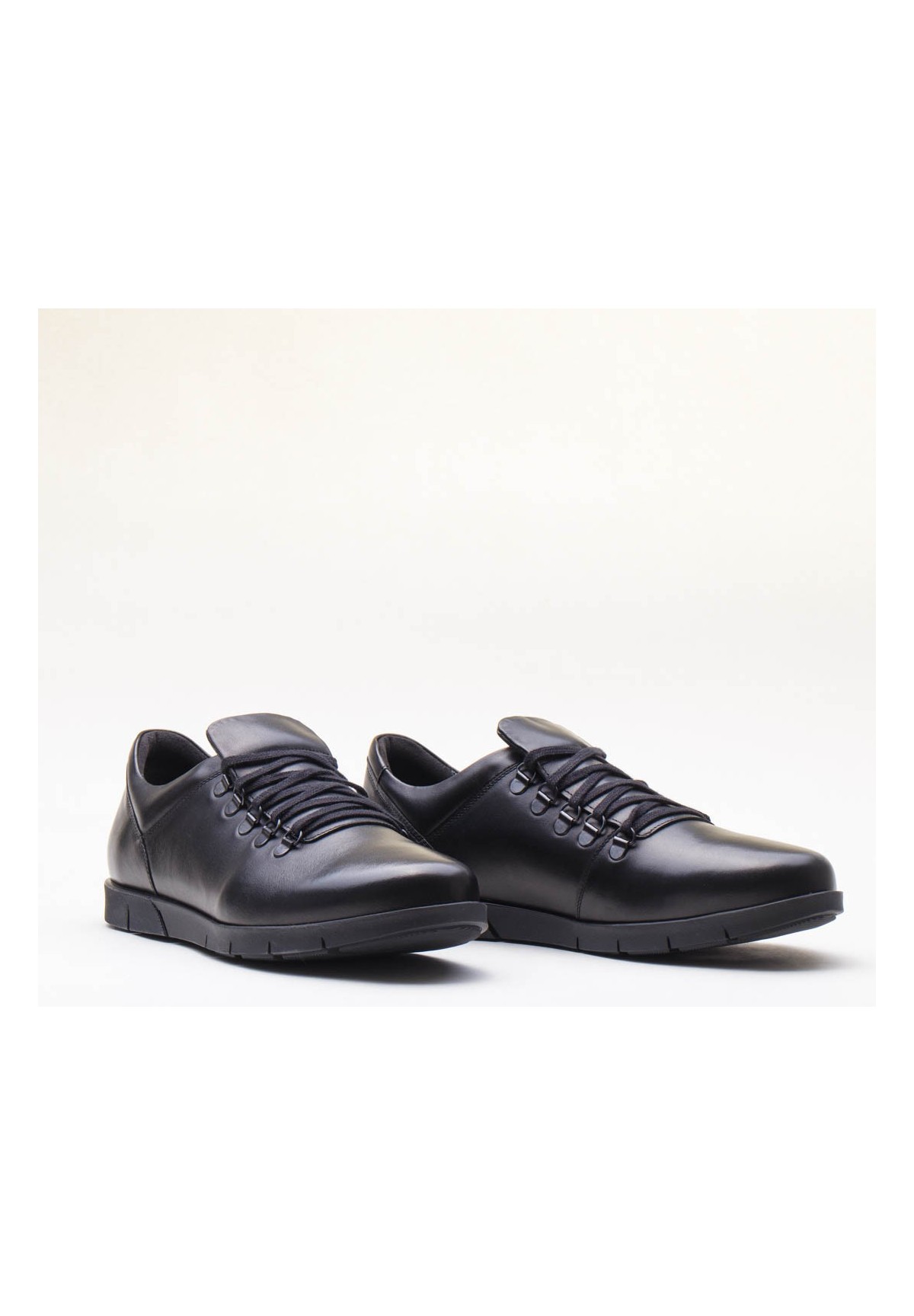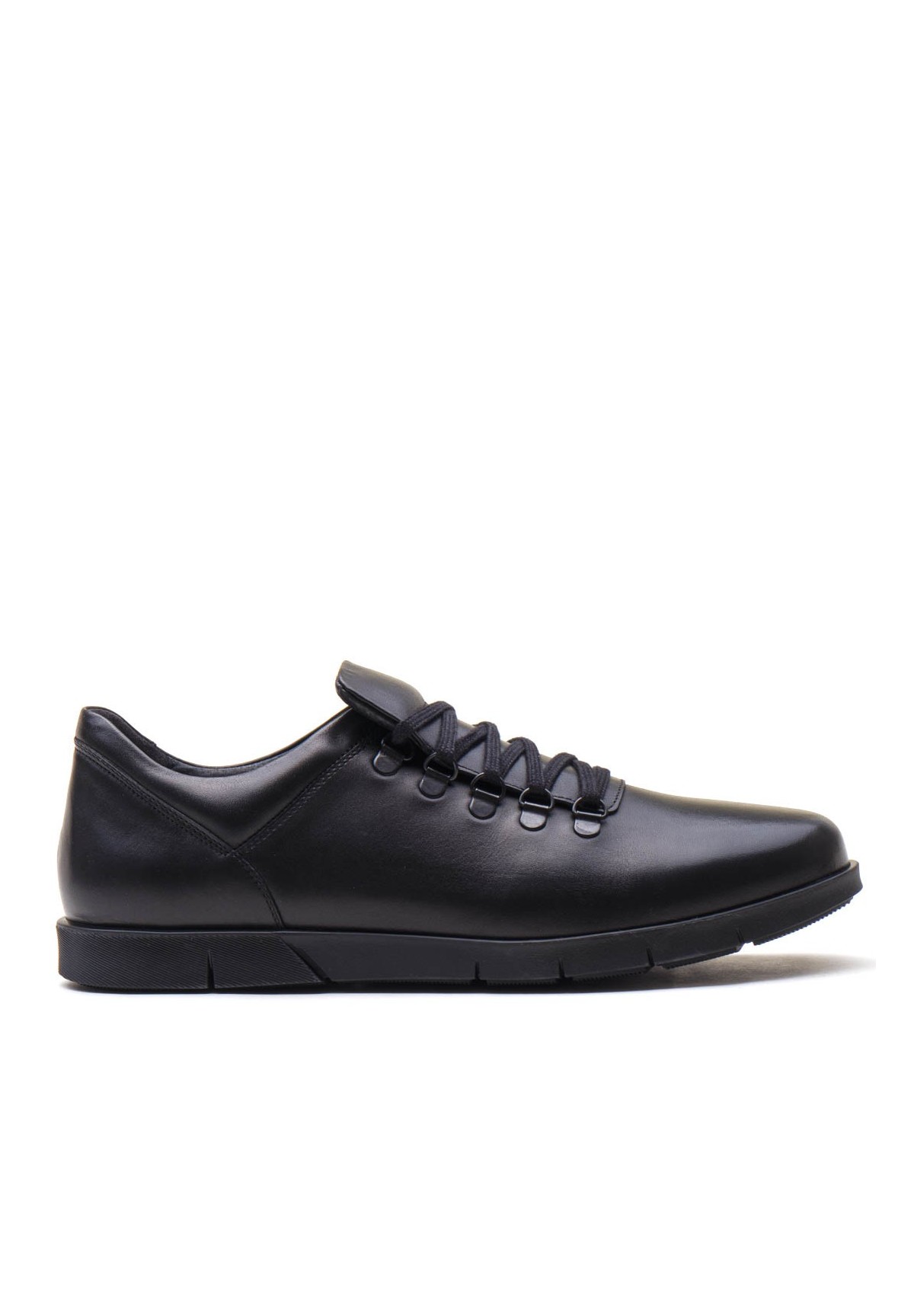 Czarne półbuty wykonane ze skóry licowej. Wygodny, uniwersalny model pasujący do wielu stylizacji.