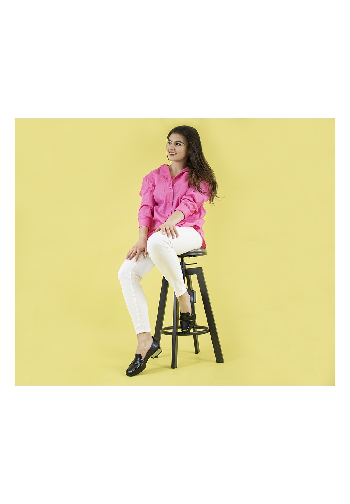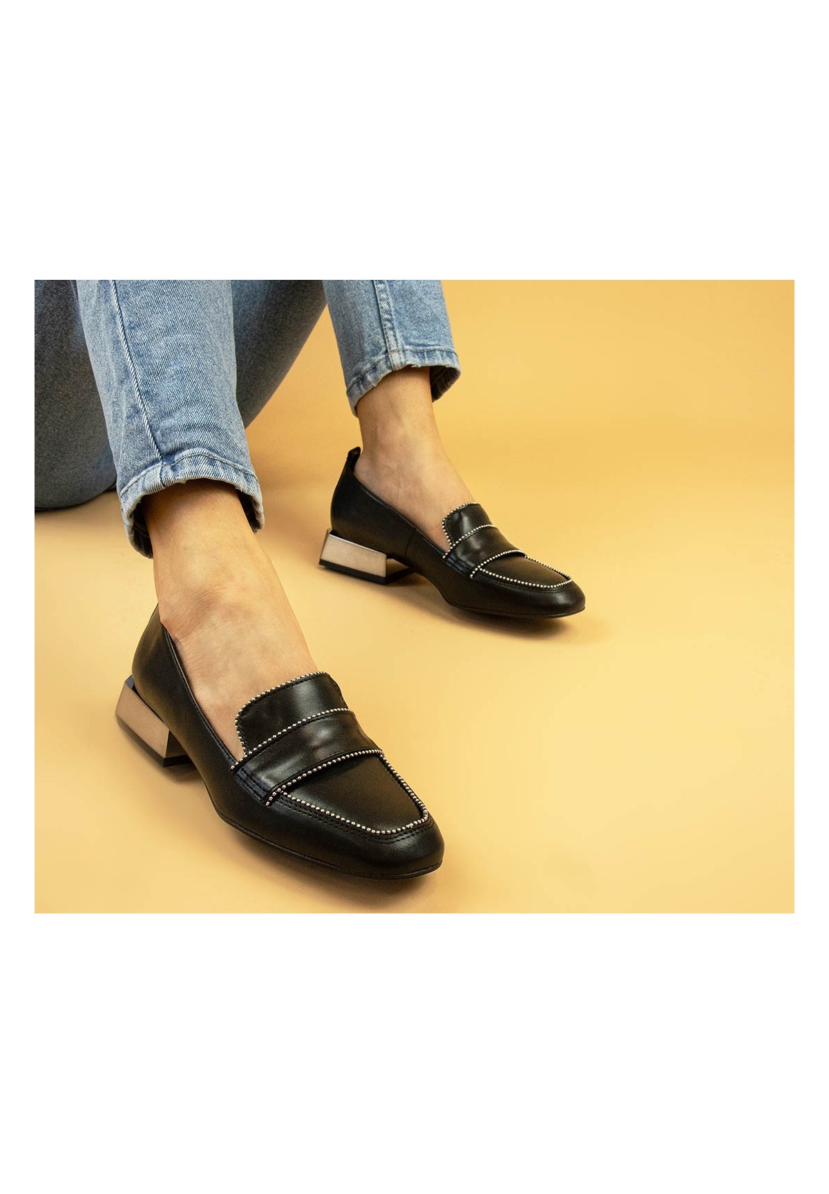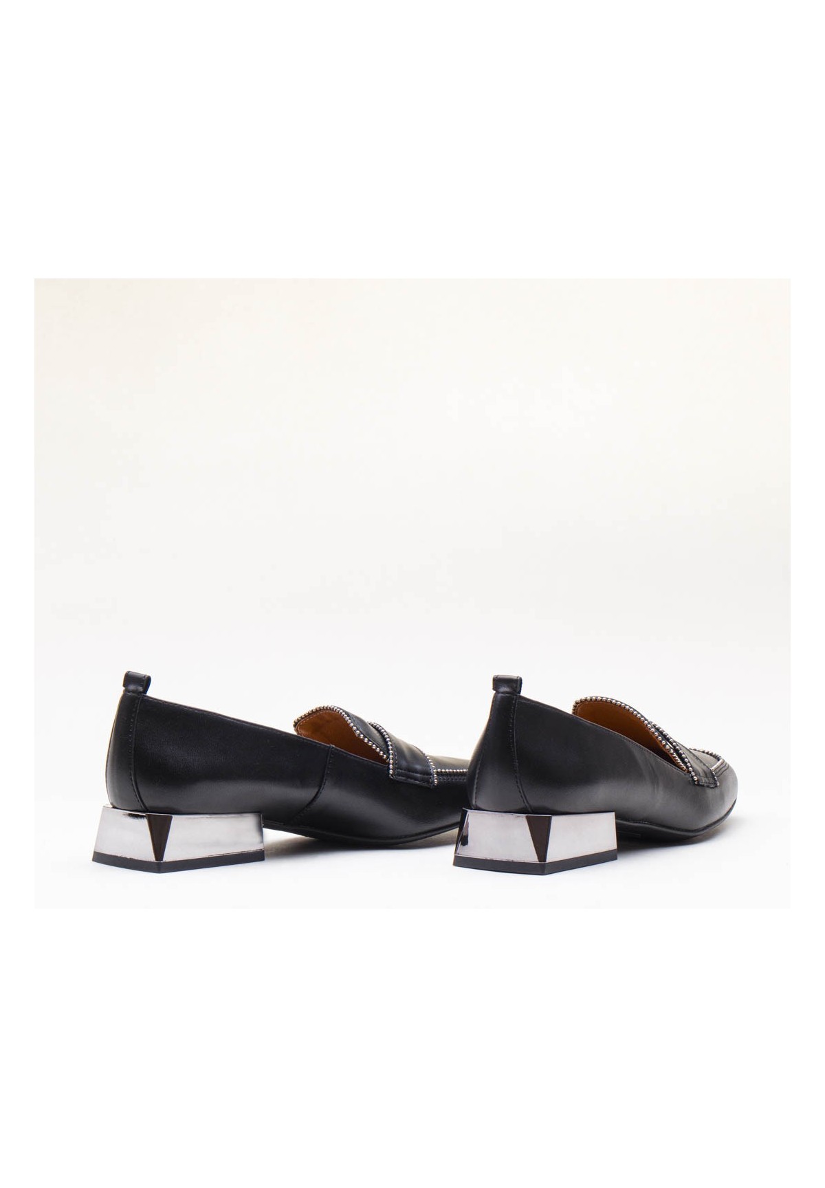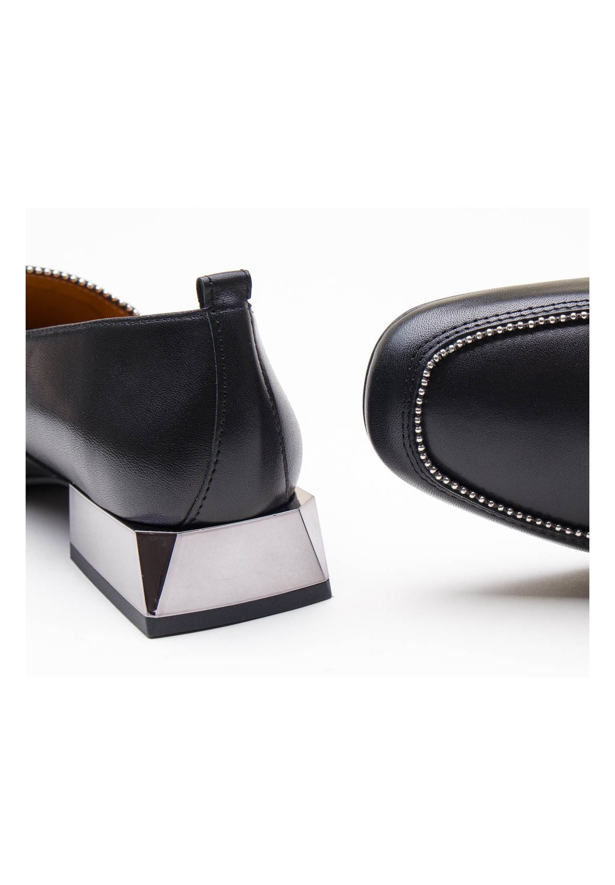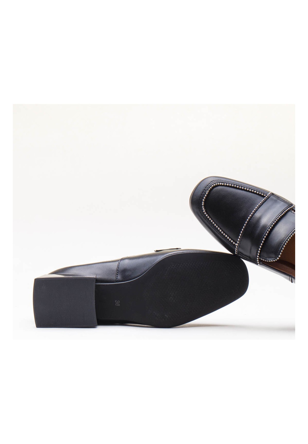 Czółenka w kolorze czarnym wykonane z naturalnej skóry licowej. Posiadają niski, kwadratowy obcas.