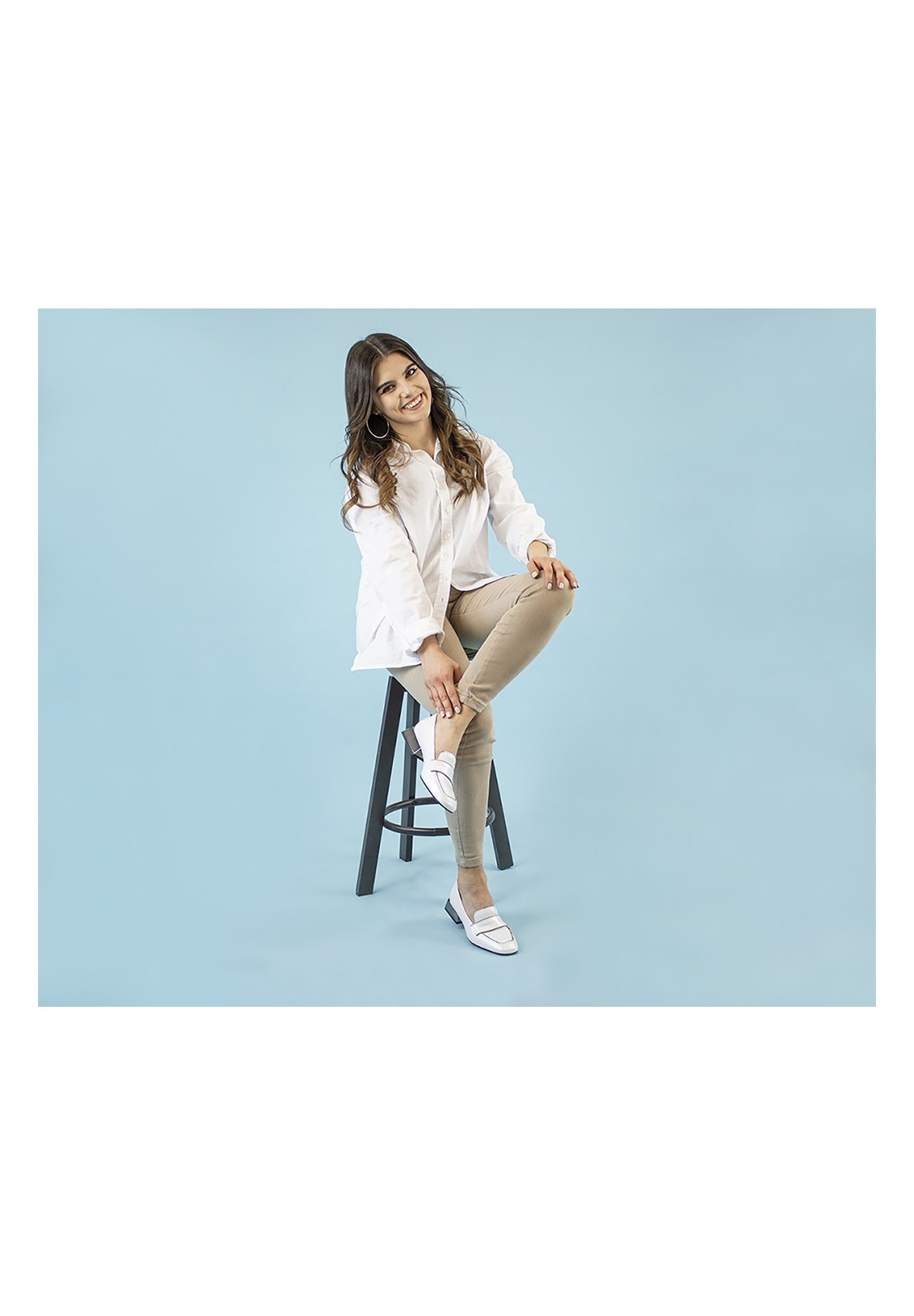 Białe czółenka na niskim słupku