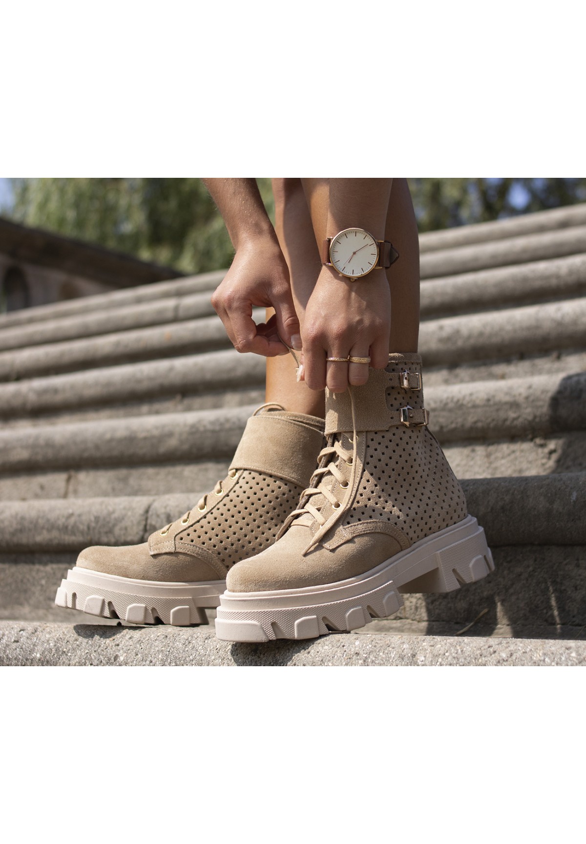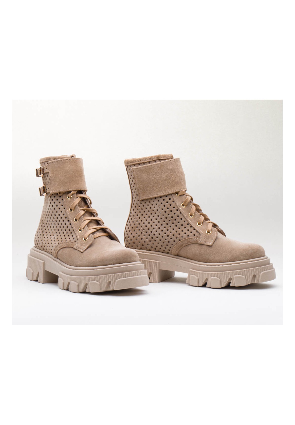 Beżowe botki z perforacją