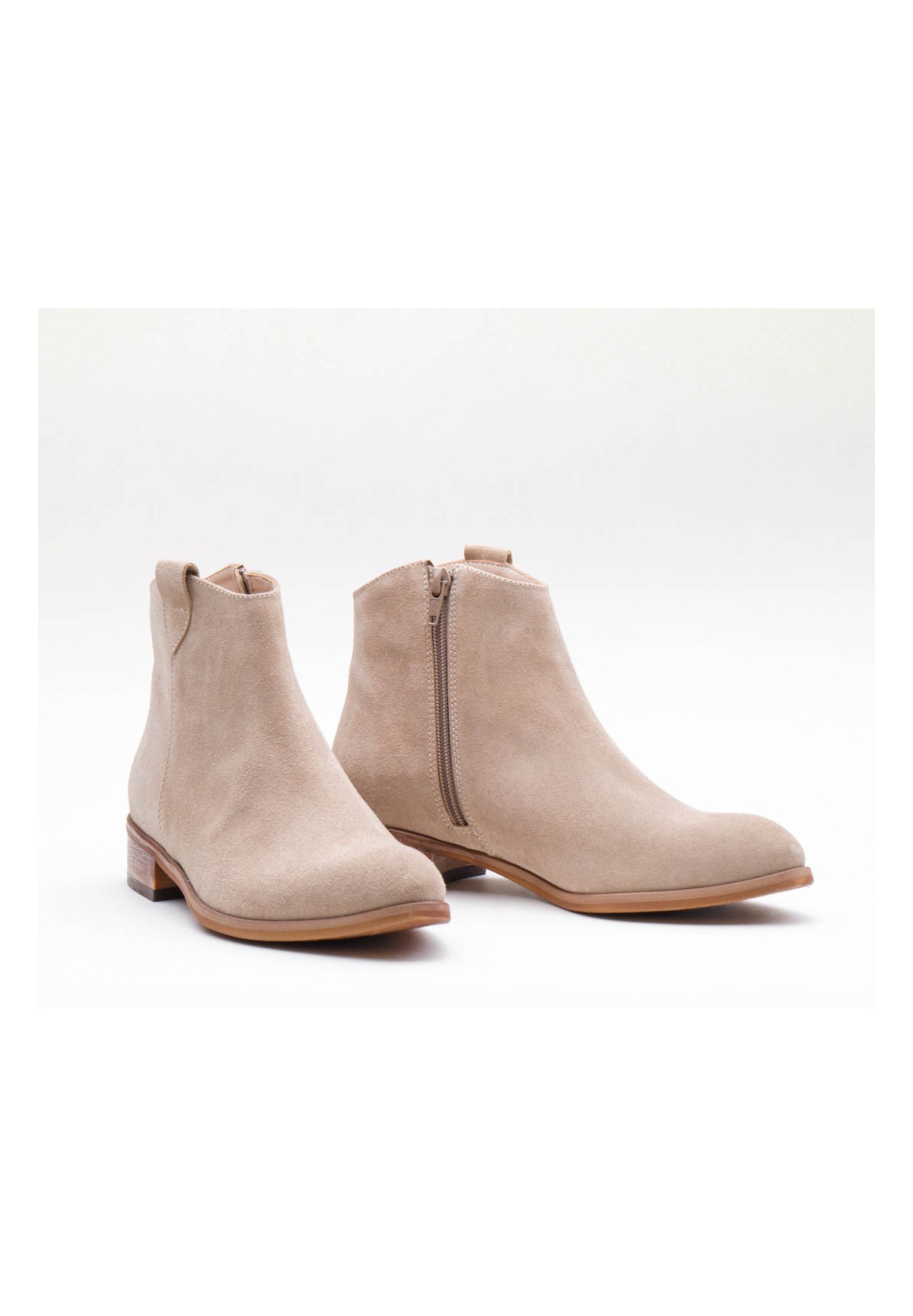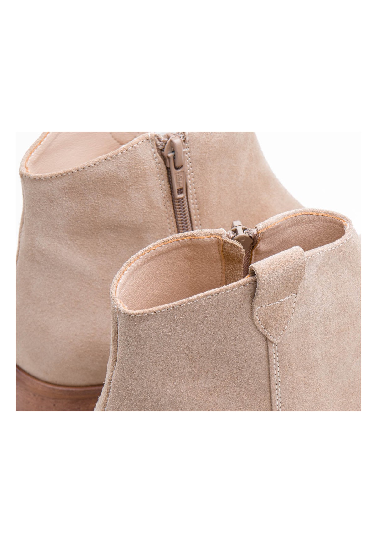 Niskie botki damskie, wykonane ze skóry naturalnej welurowej. Świetnie sprawdzą się do wiosennych jak i jesiennych stylizacji. Zapinane na zamek błyskawiczny. Wewnątrz znajduje się komfortowa, skórzana wkładka. Botki na niskim obcasie, dzięki któremu długie chodzenie w nich nie będzie sprawiało problemu.