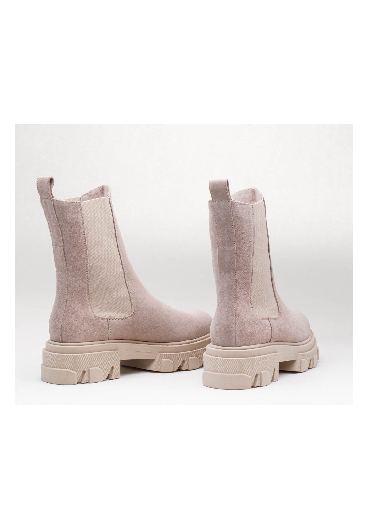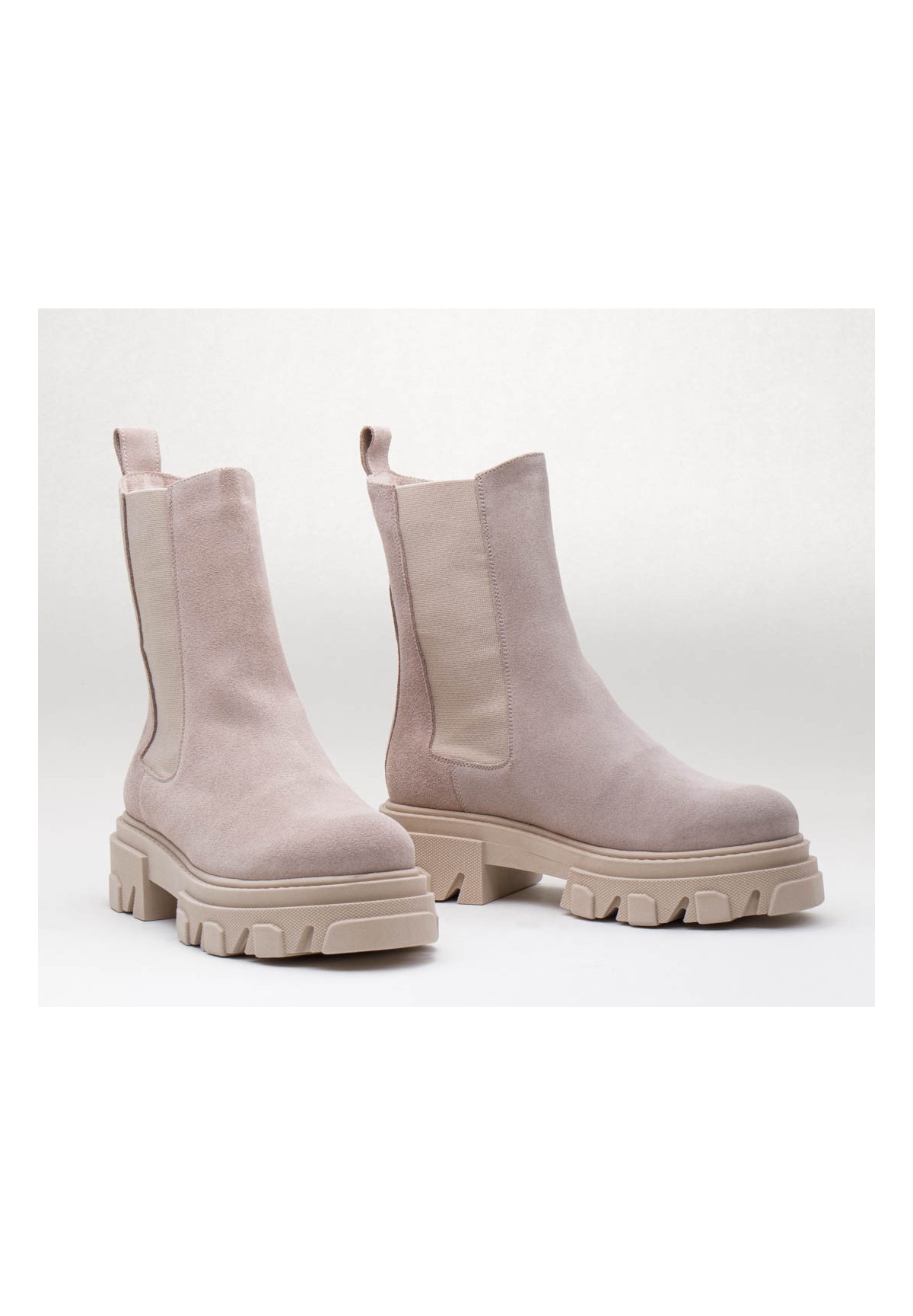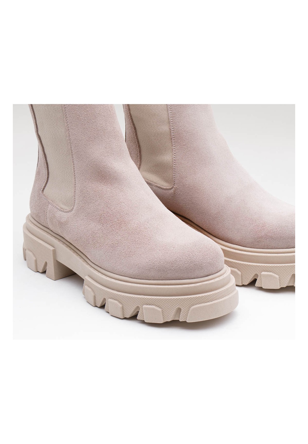 Beżowe botki damskie z okrągłym noskiem, to idealne obuwie do wielu wiosennych, jak i jesiennych stylizacji. Buty wykonane są z miękkiej, welurowej skóry naturalnej. Z obu stron wszyto elastyczną wstawkę, dzięki której ubieranie ich jest niezwykle wygodne i szybkie. Osadzone na grubej podeszwie, zapewniającej stabilność oraz komfort chodzenia. Wewnątrz znajduje się skórzana wkładka, sprawiająca, że stopa nie poci się. Model nad kostkę.