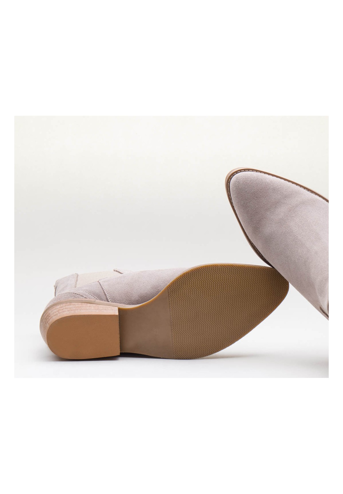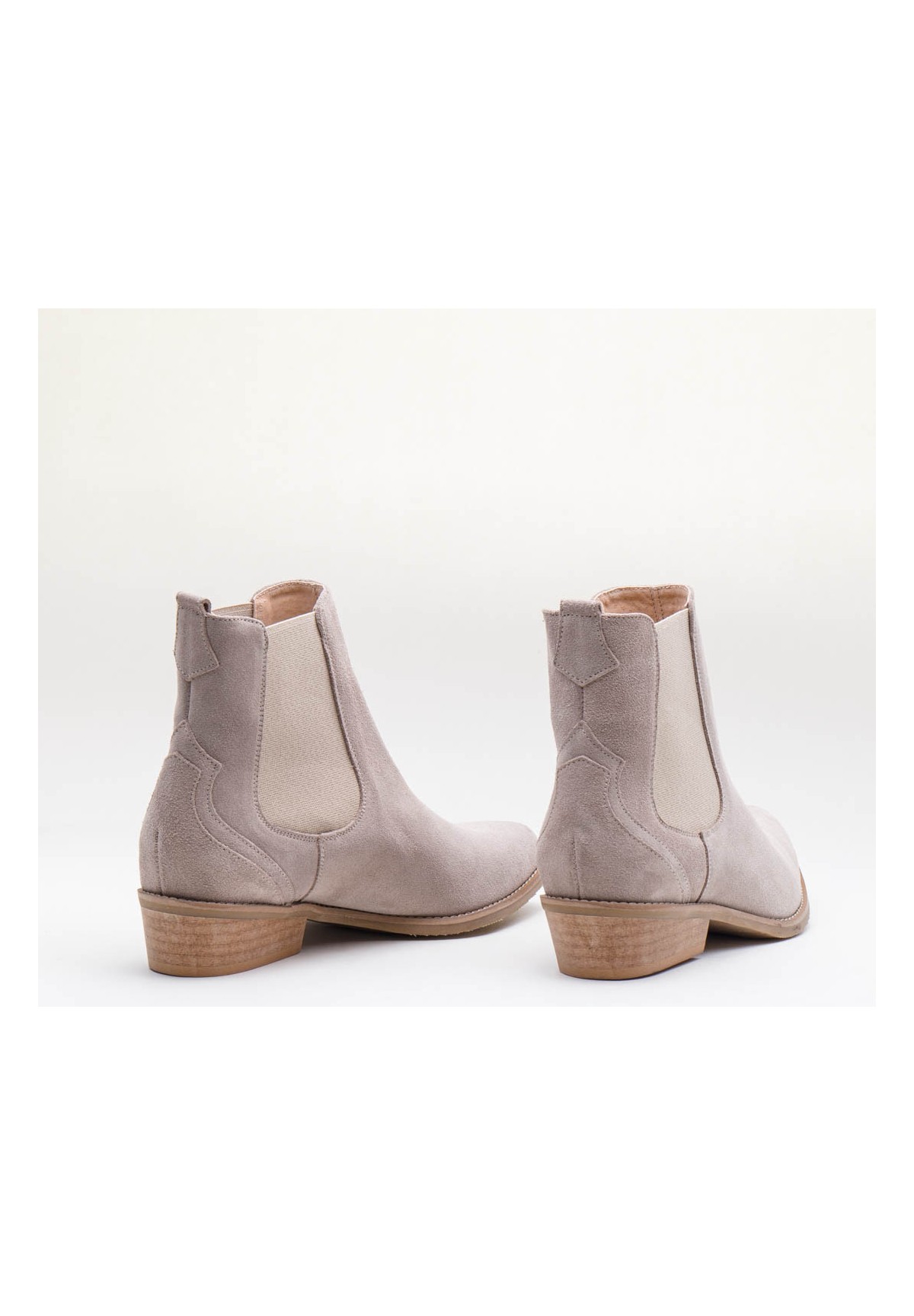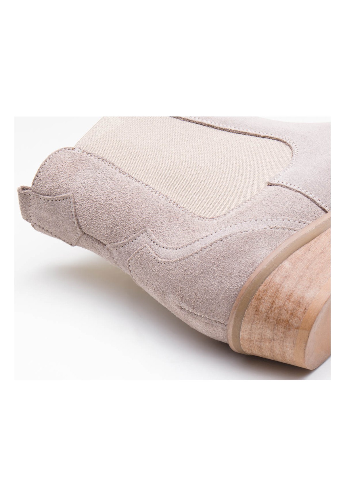 Wsuwane sztyblety damskie, wykonane z naturalnej skóry welurowej w odcieniu jasnego beżu. Z obu stron wszyta jest elastyczna wstawka, dzięki której zakładanie ich jest niezwykle szybkie i wygodne. Model na niskim obcasie. Wewnątrz wygodna, skórzana wkładka.