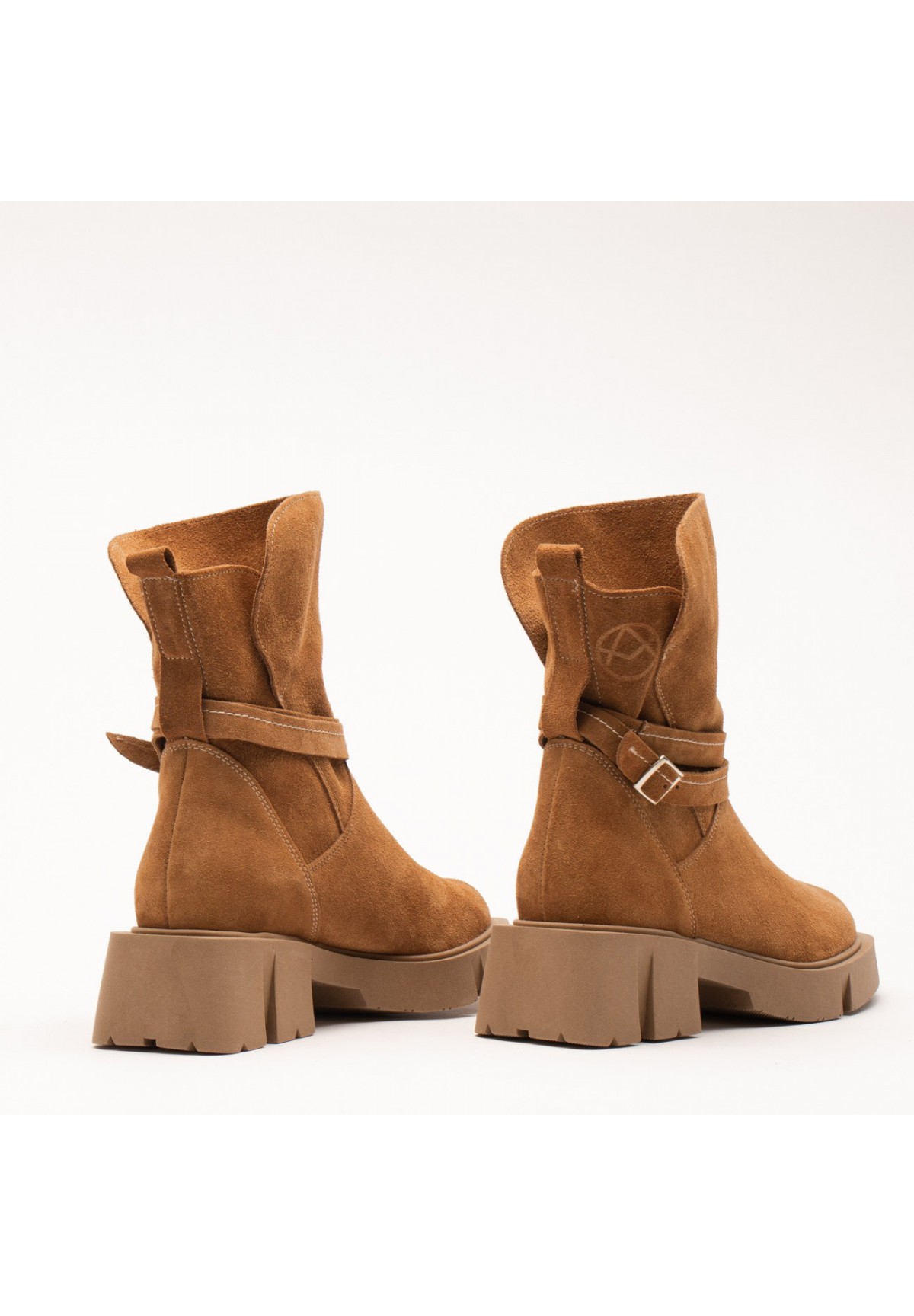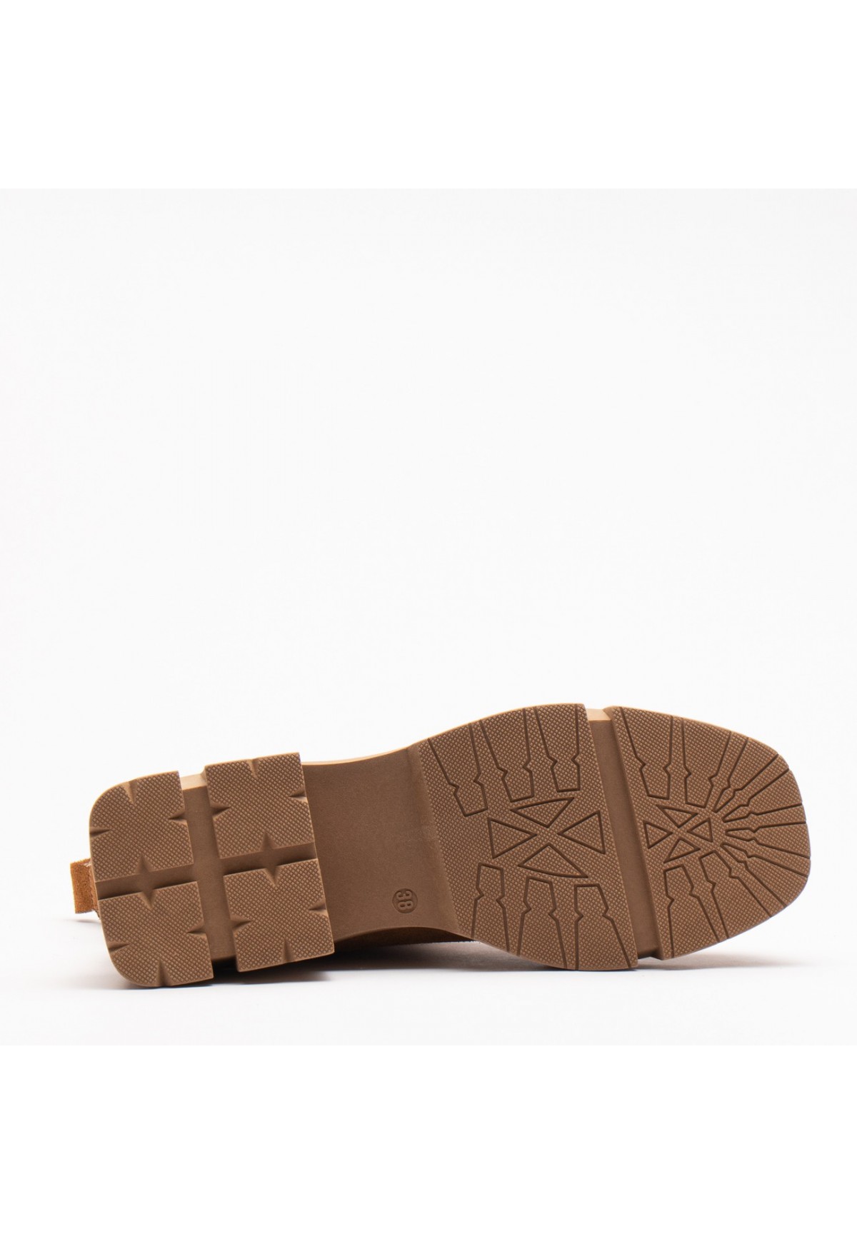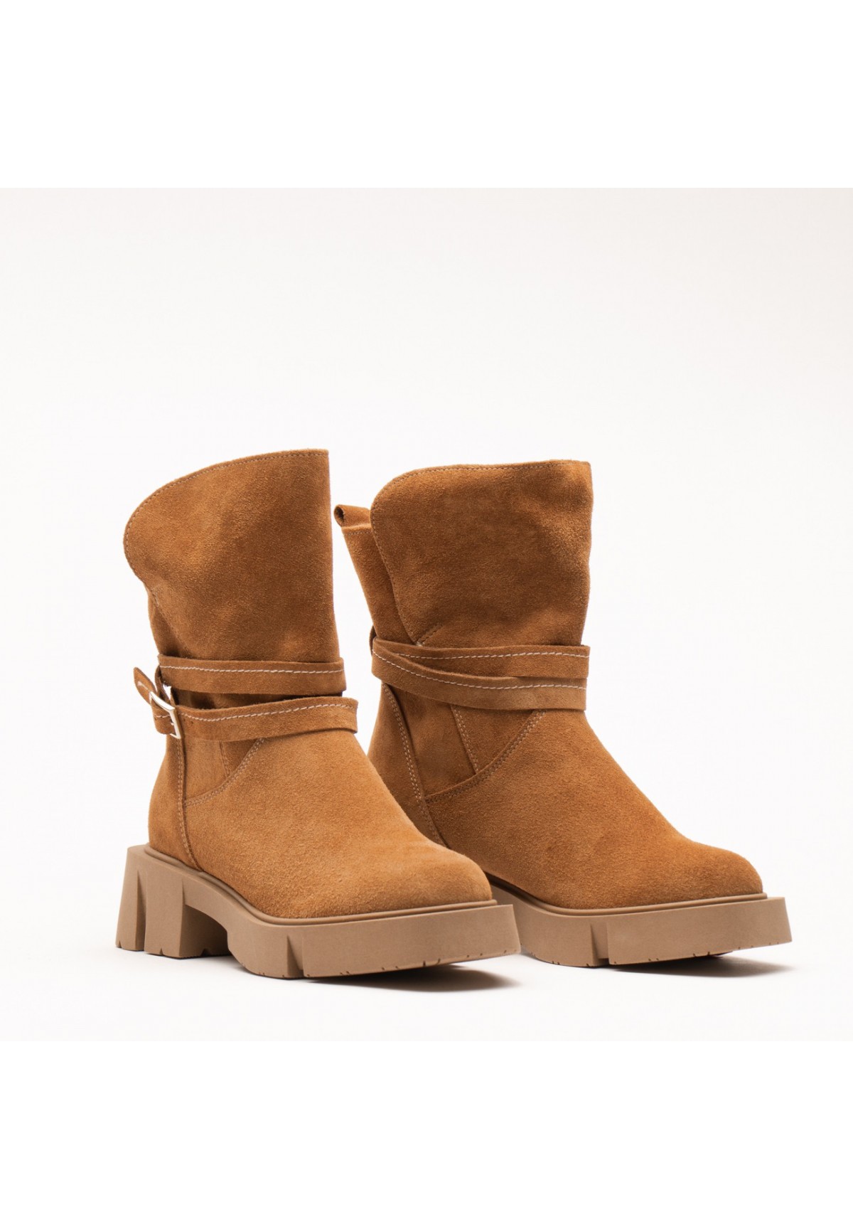Element ozdobny botków stanowi pasek przeplatany przy kostce. Brązowy odcień skóry nadaje im ciepły i przytulny charakter, doskonale komponując się z jesienno-zimowymi stylizacjami.