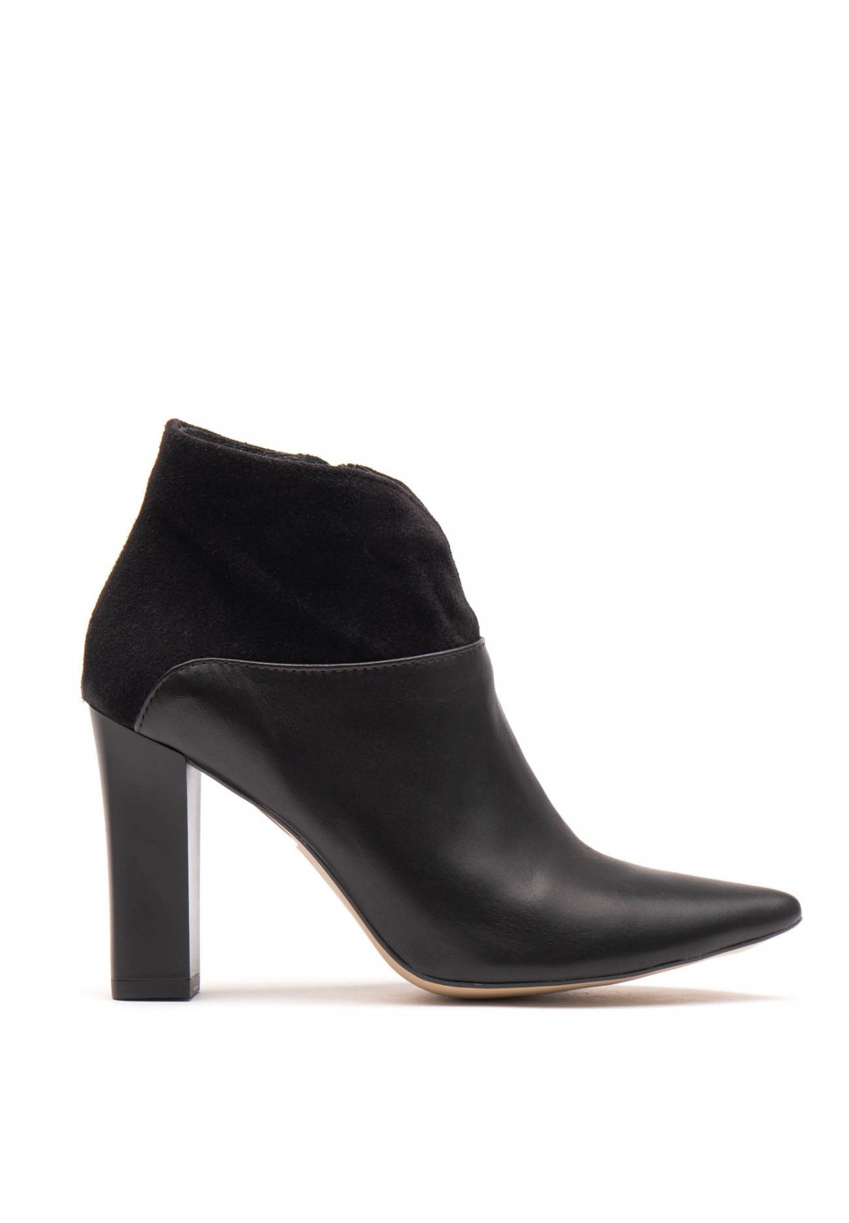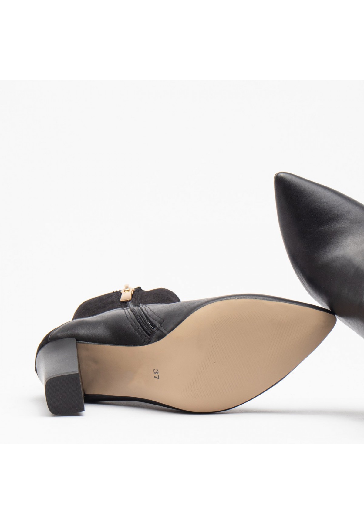 Botki to prawdziwe dzieło sztuki w świecie obuwia damskiego. Kombinacja skóry licowej i welurowej tworzy efektowny kontrast, który nadaje im niezwykłego uroku. Botki posiadają noski w kształcie szpica, co dodaje im subtelnego wdzięku i delikatności. Ich wysoki obcas typu słupek, mierzący imponujące 9,5 cm, podkreśla sylwetkę i nadaje pewności kroku. To obuwie, które nie tylko dodaje wzrostu, ale także emanuje elegancją i szykownością.