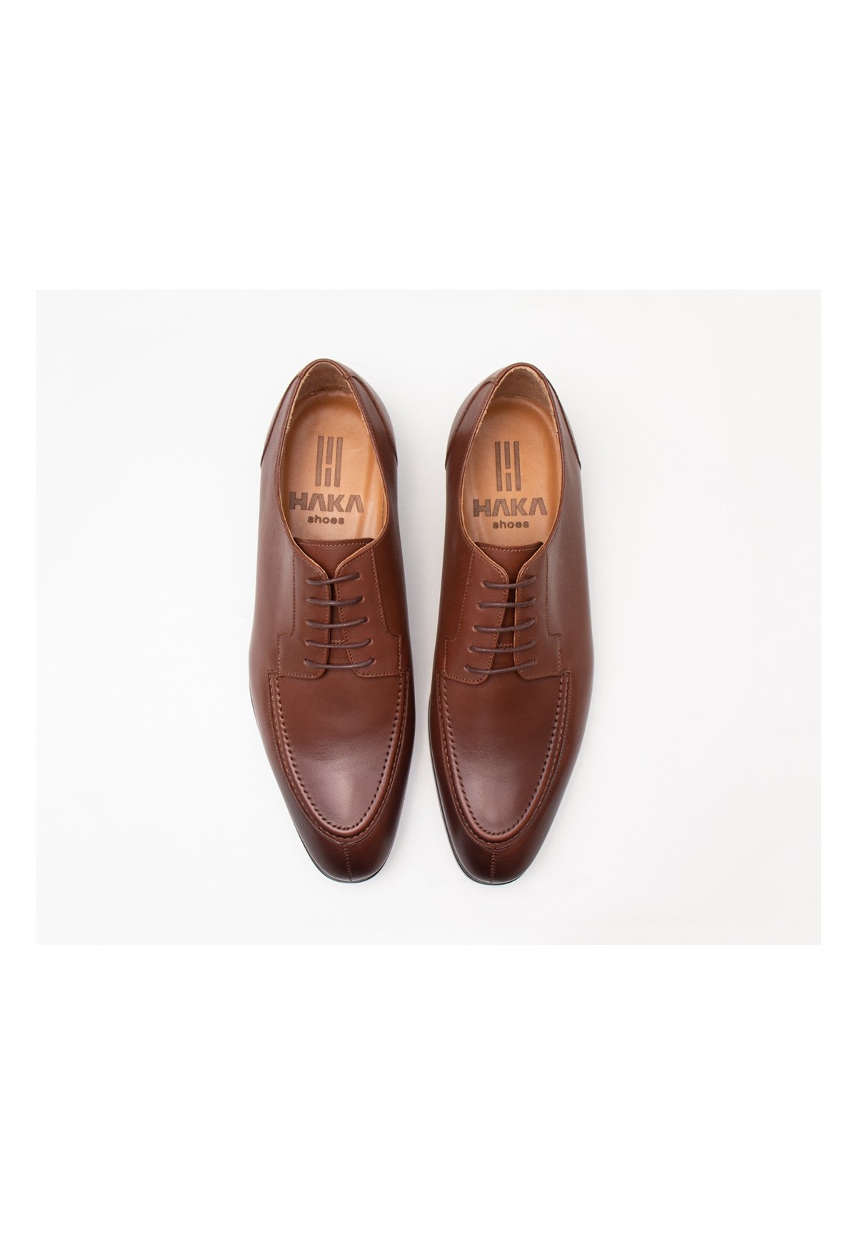 Eleganckie półbuty męskie marki HAKA Shoes, ozdobione charakterystycznym przeszyciem na nosku oraz dekoracyjnym szwem wzdłuż przyszwy. Wykonane z wysokiej jakości, naturalnej skóry cielęcej. Model o smukłym kroju, klasycznie sznurowany. Wykończone podszewką z bydlęcej skóry, zapewniając cyrkulacje powietrza oraz komfort chodzenia przez długi czas. Zaletą butów jest ich doskonała jakość - PREMIUM. Uszyte metodą Blake, Wykonane ręcznie, przez polskich szewców, z dbałością o detale.