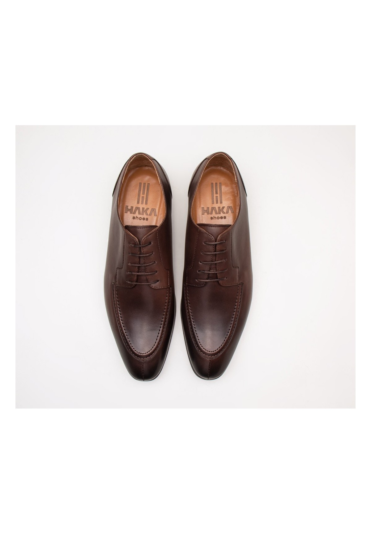 Eleganckie półbuty męskie marki HAKA Shoes, ozdobione charakterystycznym przeszyciem na nosku oraz dekoracyjnym szwem wzdłuż przyszwy. Wykonane z wysokiej jakości, naturalnej skóry cielęcej. Model o smukłym kroju, klasycznie sznurowany. Wykończone podszewką z bydlęcej skóry, zapewniając cyrkulacje powietrza oraz komfort chodzenia przez długi czas. Zaletą butów jest ich doskonała jakość - PREMIUM. Uszyte metodą Blake, Wykonane ręcznie, przez polskich szewców, z dbałością o detale.