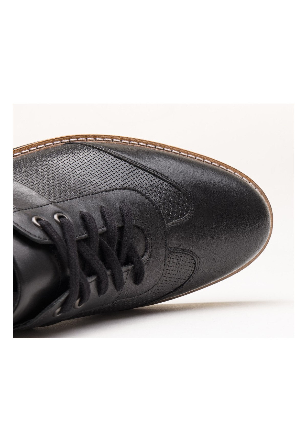 Półbuty to doskonałe połączenie komfortu i elegancji. Całkowicie wykonane z naturalnej skóry licowej, to prawdziwy dowód na to, że prostota może być wyjątkowa. To uniwersalny model, który wyróżnia się grubszą podeszwą, zapewniając wygodę podczas noszenia, ale także dodając butom charakteru. Sznurowany design gwarantuje idealne dopasowanie do stopy, co jest szczególnie istotne dla tych, którzy cenią sobie wygodę i wsparcie w codziennym użytkowaniu.