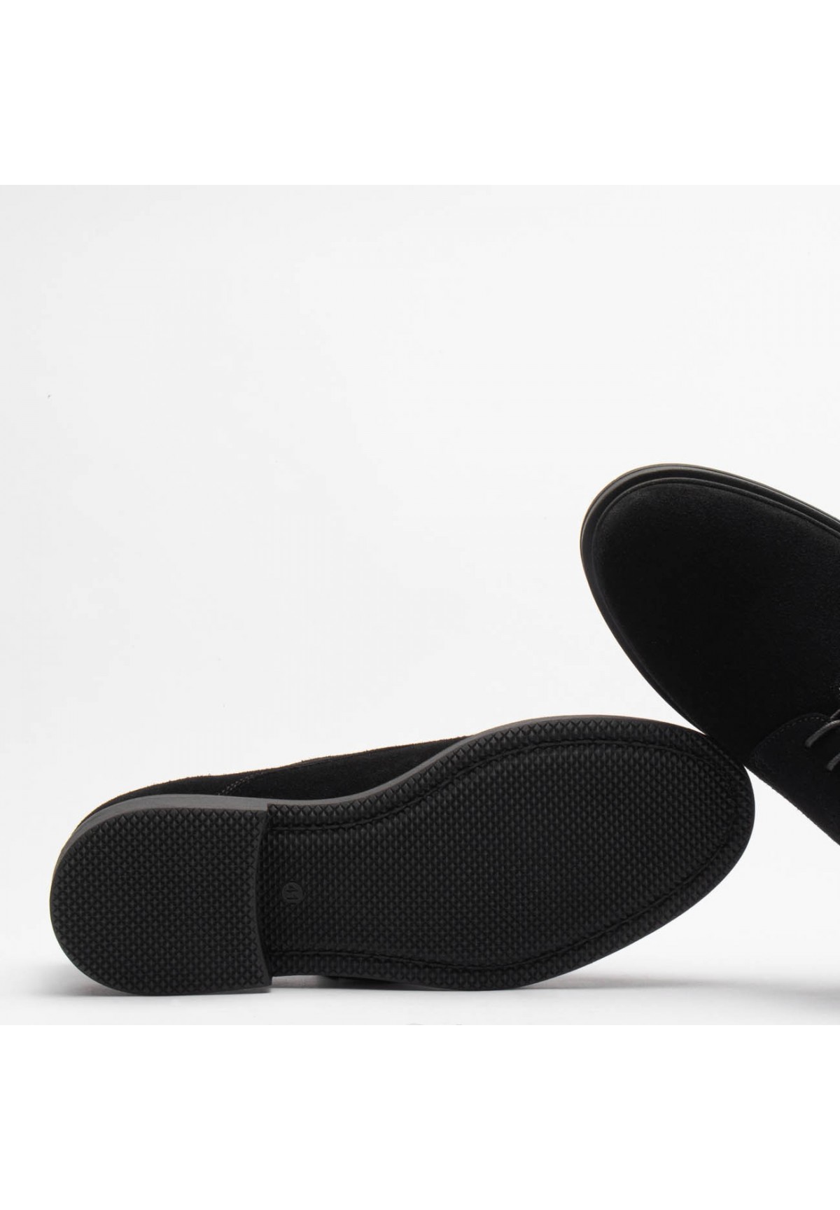 Odkryj doskonałą równowagę między stylem, a komfortem w męskich półbutach wykonanych ze skóry naturalnej welurowej w czarnym kolorze. Wiązane za pomocą eleganckich cienkich sznurówek, zapewniają nie tylko doskonały wygląd, ale także solidne trzymanie stopy. Wnętrze wyściółki i wkładka wykonane są z najwyższej jakości skóry naturalnej, zapewniając niezrównany komfort noszenia przez cały dzień. Osadzone na subtelnym obcasie, są doskonałym wyborem dla mężczyzny, który ceni zarówno styl, jak i wygodę.