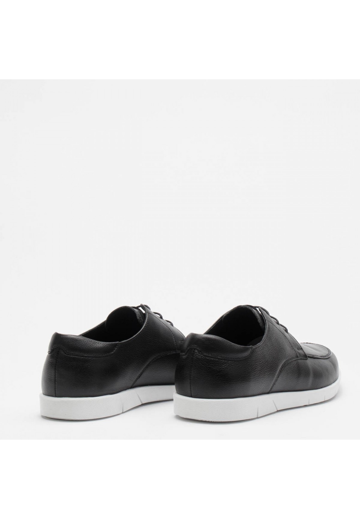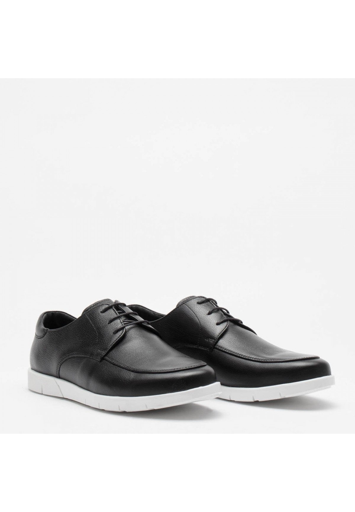 Półsportowe czarne buty męskie na białej podeszwie