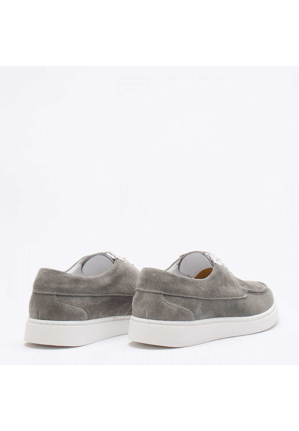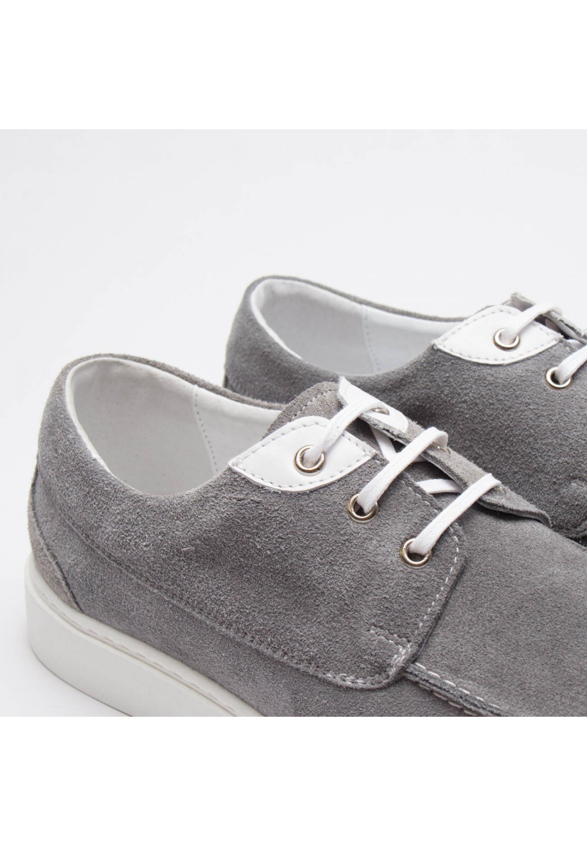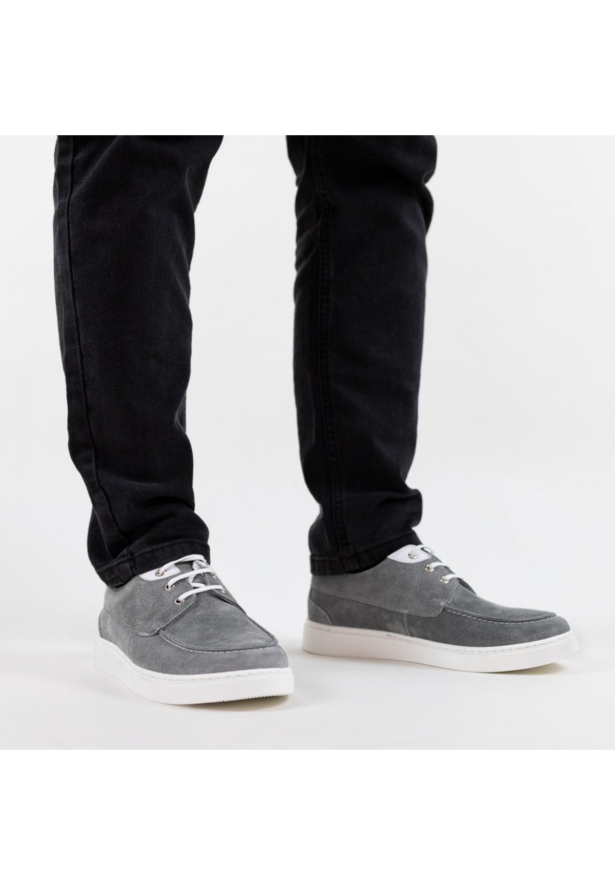 Eleganckie męskie półbuty, które zachwycają swoim stylem i wysoką jakością. Wykonane z naturalnej skóry welurowej w odcieniu szarości. Sznurówki w kolorze białym dodają butom charakteru i wyrafinowanego wyglądu. Dodatkowo, przy oczkach umieszczone zostały wstawki ze skóry licowej. Buty osadzone są na solidnej, białej podeszwie, która nie tylko zapewnia stabilność podczas chodzenia, ale również kontrastuje z szarością, tworząc harmonijne połączenie kolorystyczne. Wnętrze butów stanowi biała skórzana wyściółka oraz wkładka, co gwarantuje nie tylko wygodę noszenia, ale również odpowiednią wentylację i utrzymanie higieny stóp. To doskonała propozycja dla mężczyzn ceniących sobie elegancję i komfort. Ich wyjątkowy design i wysoka jakość wykonania sprawiają, że są one idealnym wyborem na różnorodne okazje, od formalnych spotkań po codzienne wyjścia. Dzięki nim każdy krok staje się nie tylko komfortowy, ale także wyjątkowo stylowy.