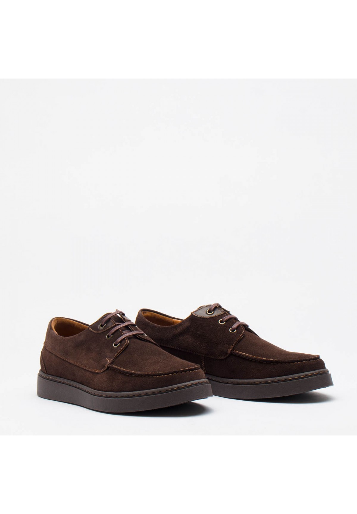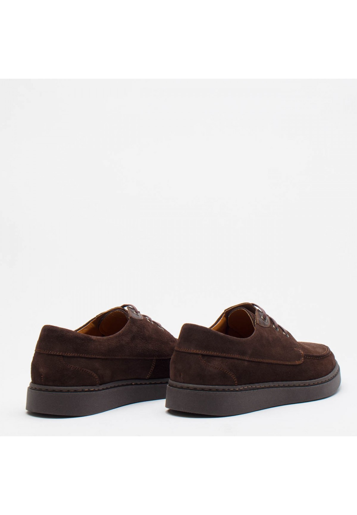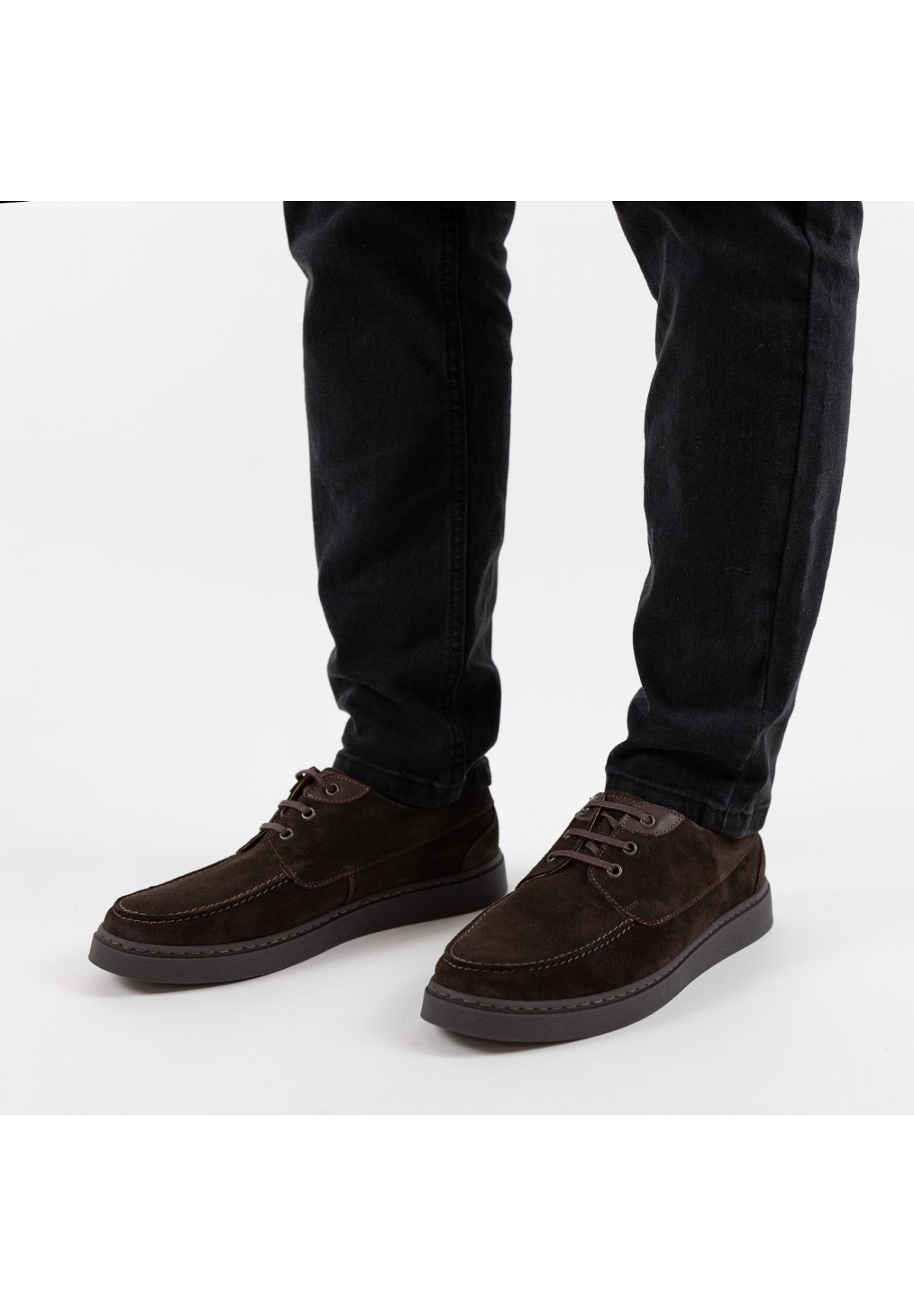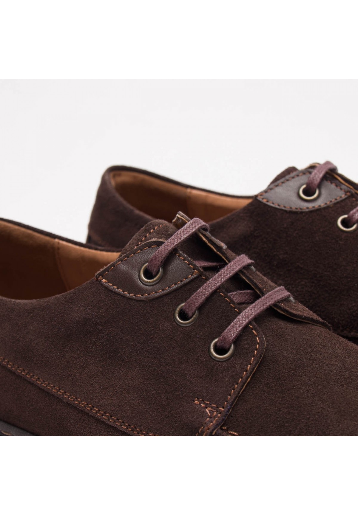 Eleganckie męskie półbuty, które zachwycają swoim stylem i wysoką jakością. Wykonane z naturalnej skóry welurowej w głębokim odcieniu brązu. Sznurówki w kolorze skóry dodają butom charakteru i wyrafinowanego wyglądu. Dodatkowo, przy oczkach umieszczone zostały wstawki ze skóry licowej. Buty osadzone są na solidnej, brązowej podeszwie, która zapewnia stabilność podczas chodzenia. Wnętrze butów stanowi brązowa skórzana wyściółka oraz wkładka, co gwarantuje nie tylko wygodę noszenia, ale również odpowiednią wentylację i utrzymanie higieny stóp. To doskonała propozycja dla mężczyzn ceniących sobie elegancję i komfort. Ich wyjątkowy design i wysoka jakość wykonania sprawiają, że są one idealnym wyborem na różnorodne okazje, od formalnych spotkań po codzienne wyjścia. Dzięki nim każdy krok staje się nie tylko komfortowy, ale także wyjątkowo stylowy.