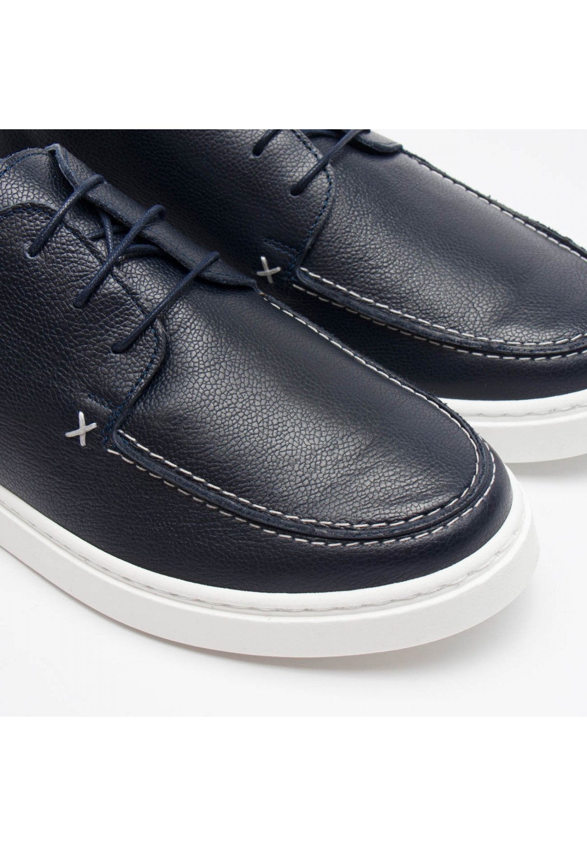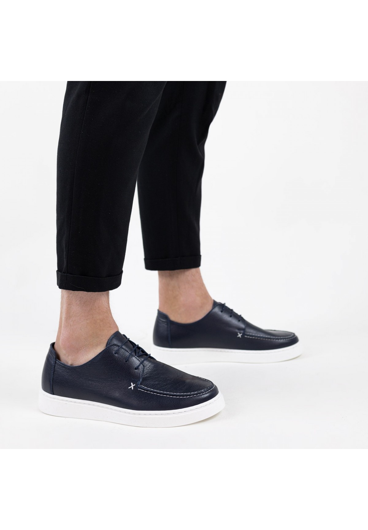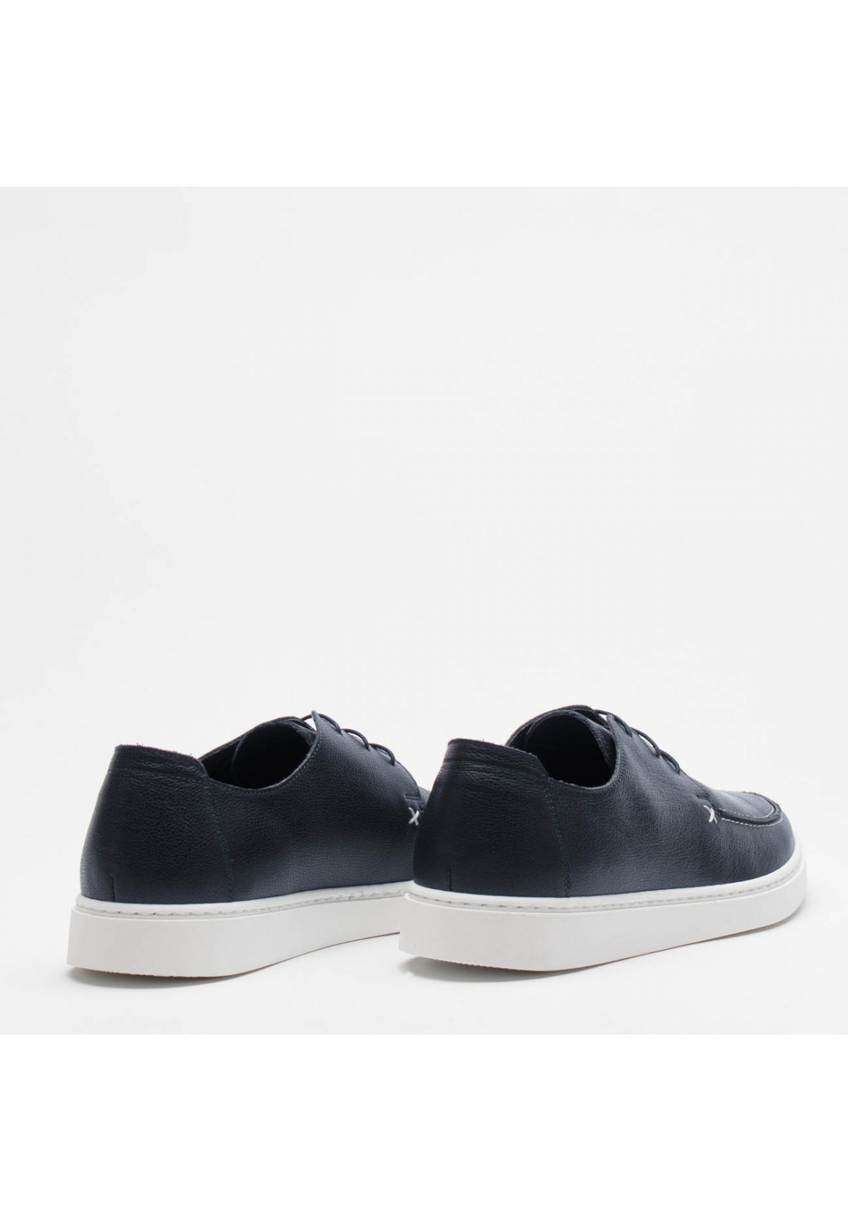 Męskie półbuty, które wyróżniają się elegancją oraz solidnością. Wykonane ze skóry naturalnej o wyjątkowej, groszkowanej fakturze, zachwycają swoją unikalnością i wysoką jakością. Ich klasyczny design został dopracowany w każdym szczególe, co czyni je doskonałym wyborem zarówno na formalne okazje, jak i na codzienne noszenie. Półbuty są wiązane za pomocą cienkich sznurówek, które umożliwiają precyzyjne dopasowanie do stopy, zapewniając nie tylko doskonałą estetykę, ale także wygodę noszenia. Wnętrze butów wyściełane jest wysokiej jakości skórą naturalną, zapewniając miękkość i komfort podczas chodzenia. Dodatkowo, wkładka również wykonana jest ze skóry naturalnej, co gwarantuje odpowiednią wentylację i utrzymanie higieny stóp. Podeszwa tych półbutów została wykonana w kontrastowym kolorze białym, co nadaje im nowoczesnego charakteru i sprawia, że stanowią one doskonałe uzupełnienie wielu stylizacji. Cholewka butów starannie obszyta białą nicią, nadając im subtelny akcent i podkreślając ich wysoką jakość wykonania.