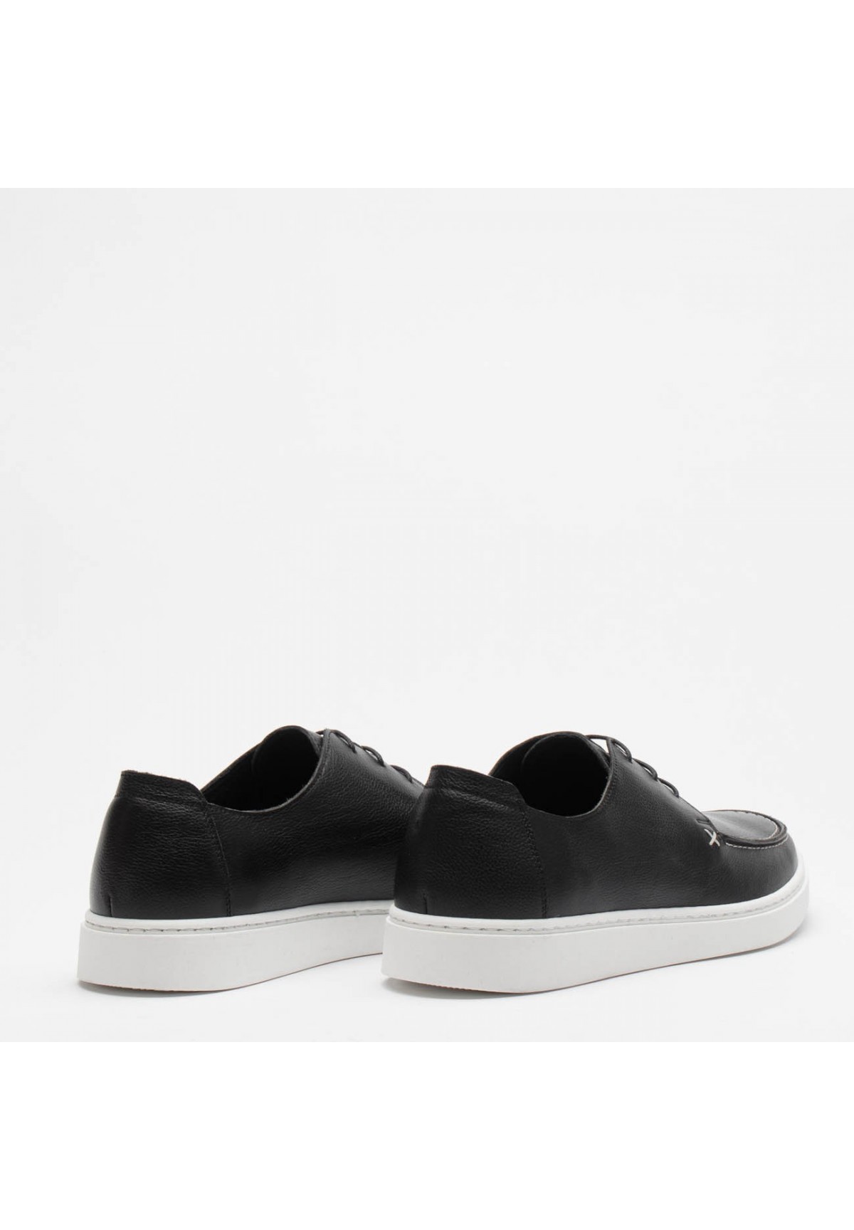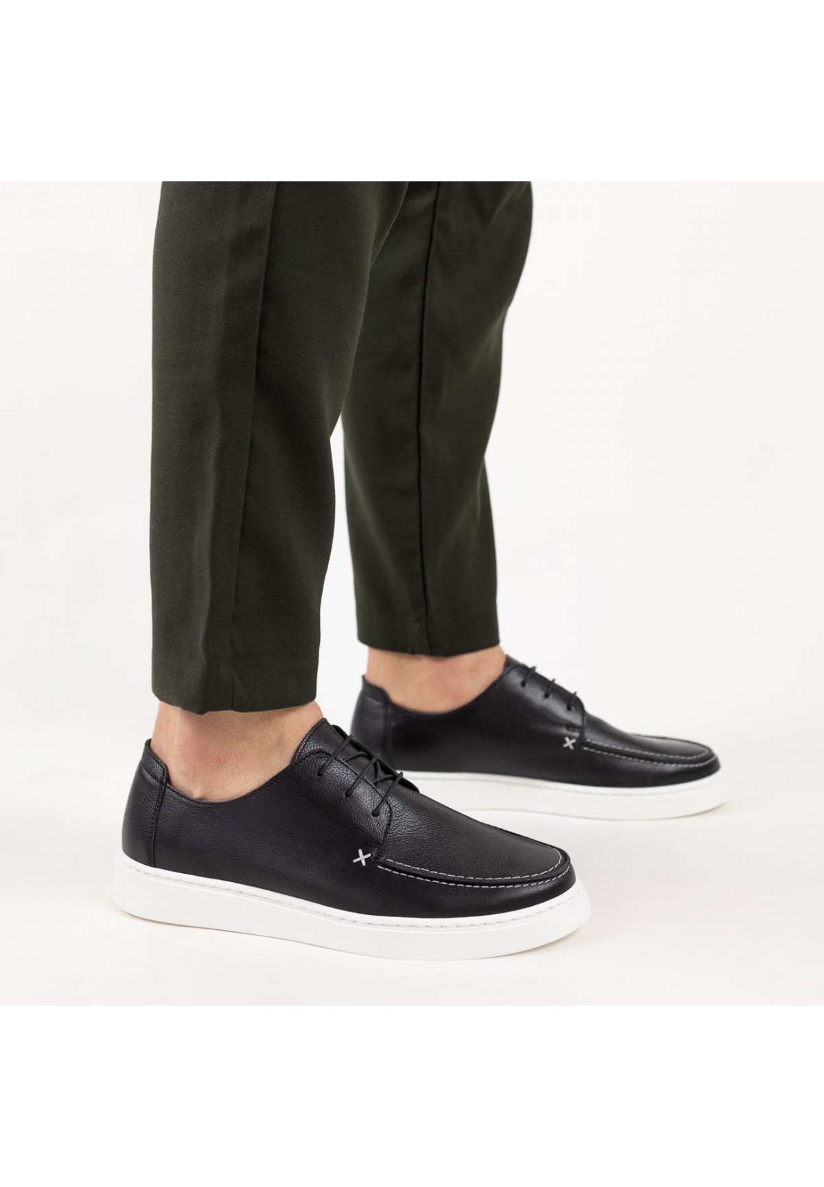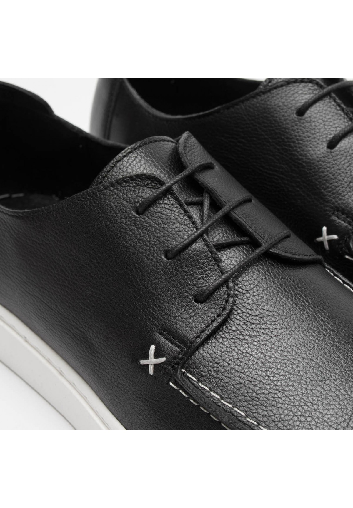 Męskie półbuty, które wyróżniają się elegancją oraz solidnością. Wykonane ze skóry naturalnej o wyjątkowej, groszkowanej fakturze, zachwycają swoją unikalnością i wysoką jakością. Ich klasyczny design został dopracowany w każdym szczególe, co czyni je doskonałym wyborem zarówno na formalne okazje, jak i na codzienne noszenie. Półbuty są wiązane za pomocą cienkich sznurówek, które umożliwiają precyzyjne dopasowanie do stopy, zapewniając nie tylko doskonałą estetykę, ale także wygodę noszenia. Wnętrze butów wyściełane jest wysokiej jakości skórą naturalną, zapewniając miękkość i komfort podczas chodzenia. Dodatkowo, wkładka również wykonana jest ze skóry naturalnej, co gwarantuje odpowiednią wentylację i utrzymanie higieny stóp. Podeszwa tych półbutów została wykonana w kontrastowym kolorze białym, co nadaje im nowoczesnego charakteru i sprawia, że stanowią one doskonałe uzupełnienie wielu stylizacji. Cholewka butów starannie obszyta białą nicią, nadając im subtelny akcent i podkreślając ich wysoką jakość wykonania.