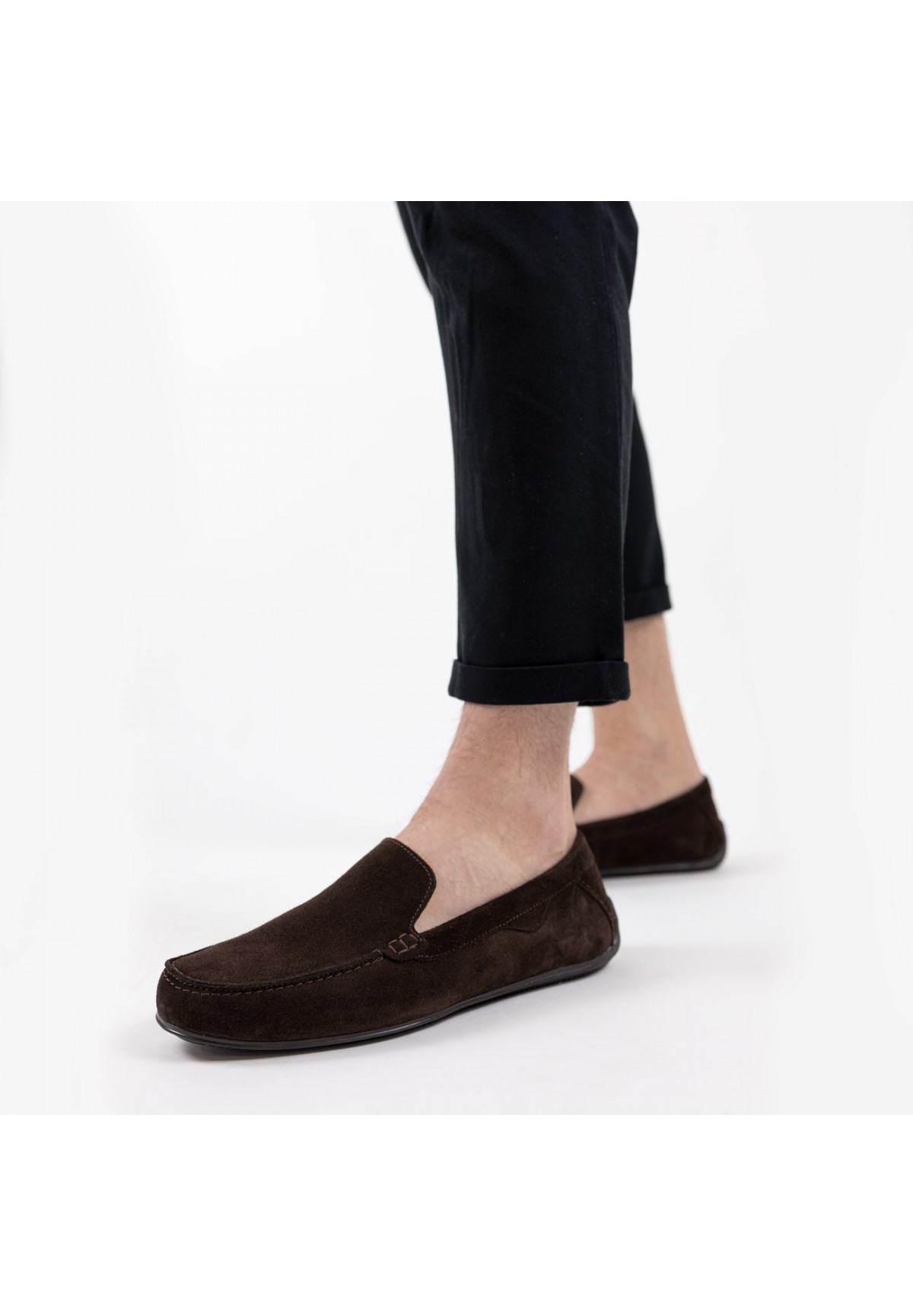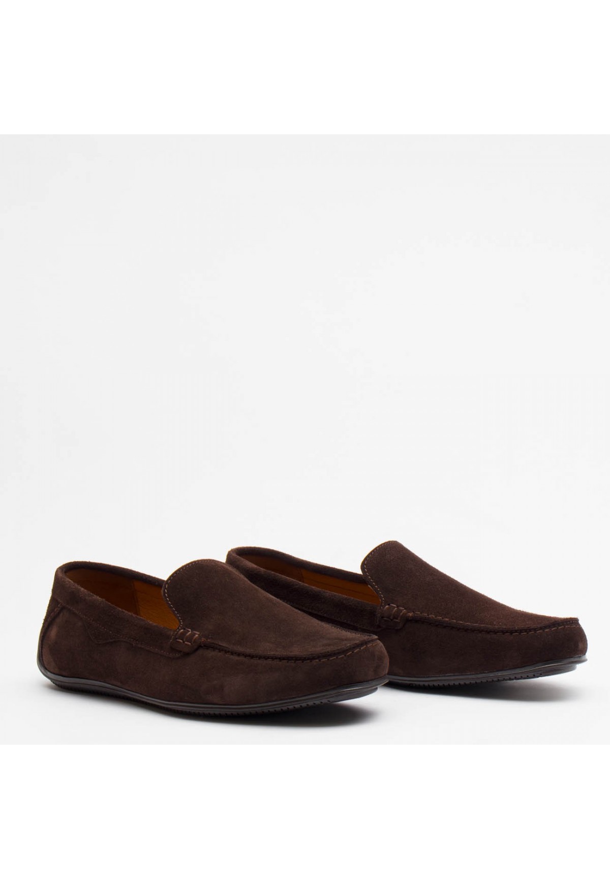 Mokasyny męskie wykonane ze skóry naturalnej welurowej to buty, które łączą elegancję z wygodą. Buty posiadają gumową, płaską podeszwę, co zapewnia komfort podczas chodzenia. Gumowa podeszwa jest również trwała i odporna na ścieranie. Cholewka jest gładka, bez zbędnych zdobień. Wnętrze mokasynów jest wyścielane naturalną podszewką oraz wkładką, zapewniając wygodę noszenia.