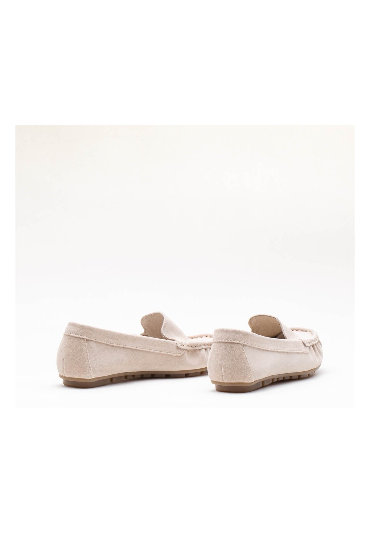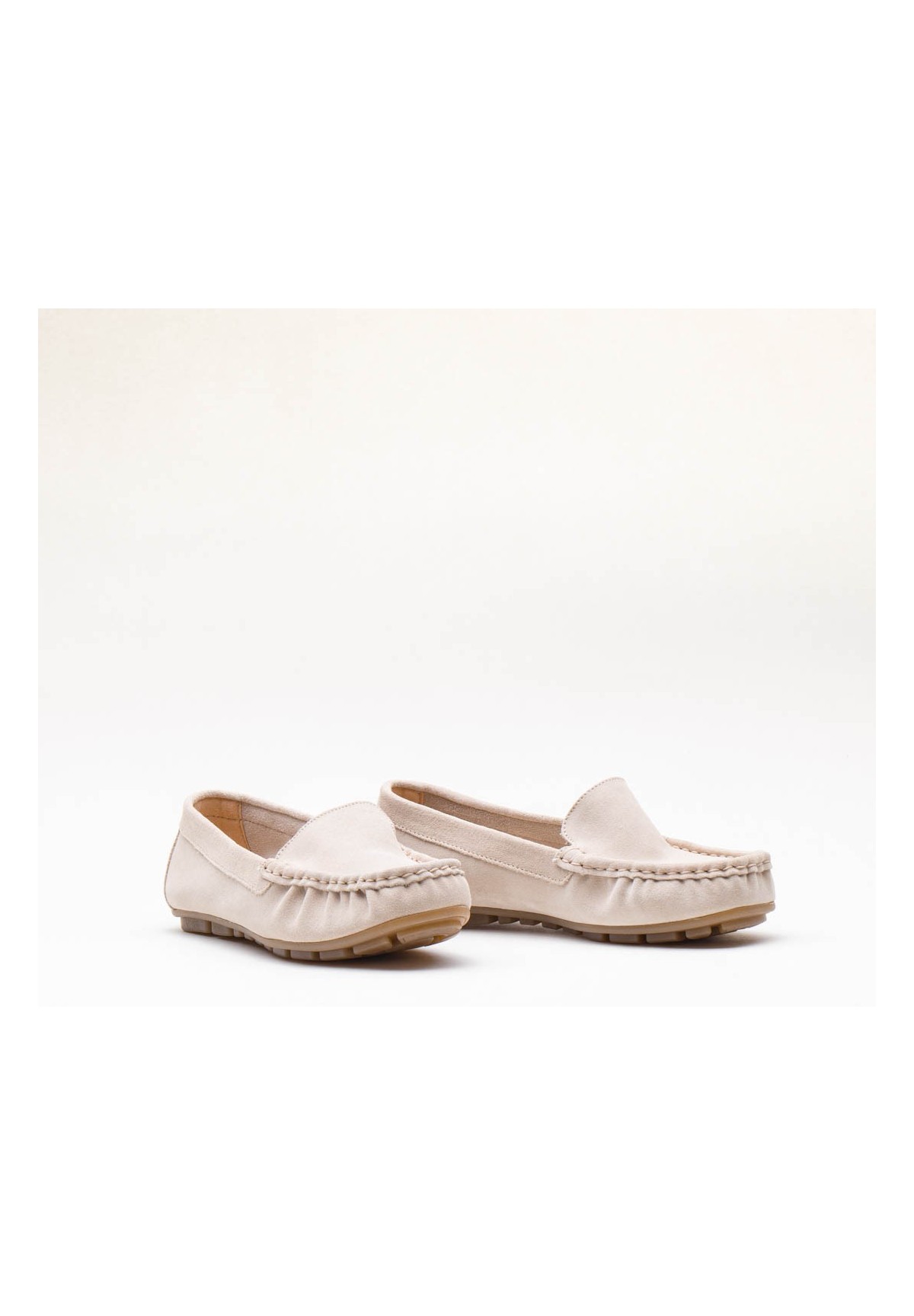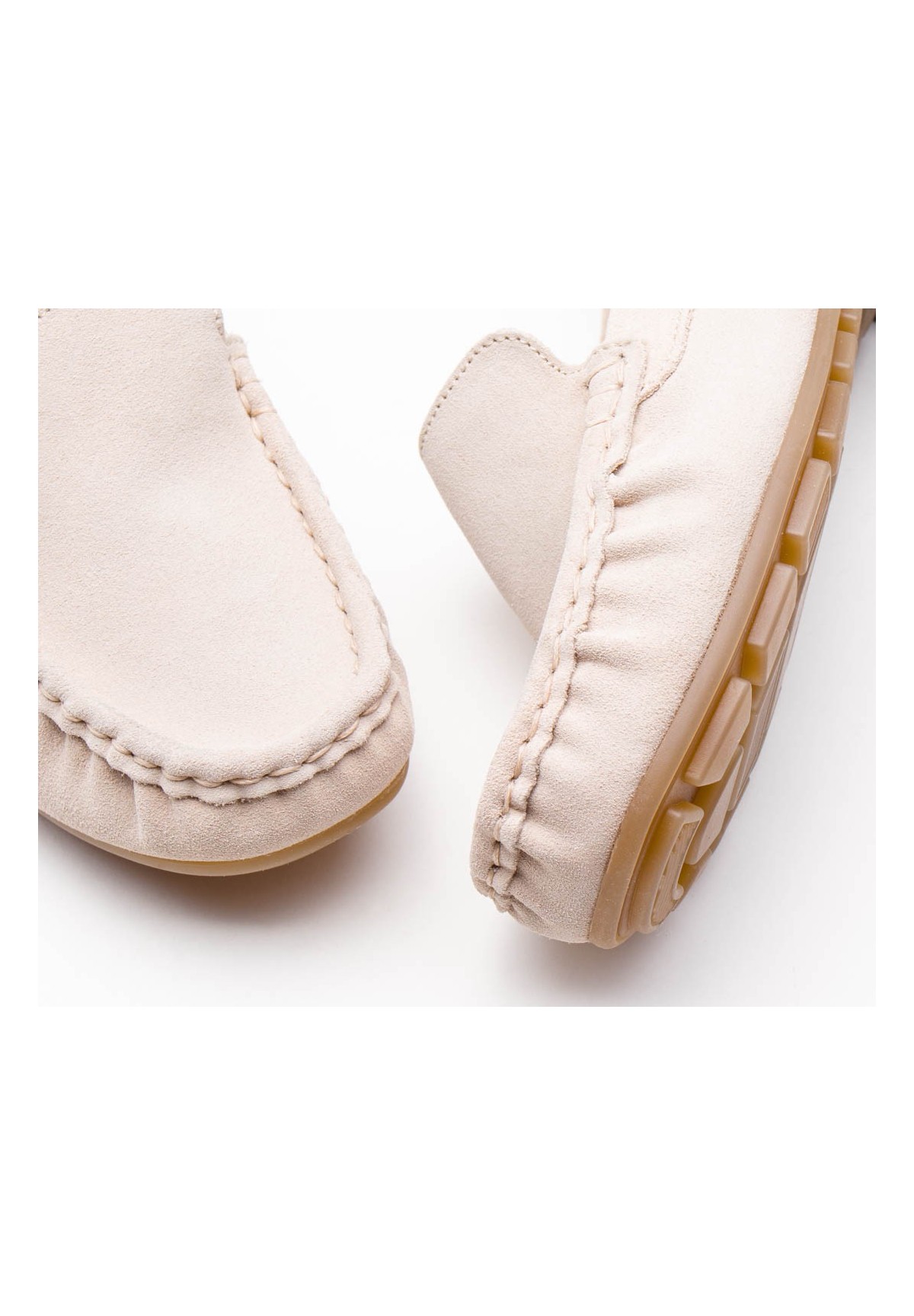 Mokasyny wykonane z naturalnej skóry welurowej w kolorze beżowym.