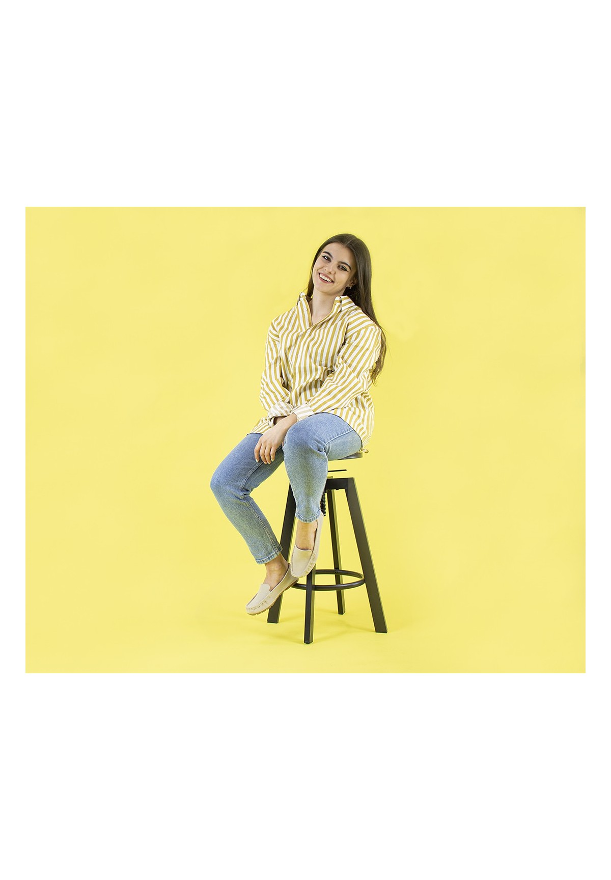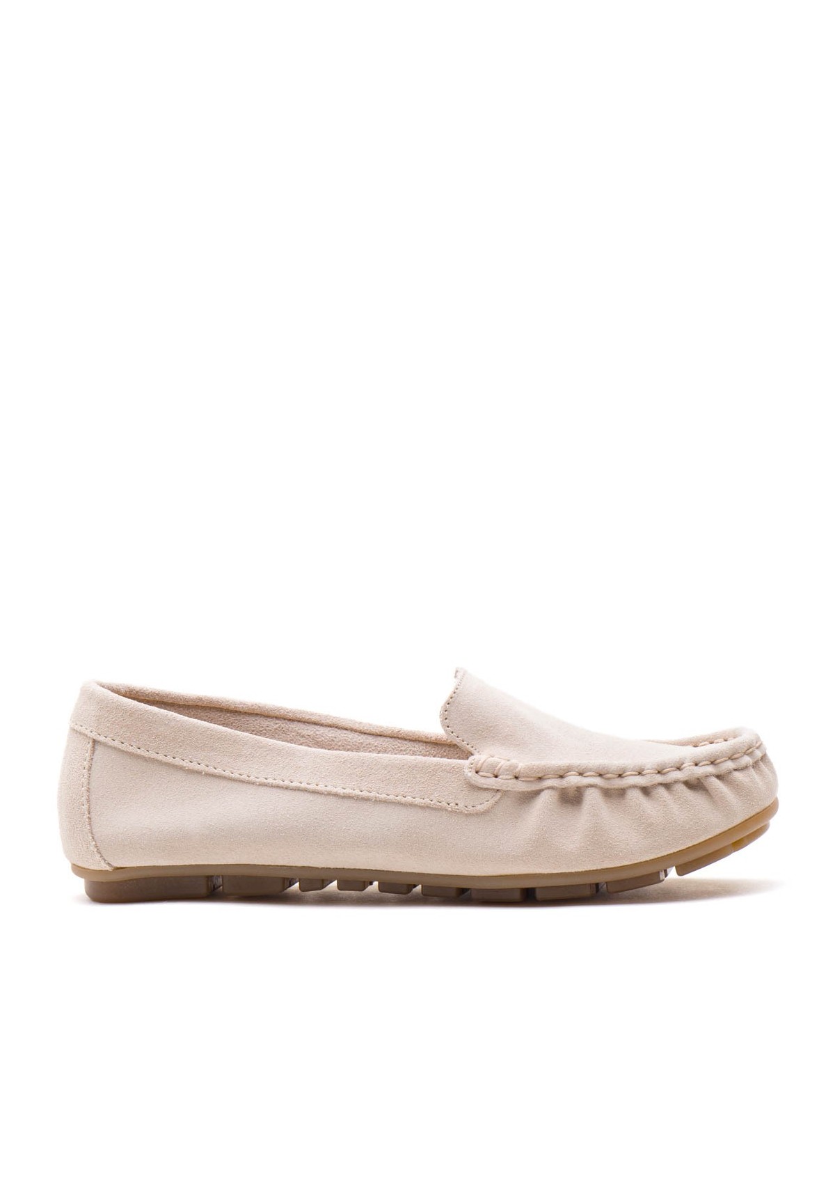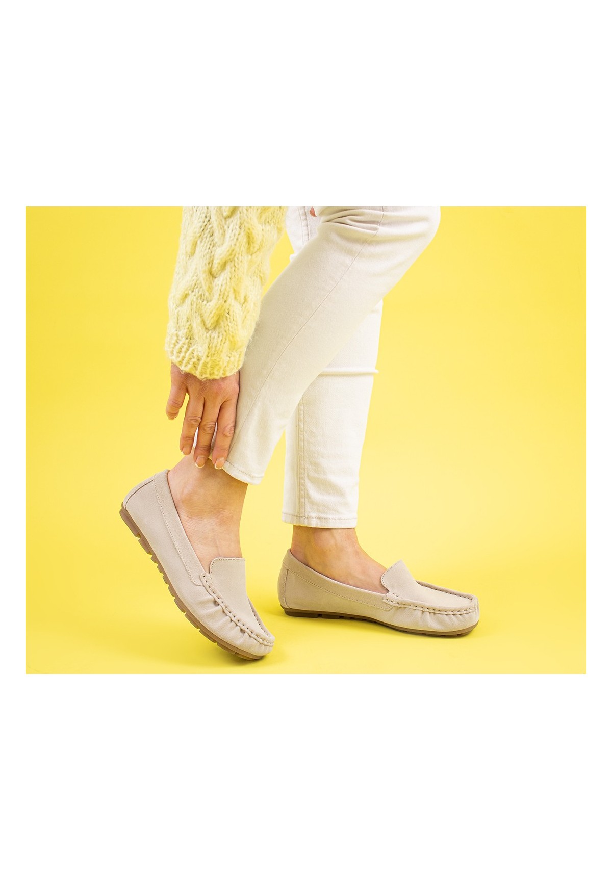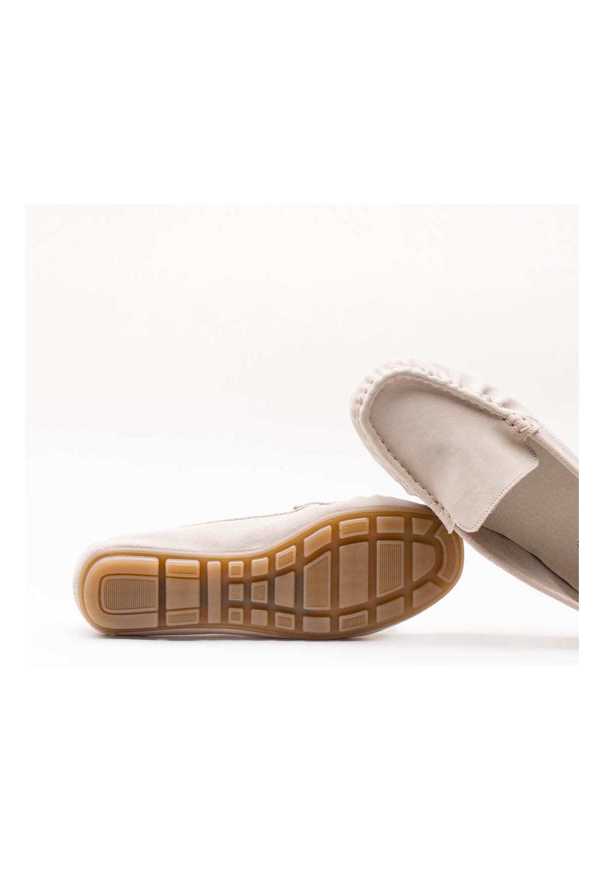 Mokasyny wykonane z naturalnej skóry welurowej w kolorze beżowym.