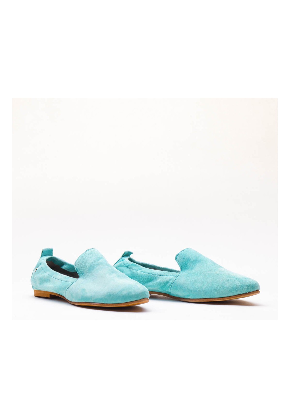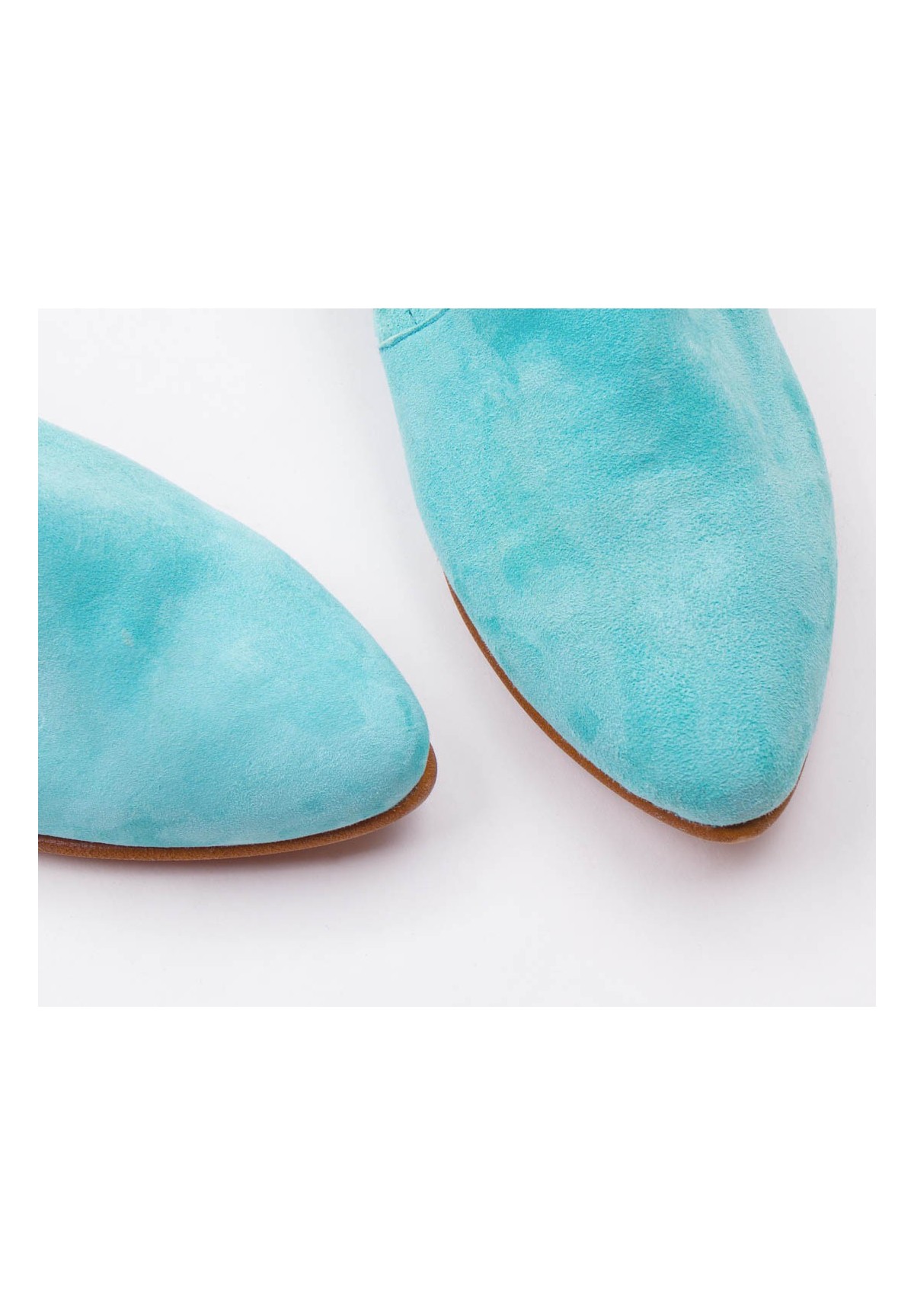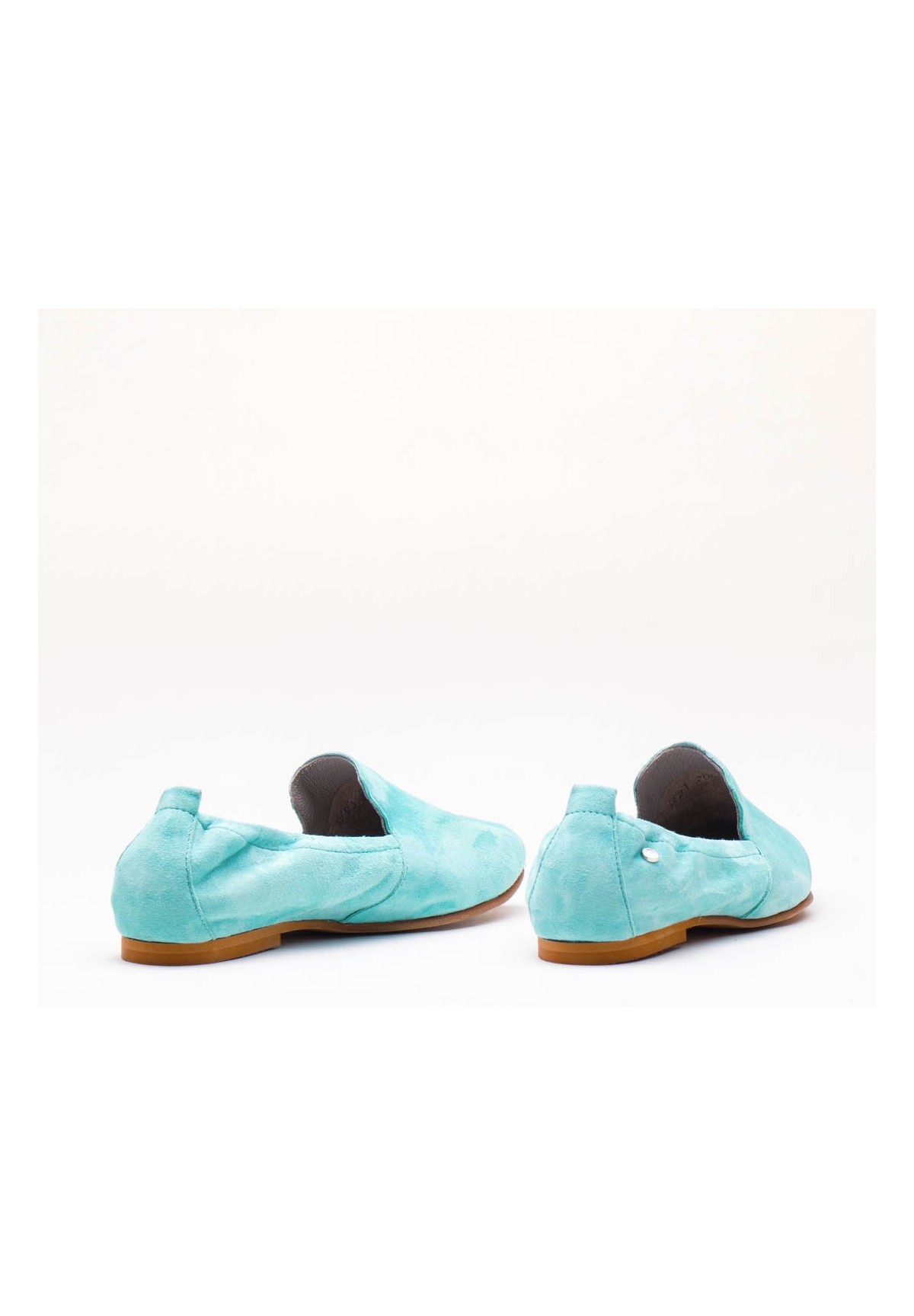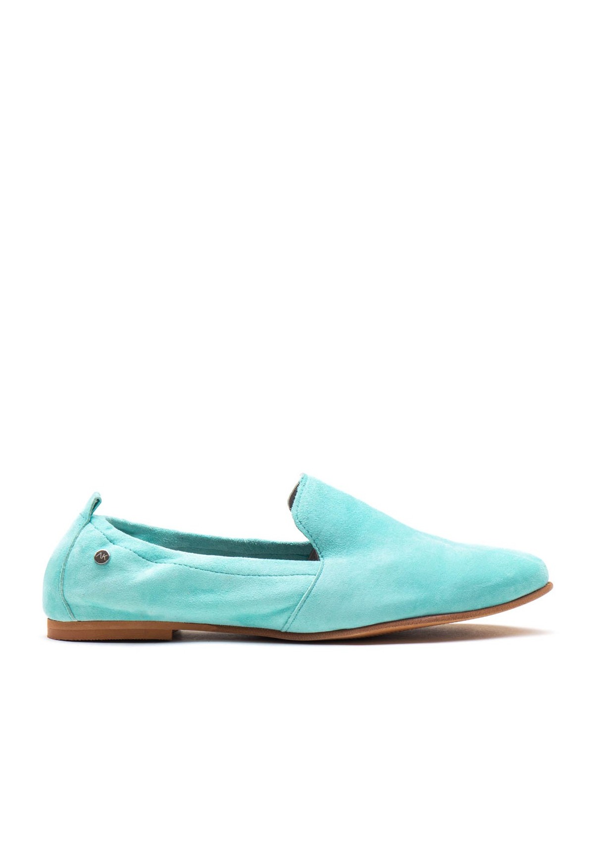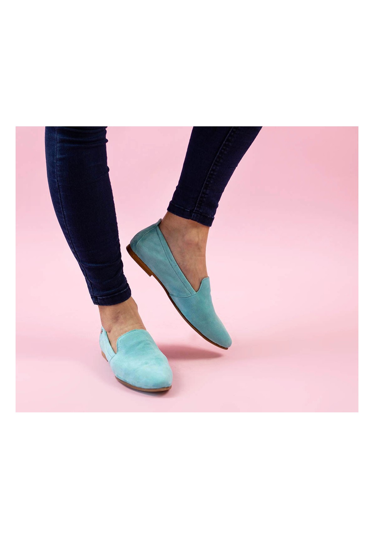 Półbuty wykonane z naturalnej skóry zamszowej w kolorze niebieskim.