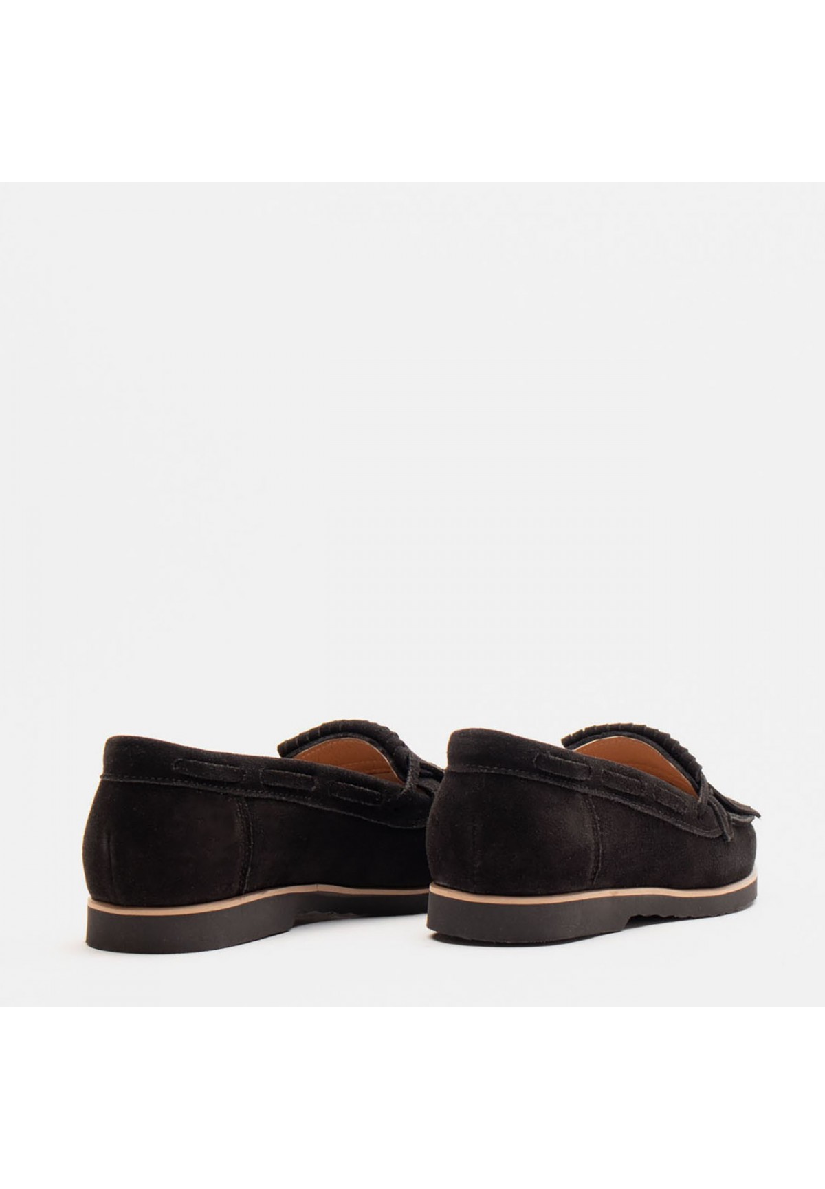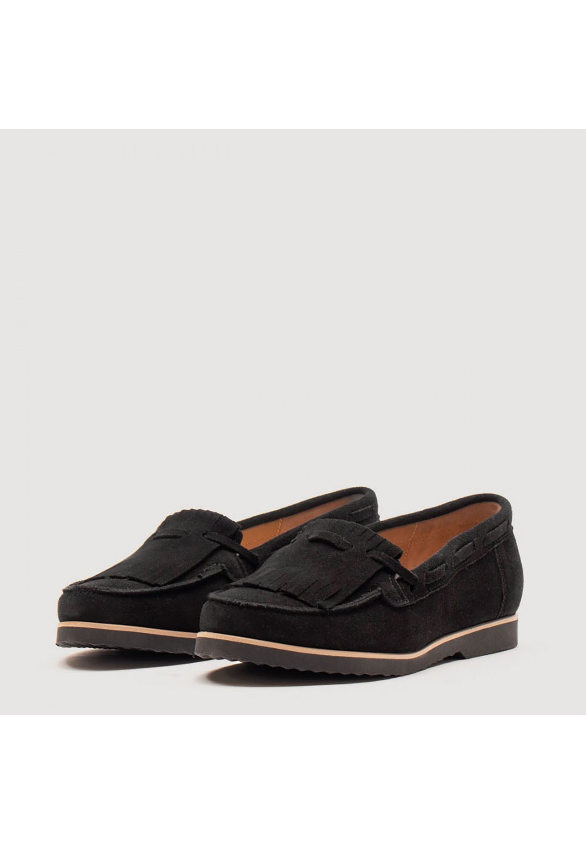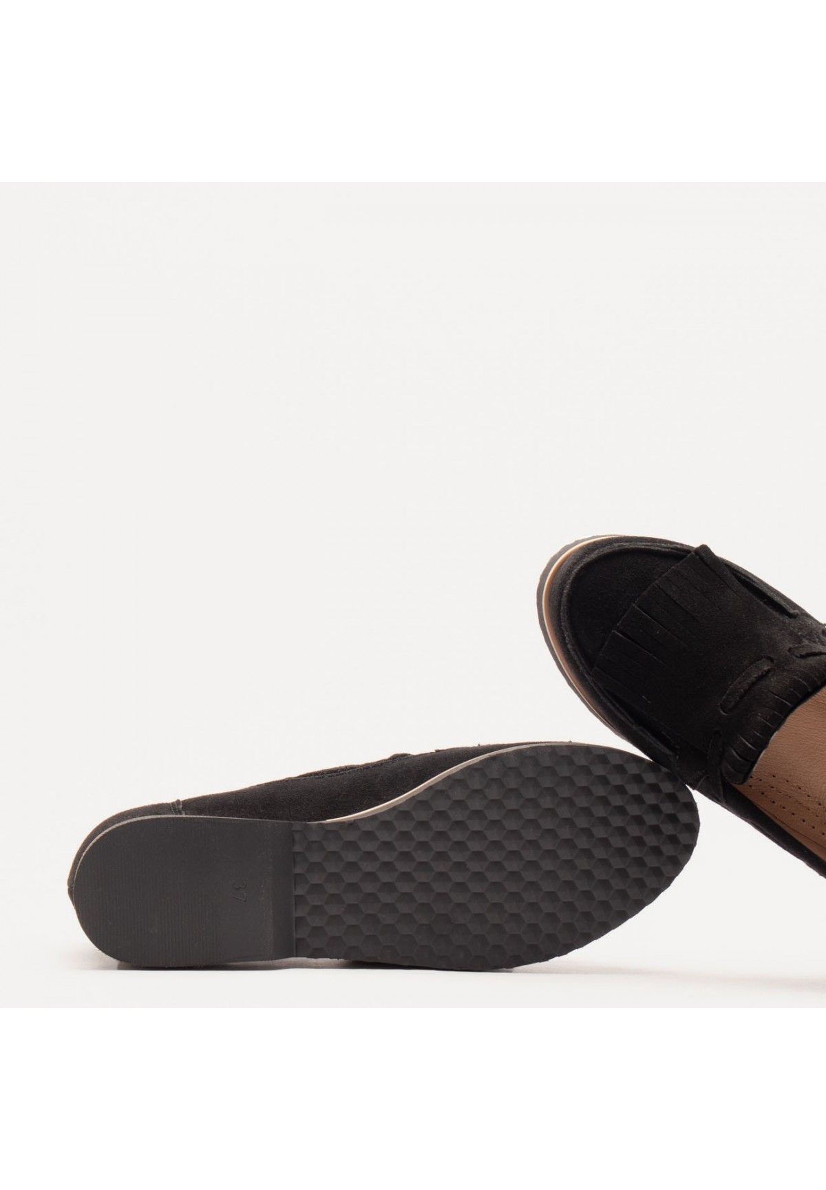 Eleganckie mokasyny damskie wykonane z wysokiej jakości welurowej skóry naturalnej w kolorze czarnym. Model posiada płaską podeszwę dla wygody i stabilności. Górna część cholewki zdobiona. Ich półokrągły nosek dodaje klasycznego wyglądu. Wnętrze mokasynów wyścielane jest miękką, naturalną skórą, zapewniającą komfort noszenia. Dodatkowo, skórzana wkładka gwarantuje jeszcze lepsze dopasowanie i wygodę podczas chodzenia. To idealny wybór dla kobiet ceniących styl i wygodę.