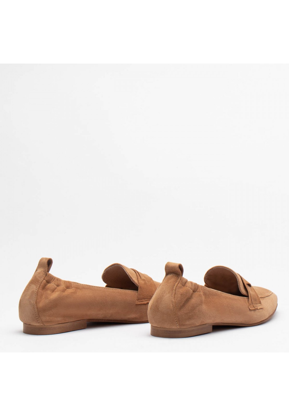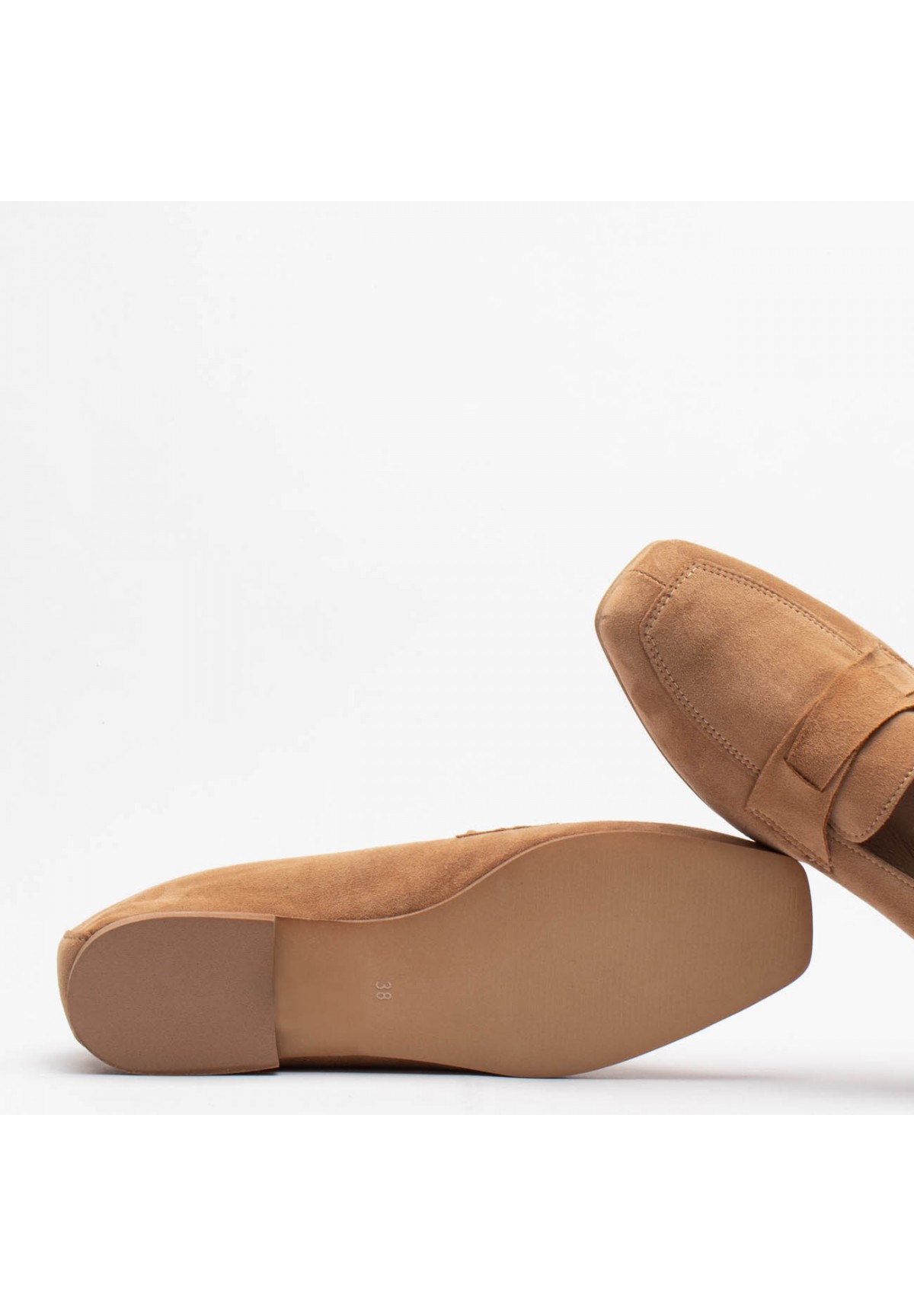 Mokasyny damskie to eleganckie buty na płaskim obcasie wykonane z wysokiej jakości naturalnej welurowej skóry. Ich charakterystycznym elementem jest ścięty nosek w kwadrat, nadający im nowoczesny wygląd. Cholewka ozdobiona jest stylową naszywką, dodającą im subtelnego uroku. Dla lepszego dopasowania i wygody, mokasyny posiadają ściągacz na zapiętku. Wnętrze butów wyściełane jest miękką podszewką, zapewniającą komfort noszenia przez cały dzień. Dodatkowo, wkładka wykonana jest ze skóry naturalnej, co gwarantuje trwałość i wygodę. Te mokasyny to doskonały wybór dla kobiet ceniących sobie styl oraz komfort.