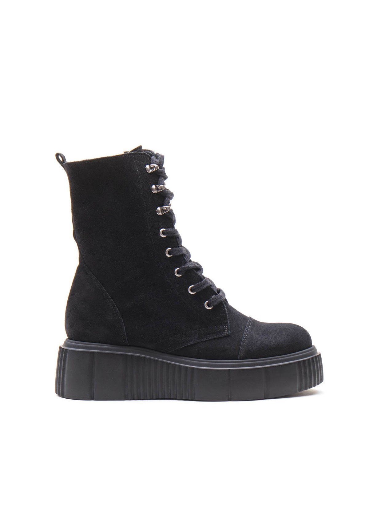 Botki damskie nad kostkę, zapinane za pomocą zamka, to doskonały wybór dla na okres jesienny. Wykonane z naturalnej skóry welurowej w kolorze beżowym. Osadzone na platformie, dzięki której są niezwykle wygodne i ładnie się prezentują. Sznurowanie zapewnia doskonałe dopasowanie cholewki do tęgości stopy. Wewnątrz znajduje się skórzana wkładka, która zapewnia stopom komfort podczas chodzenia.