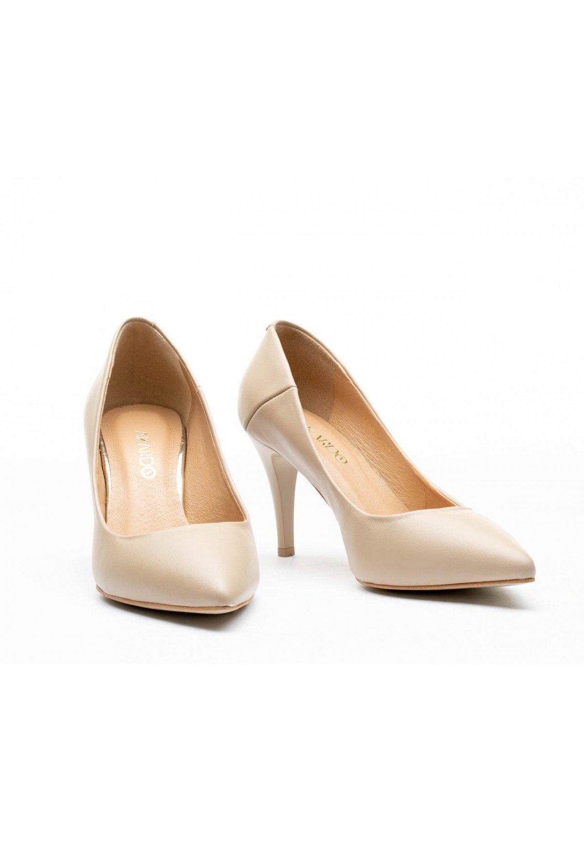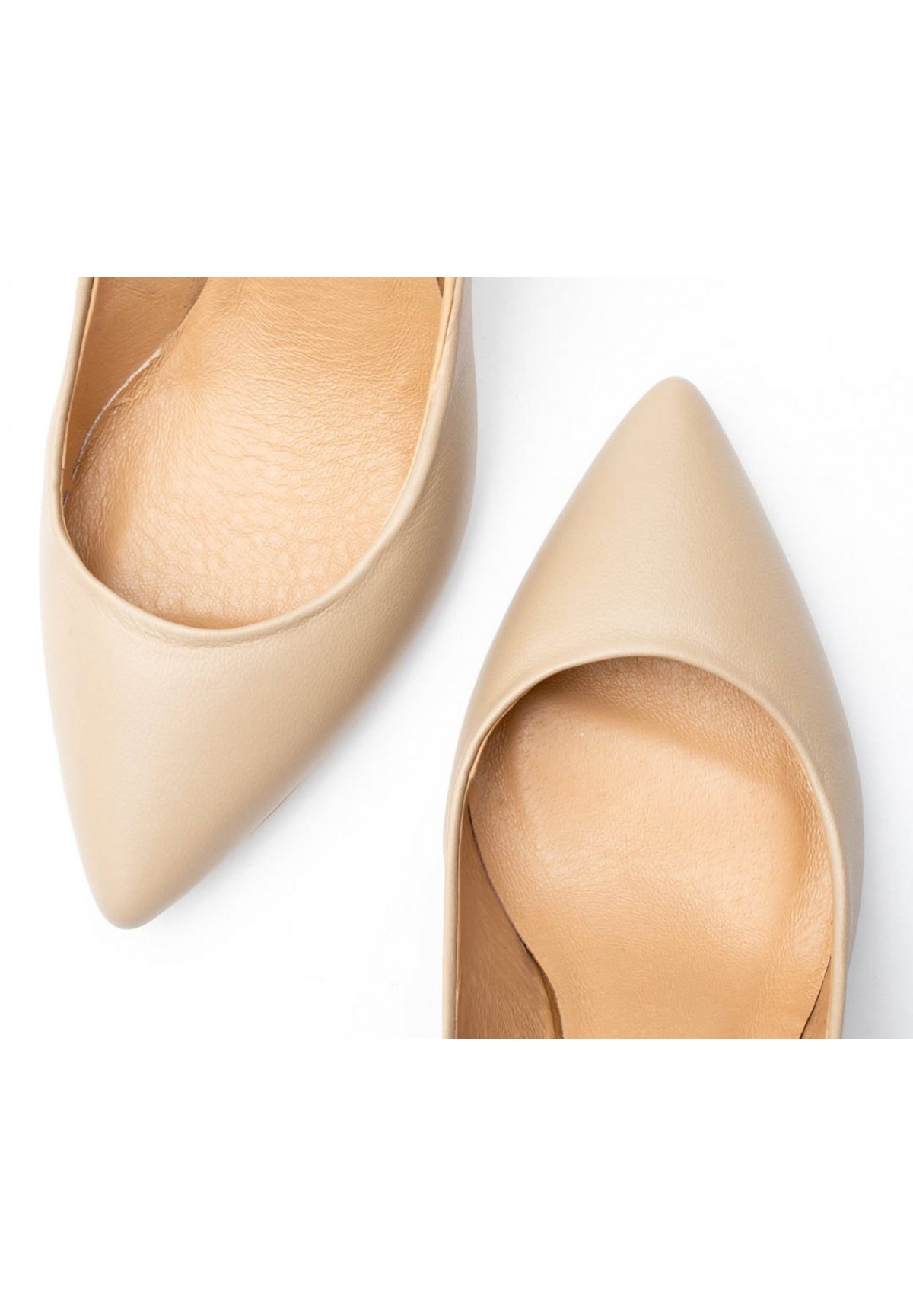 Beżowe czółenka damskie na wysokim obcasie, wykonane z naturalnej skóry licowej. Sprawdzą się jako buty do eleganckich stylizacji. Wewnętrzna wyściółka ze skóry naturalnej zapewnia komfort chodzenia. Klasyczny krój w szpic i wysoka szpilka z pewnością optycznie wydłuży i wysmukli nogi.