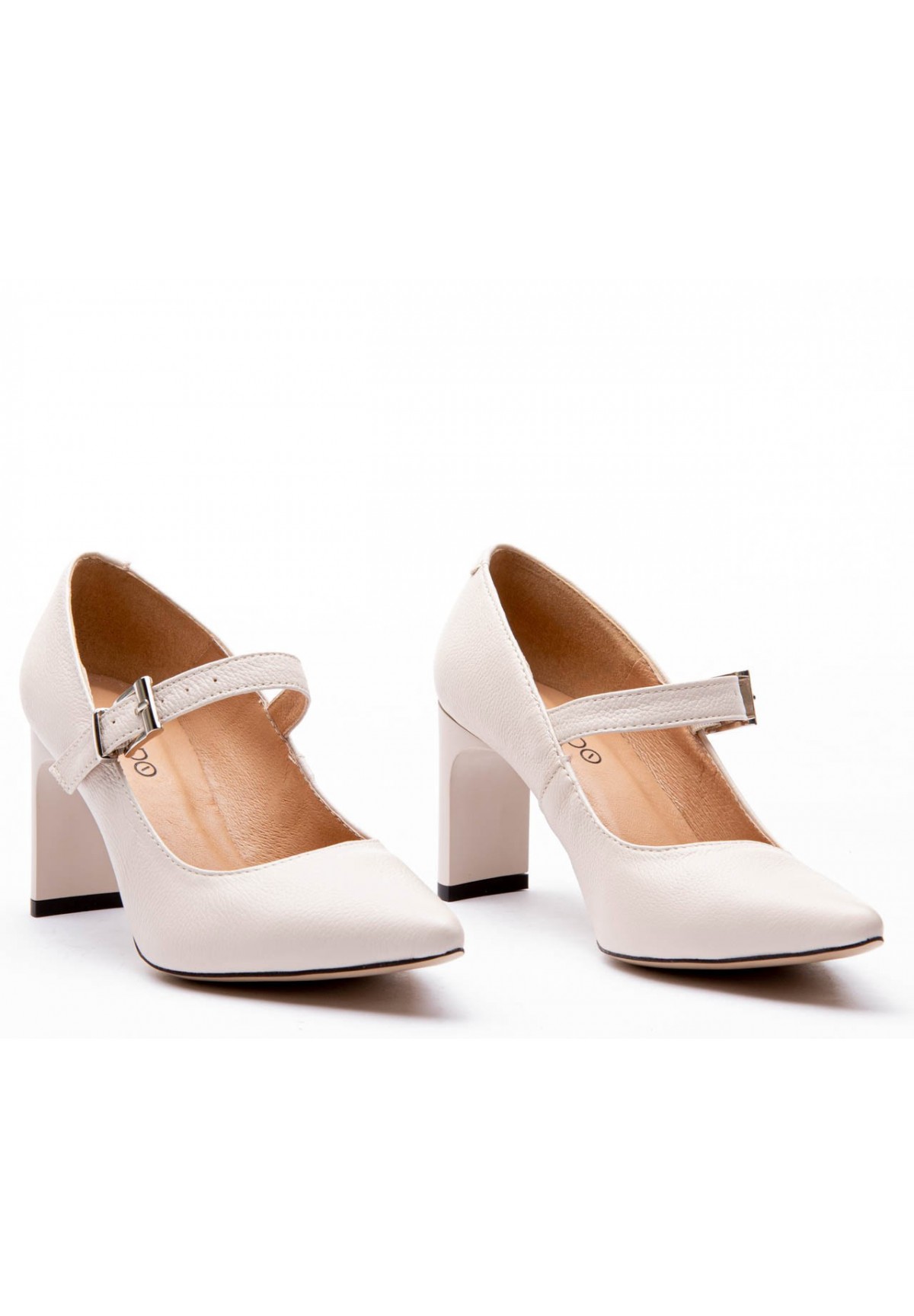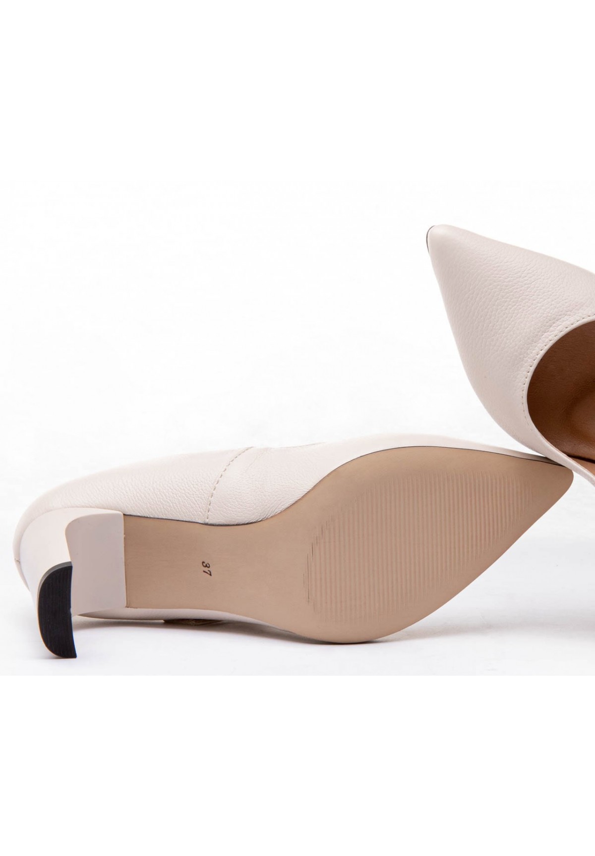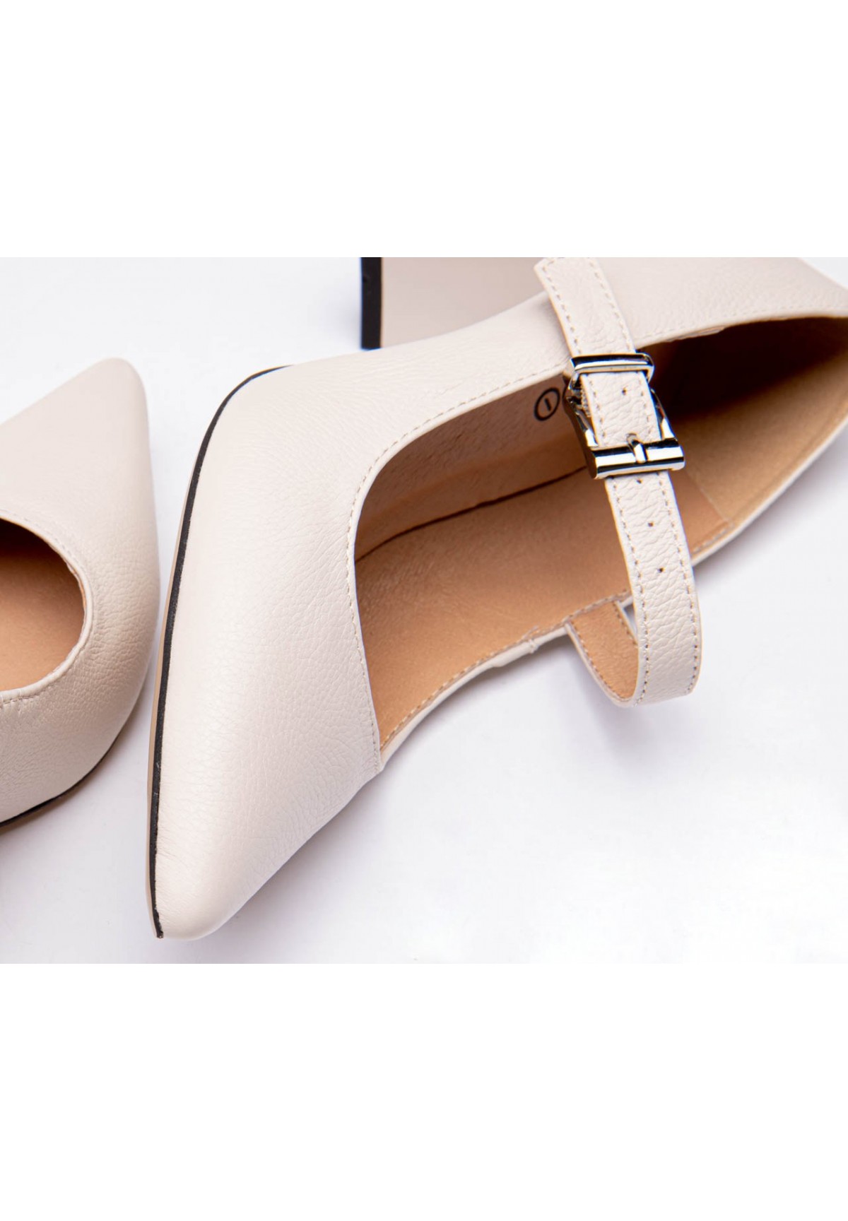 Beżowe czółenka damskie w klasycznej czerni dopełnią niejedną stylizacje. Wykonane z naturalnej skóry licowej, o groszkowej fakturze. Zdobione cienkim paskiem ze złotą sprzączką. Dzięki noskom w szpic optycznie wydłużają nogi. Średniej wielkości, szeroki obcas oraz miękka wyściółka zapewniają komfort użytkowania przez długi czas. Doskonałe zarówno na wielkie wyjścia, jak i do pracy.