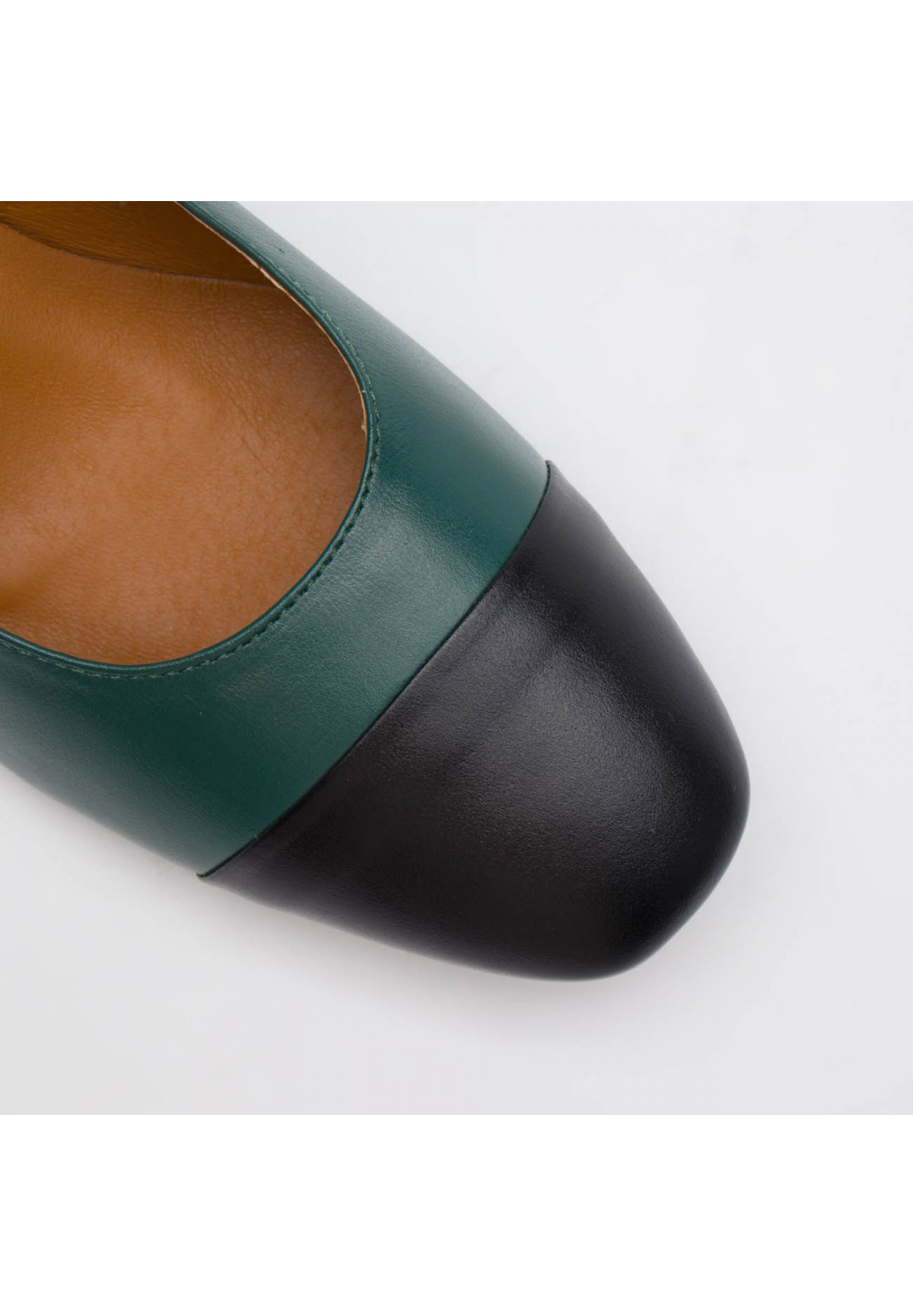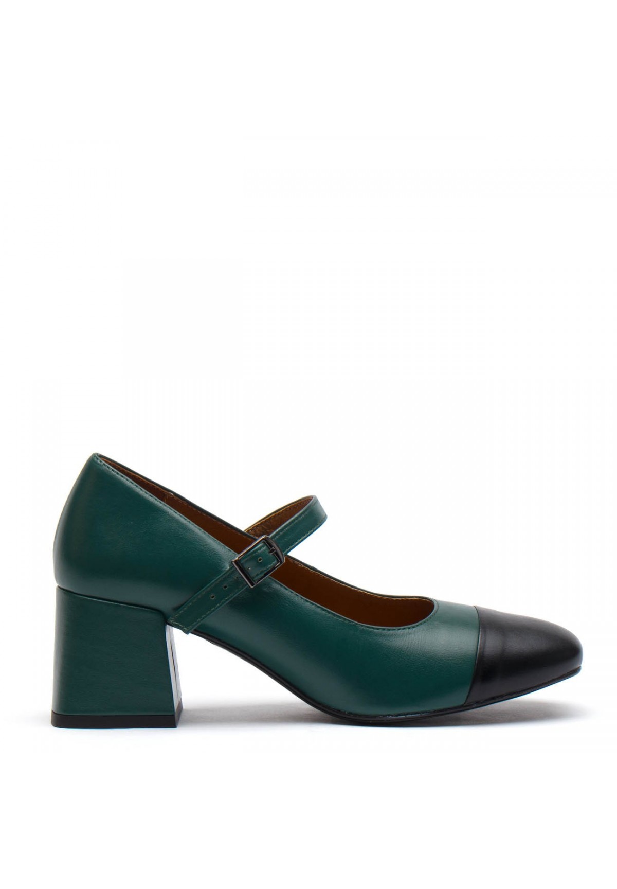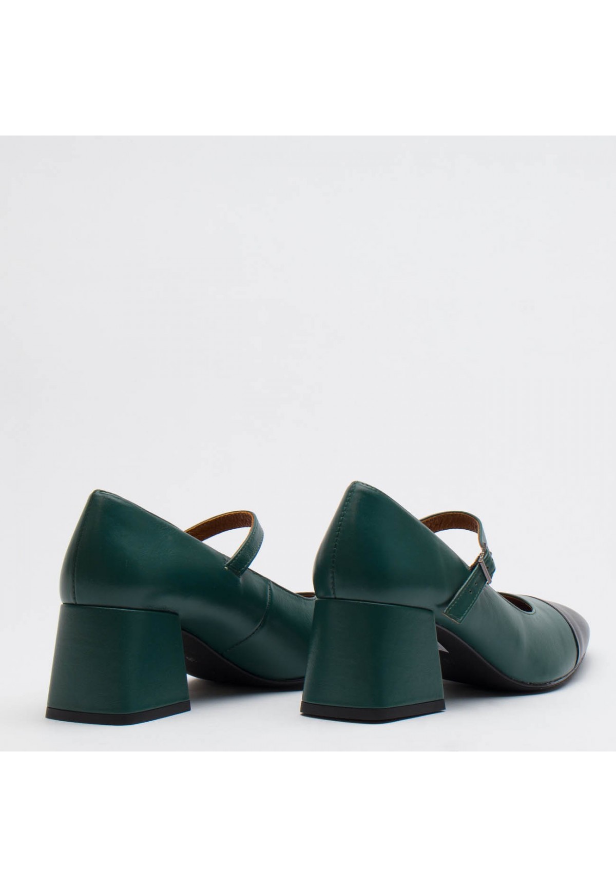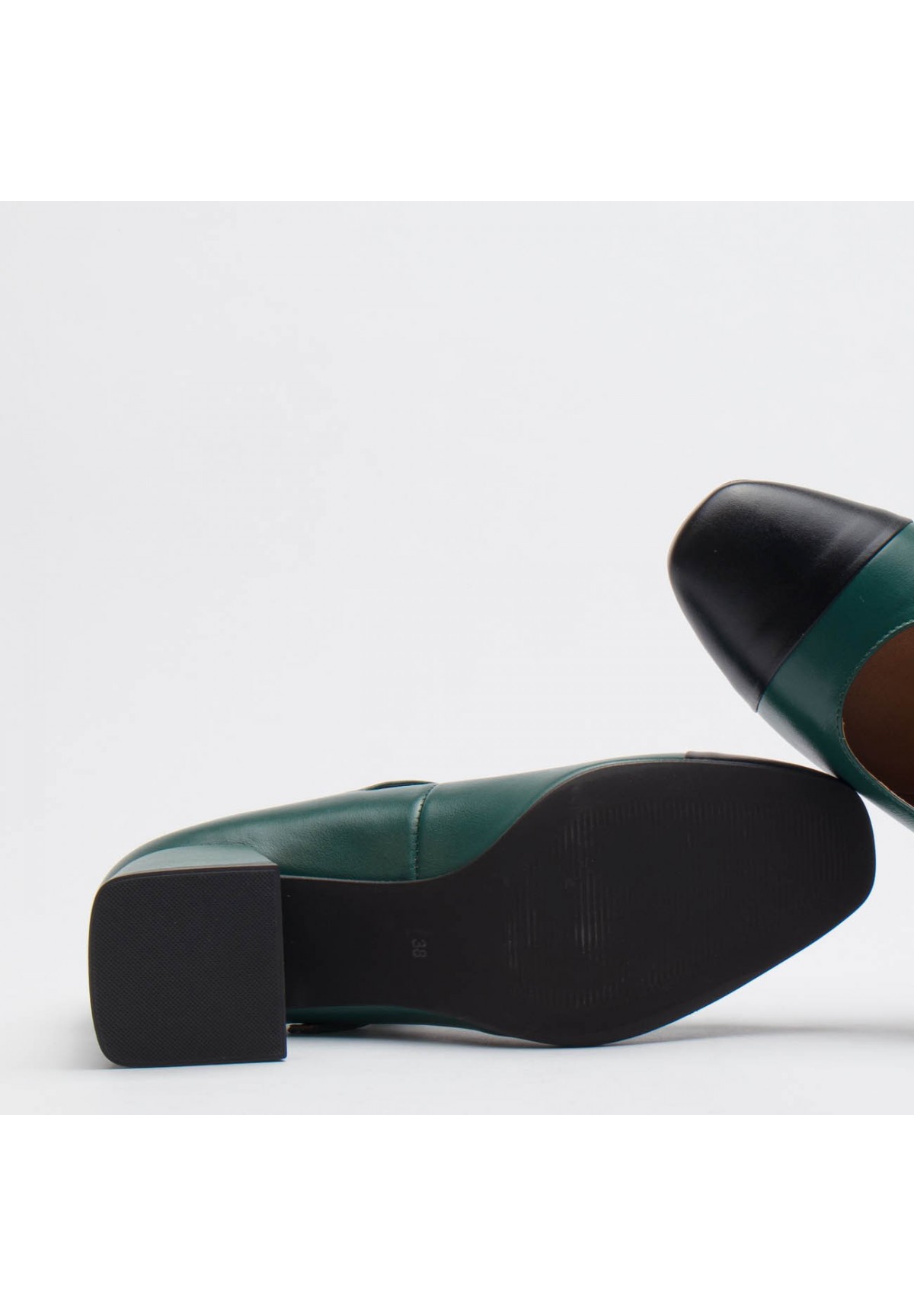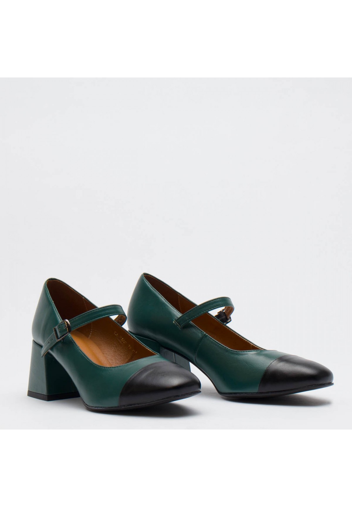 Wyjątkowe czółenka damskie łączące klasykę z subtelną nowoczesnością. Zostały wykonane ze skóry licowej w głębokim odcieniu zieleni, co nadaje im wyjątkowości. Dodatkowy akcent w postaci czarnej skóry na nosku buta dodaje im charakteru i subtelnej ekstrawagancji, tworząc harmonijne połączenie kolorów. Buty zapinane są za pomocą cienkiego paska ze sprzączką, co nie tylko dodaje im elegancji, ale także zapewnia pewne i komfortowe dopasowanie do stopy. Ich stabilny, kwadratowy obcas nie tylko gwarantuje wygodę, ale także nadaje butom pewności kroku, czyniąc je idealnym wyborem zarówno na co dzień, jak i na specjalne okazje. Nosek buta w formie kwadratu dodaje im wyrazistości i charakteru, nadając stylizacji niepowtarzalnego uroku.