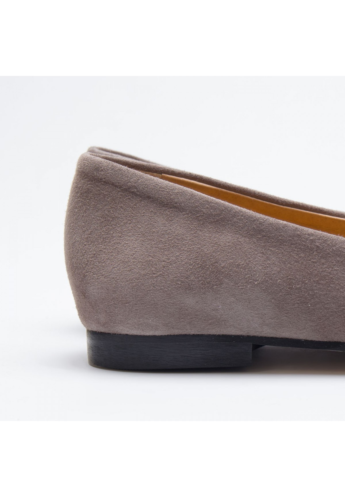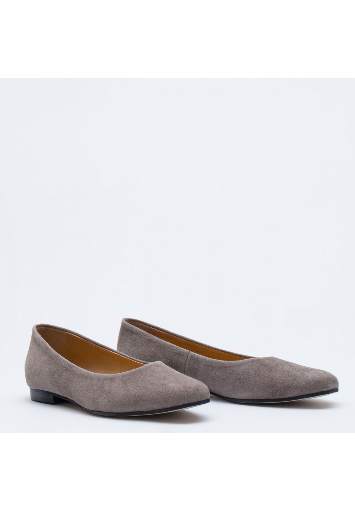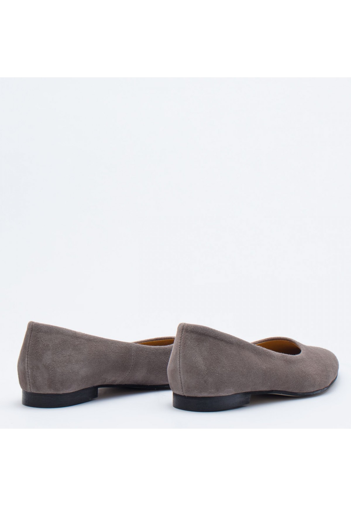 Klasyczne baleriny damskie wykonane z najwyższej jakości skóry naturalnej zamszowej. Idealne dla kobiet ceniących zarówno styl, jak i komfort. Nosek butów został precyzyjnie ukształtowany w kwadratową formę, nadając im unikalny, nowoczesny wygląd, który wyróżnia się spośród tradycyjnych wzorów. Buty są osadzone na podeszwie z delikatnym obcasem, który dodaje im lekkości i subtelności, jednocześnie zapewniając stabilność i pewność kroku.