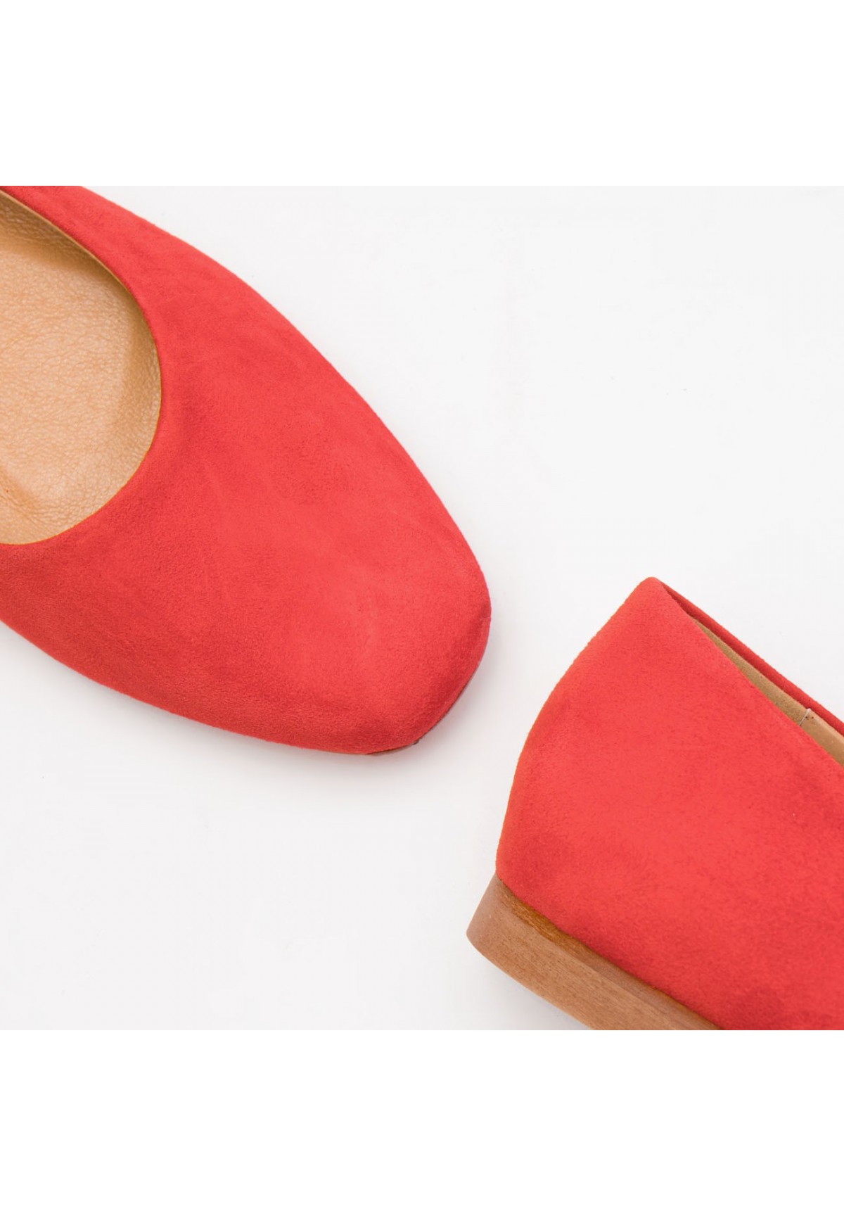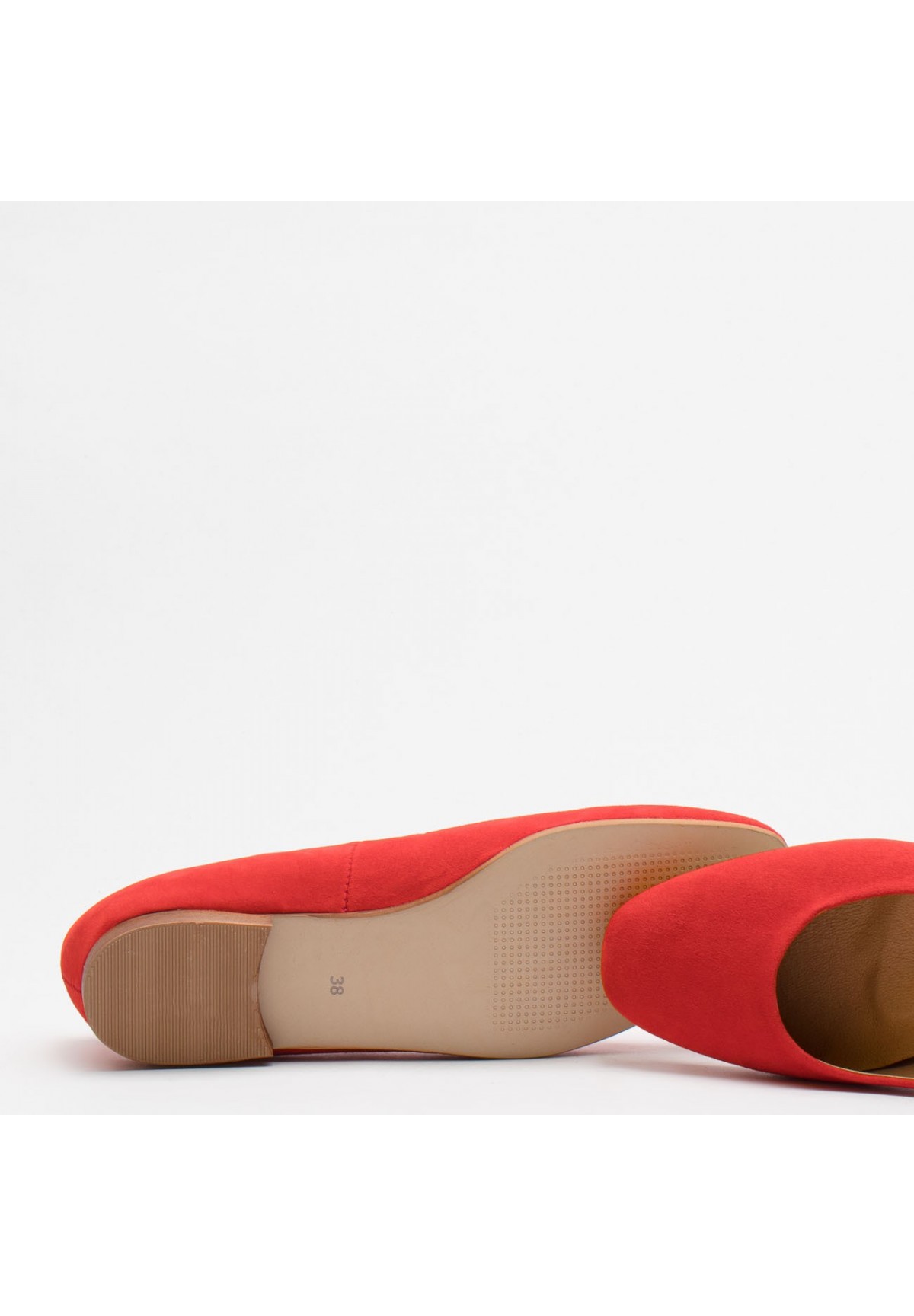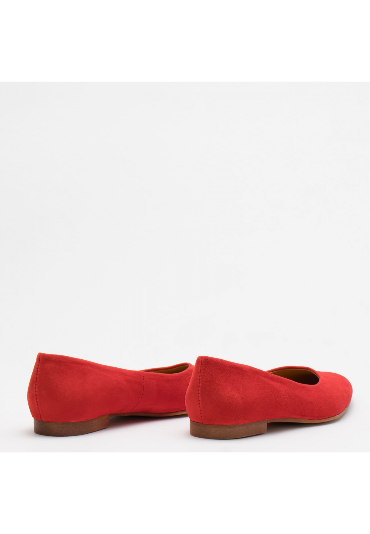 Klasyczne baleriny damskie wykonane z najwyższej jakości skóry naturalnej zamszowej. Idealne dla kobiet ceniących zarówno styl, jak i komfort. Nosek butów został precyzyjnie ukształtowany w kwadratową formę, nadając im unikalny, nowoczesny wygląd, który wyróżnia się spośród tradycyjnych wzorów. Buty są osadzone na podeszwie z delikatnym obcasem, który dodaje im lekkości i subtelności, jednocześnie zapewniając stabilność i pewność kroku.
