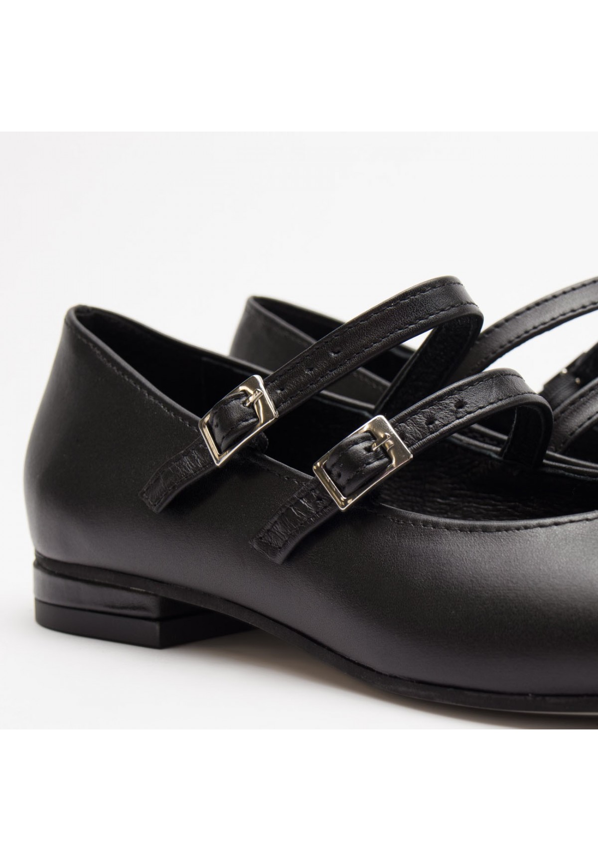 Baleriny damskie w typie Mary Jane to połączenie klasyki i wygody - idealne dla kobiet ceniących sobie elegancję oraz komfort. Wykonane z wysokiej jakości skóry naturalnej o gładkiej fakturze. Ich prosty, lecz elegancki design wyróżnia się kwadratowym, ściętym noskiem, dodając charakteru całej stylizacji. Kluczowym elementem tych balerin jest zapięcie za pomocą pasków z klamrą, które dodaje nie tylko funkcjonalności, ale także subtelnej nuty szyku. Baleriny posiadają podeszwę z niskim obcasem, która zapewnia stabilność podczas chodzenia, pozwalając na swobodne poruszanie się przez cały dzień. Wnętrze wyścielane jest naturalną podszewką oraz wkładką, co gwarantuje maksymalny komfort noszenia. Dzięki temu buty te idealnie dopasowują się do stopy i zapewniają uczucie lekkości nawet podczas długotrwałego noszenia.