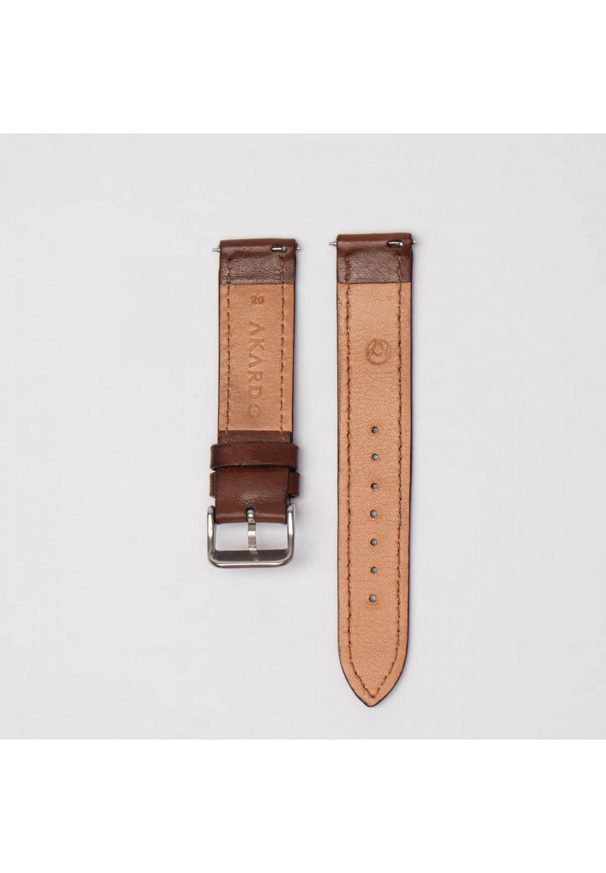 Pasek do zegarka wykonany z wysokiej jakości skóry naturalnej Bufallo w eleganckim kolorze brązowym, to wyjątkowy dodatek, łączący w sobie trwałość i estetykę. Skóra Bufallo charakteryzuje się wyjątkową wytrzymałością, gwarantującą długotrwałe użytkowanie paska bez utraty jego pierwotnego wyglądu. Podszewka wykonana z bydlęcej skóry zapewnia dodatkową warstwę wytrzymałości i komfortu noszenia. Pasek ten został wyposażony w innowacyjne szybkozłączki sprężynowe (Quick-Release Spring Bars), które umożliwiają błyskawiczną wymianę paska, co jest niezwykle praktyczne i ułatwia dostosowanie zegarka do różnych okazji i stylów.