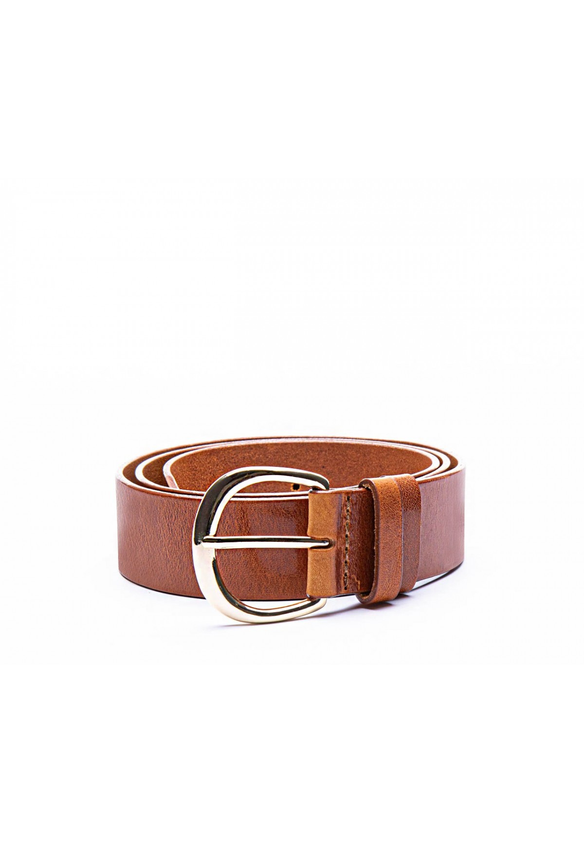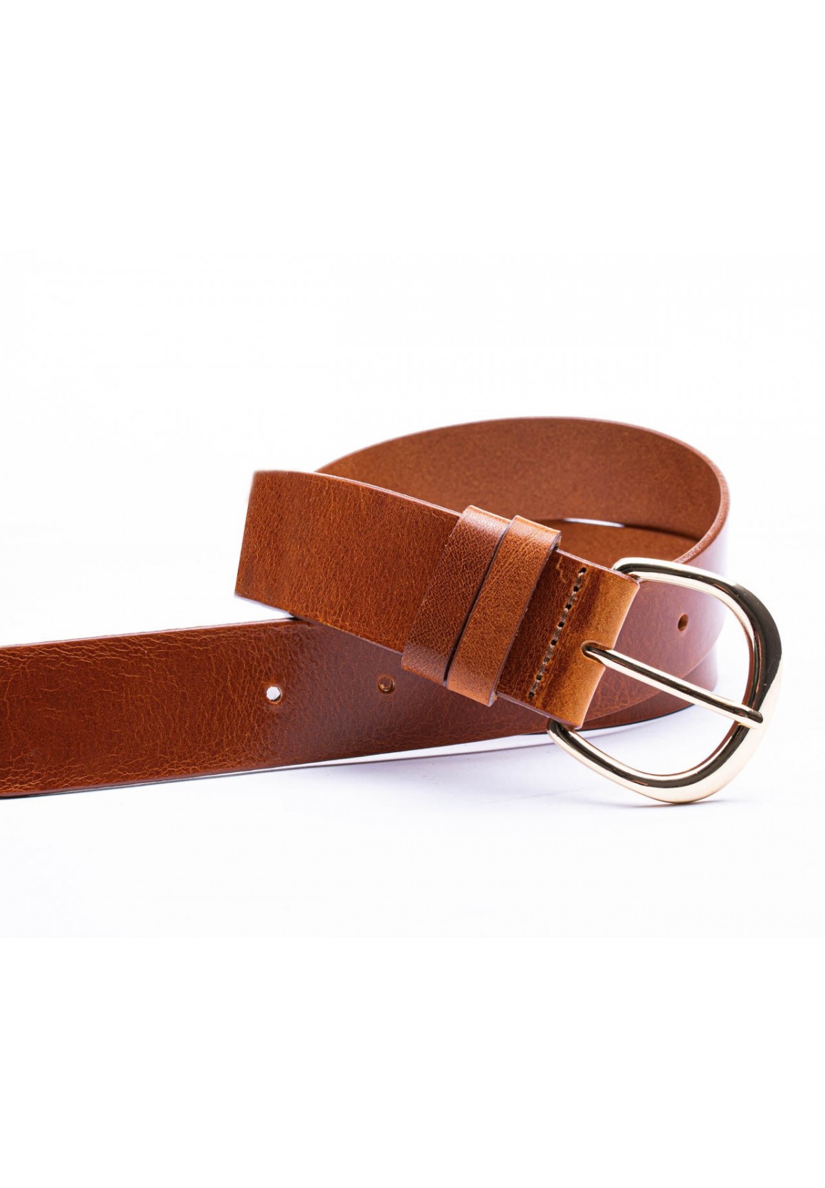 Szykowny pasek damski wykonany z naturalnej skóry licowej w kolorze brązowym. Idealny jako dodatek do jeansów, szortów, jak i również szerokich swetrów. Zapinany na złotą klamrę o delikatnym wzorze.