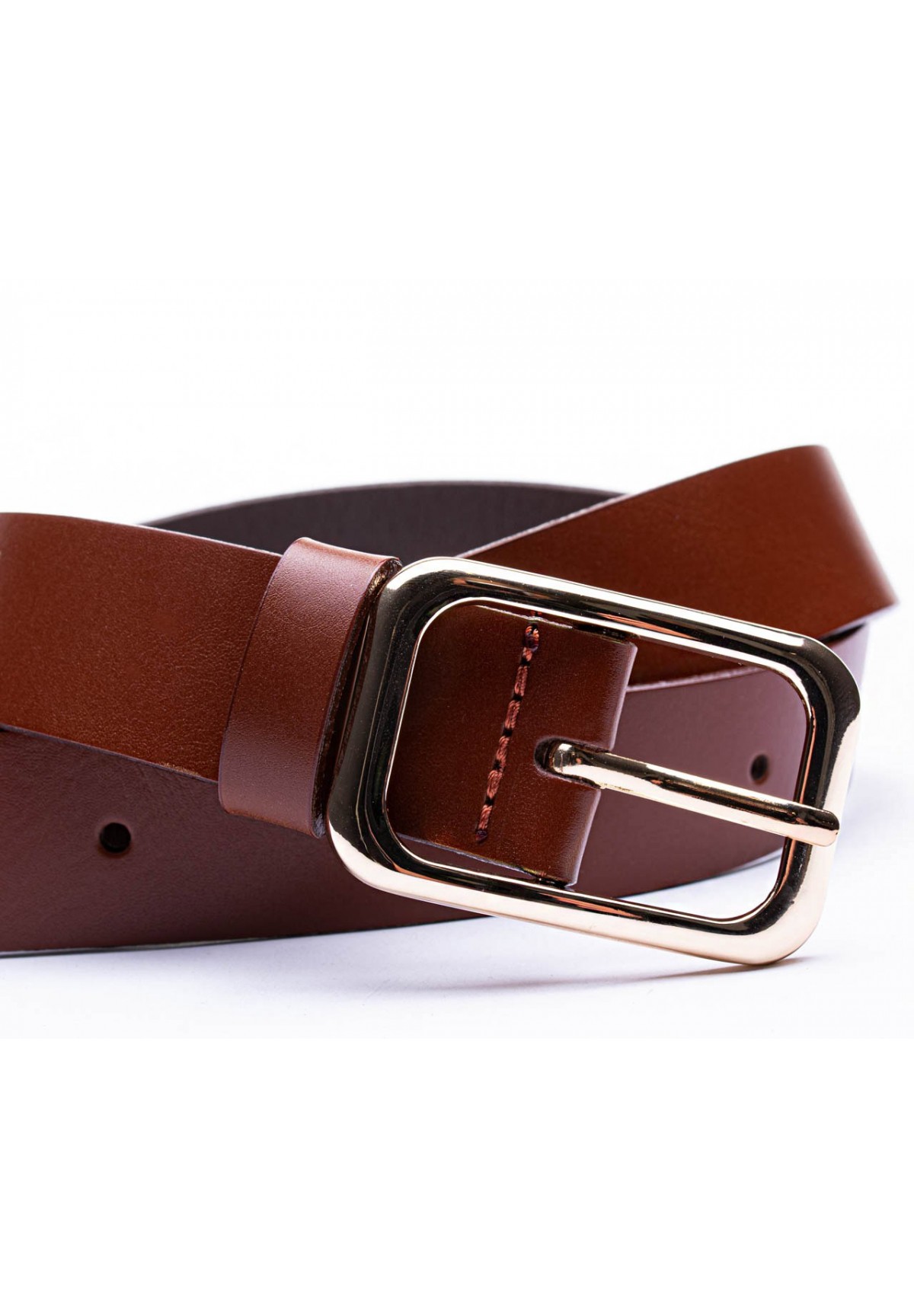 Wykonany z najwyższej jakości skóry naturalnej, elegancki pasek damski w kolorze karmelowym. Zapinany na złotą klamrę. Delikatnie błyszczący. Jako dodatek do sukienki czy swetra, świetnie podkreśli talię i z pewnością przyciągnie spojrzenia. Prezentowany model ma 3 cm szerokości.