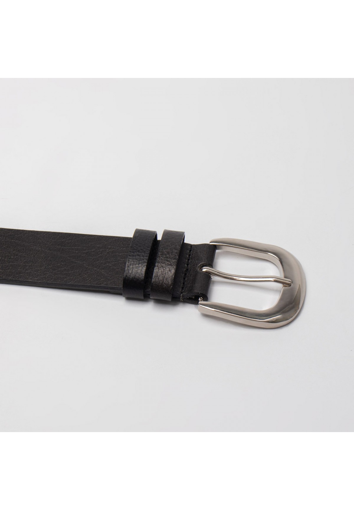 Elegancki czarny pasek damski, wykonany ze skóry naturalnej o wysokiej jakości, co czyni go nie tylko stylowym, ale także trwałym i wytrzymałym dodatkiem.