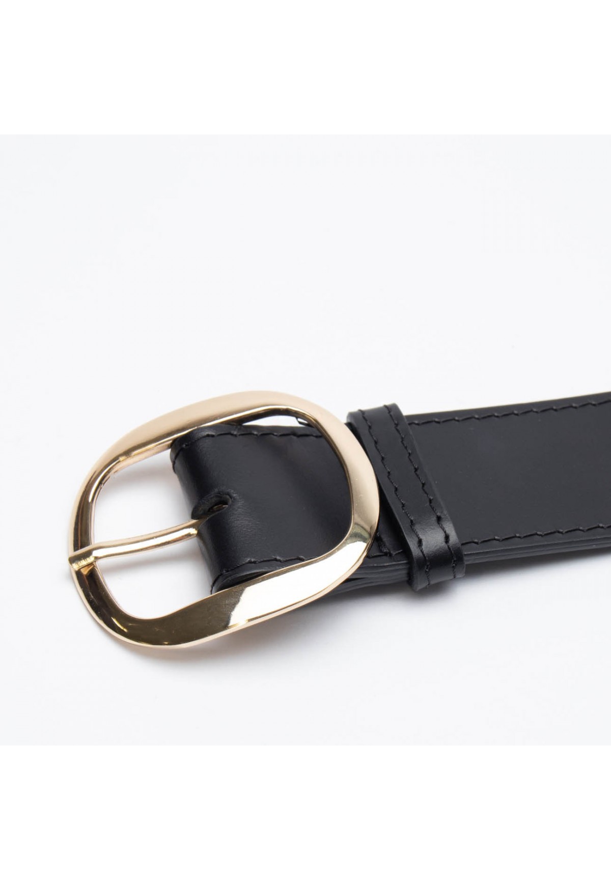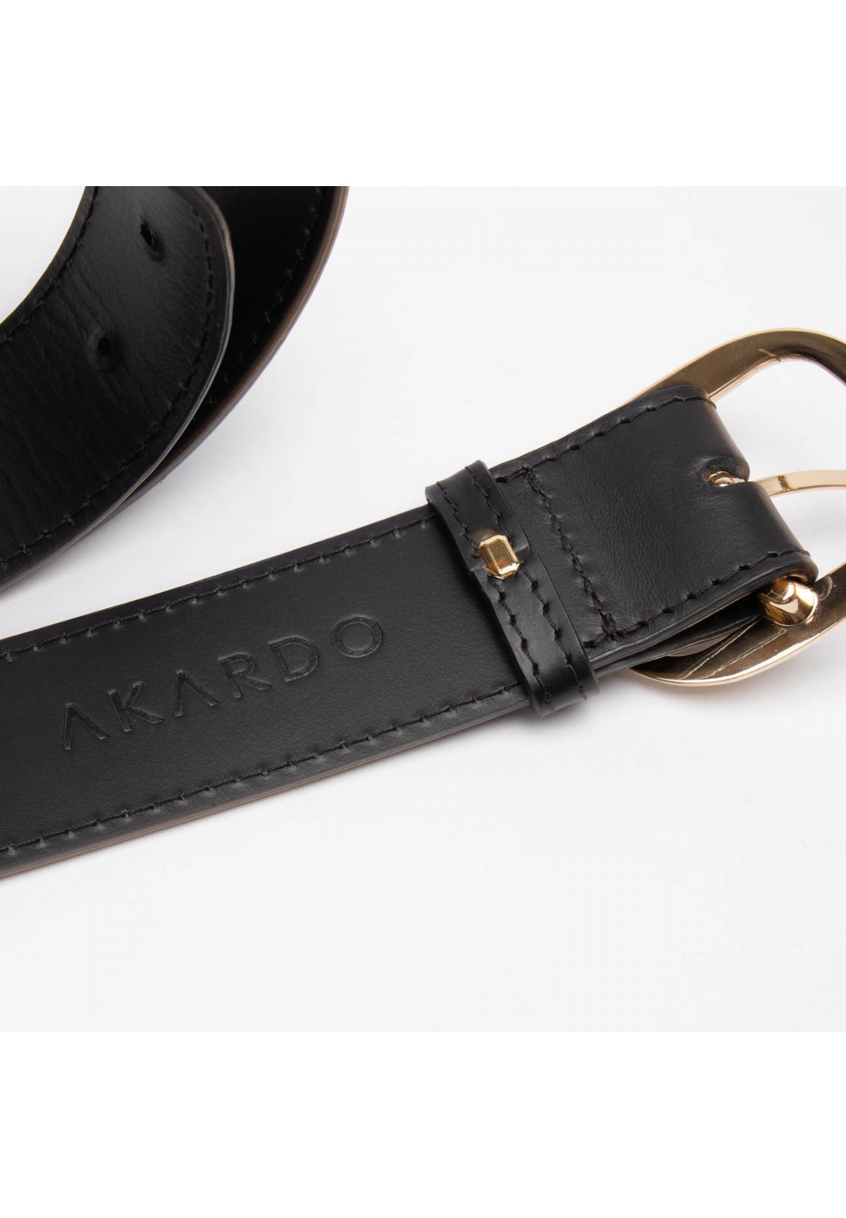 Pasek damski o szerokości 4 cm, wykonany ze skóry naturalnej. Doskonale podkreśla talię, dodając subtelności. Jego czarna barwa emanuje klasą, podkreślając każdy outfit. Kamra, wykonana z pozłacanego metalu, dodaje subtelnego blasku i ekskluzywnego wykończenia. To nie tylko praktyczny dodatek do garderoby, ale także element, który wyróżnia się swoim wykwintnym wyglądem.