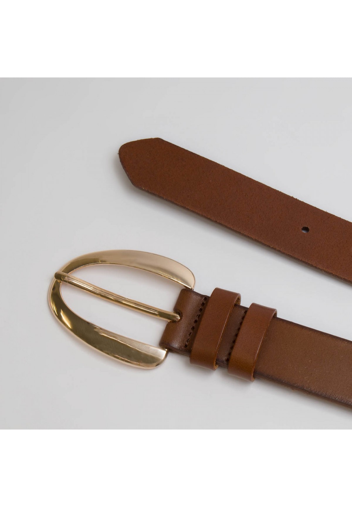 Pasek damski wykonany z najwyższej jakości naturalnej skóry licowej w głębokim, eleganckim, brązowym kolorze. Jego szerokość wynosząca 3 cm nadaje mu proporcje idealne dla kobiecej sylwetki, równocześnie podkreślając styl i elegancję. Niezwykłą cechą tego paska jest jego klamra, która przyciąga uwagę swoim niebanalnym wzornictwem i wykończeniem. Klamra, wykonana z solidnego metalu w kolorze złotym, jest prawdziwym dziełem sztuki. Jej unikalny wzór sprawia, że pasek staje się nie tylko funkcjonalnym dodatkiem do stroju, ale również wyrazistym elementem designerskim. Skóra licowa użyta do produkcji paska jest miękka i przyjemna w dotyku, zapewniając nie tylko wygodę noszenia, ale również trwałość i elegancję.