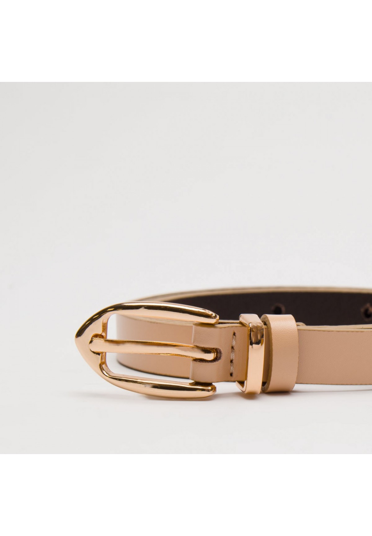Delikatny i elegancki, cienki pasek damski wykonany ze skóry naturalnej, gładkiej. Podkreśla subtelność każdej kreacji. Jego niewielka szerokość, wynosząca zaledwie 1,5 cm sprawia, że jest idealny do noszenia z sukienkami. Ozdobna klamra, umieszczona na końcu paska, o długości około 4 centymetrów przyciąga wzrok i nadaje charakteru całej stylizacji. Doskonale współgra z różnorodnymi fasonami sukienek, od prostych i minimalistycznych, po te bardziej wyszukane, nadając im subtelny, ale znaczący akcent.