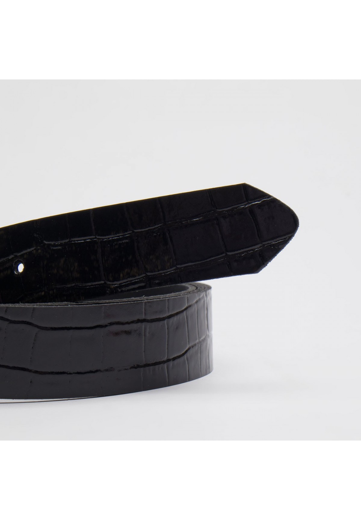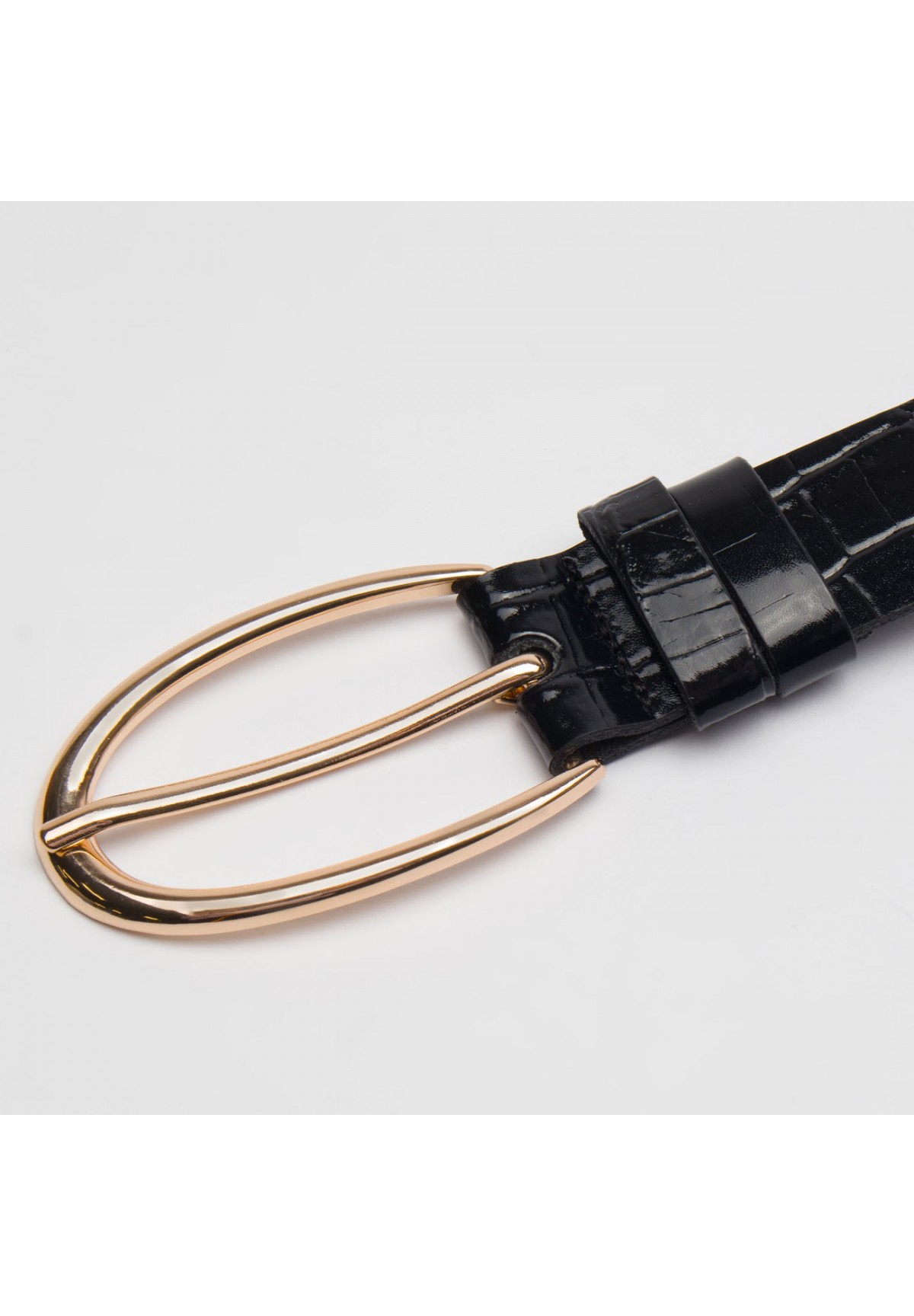 Czarny pasek damski croco z ozdobną klamrą - CINDY