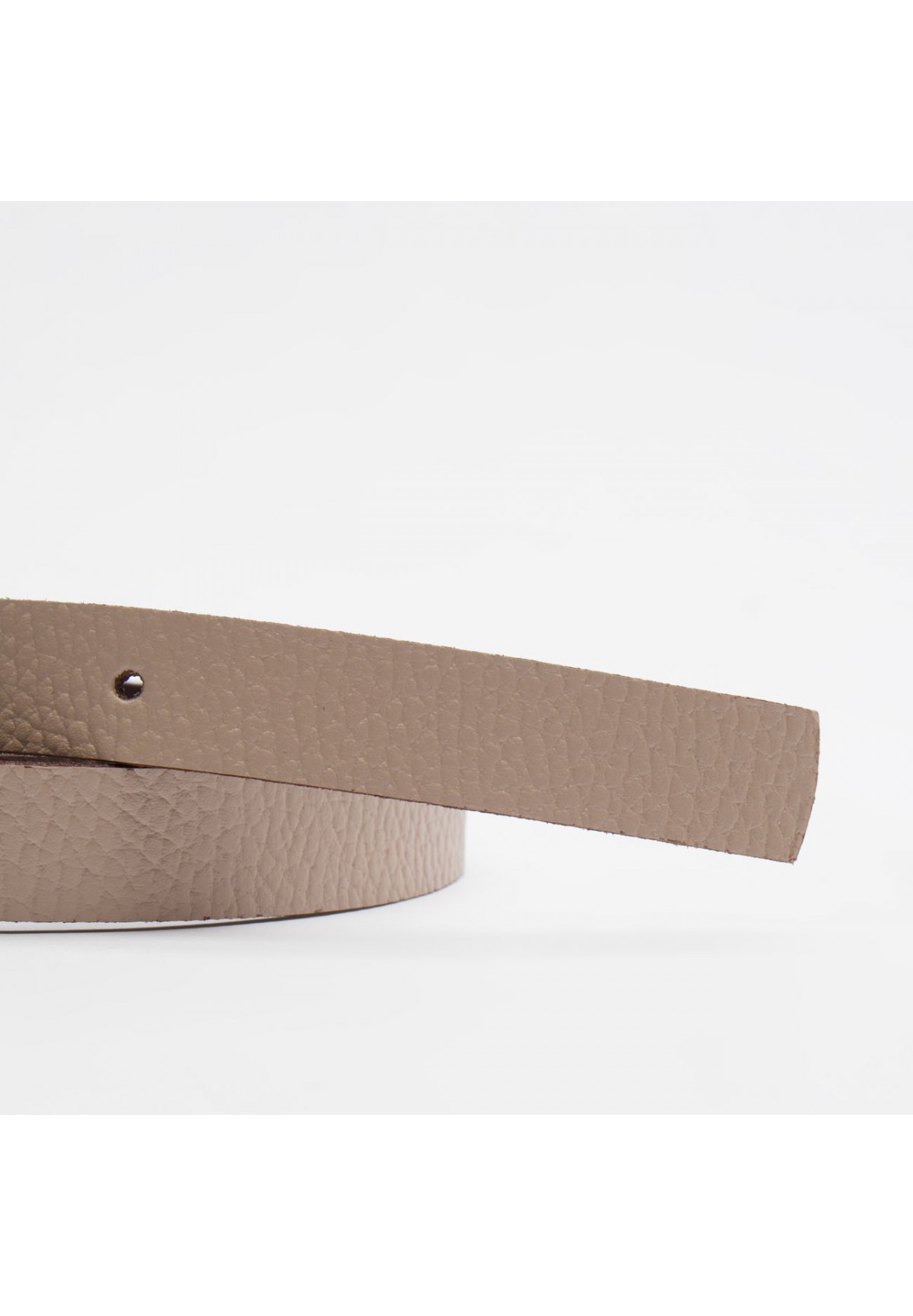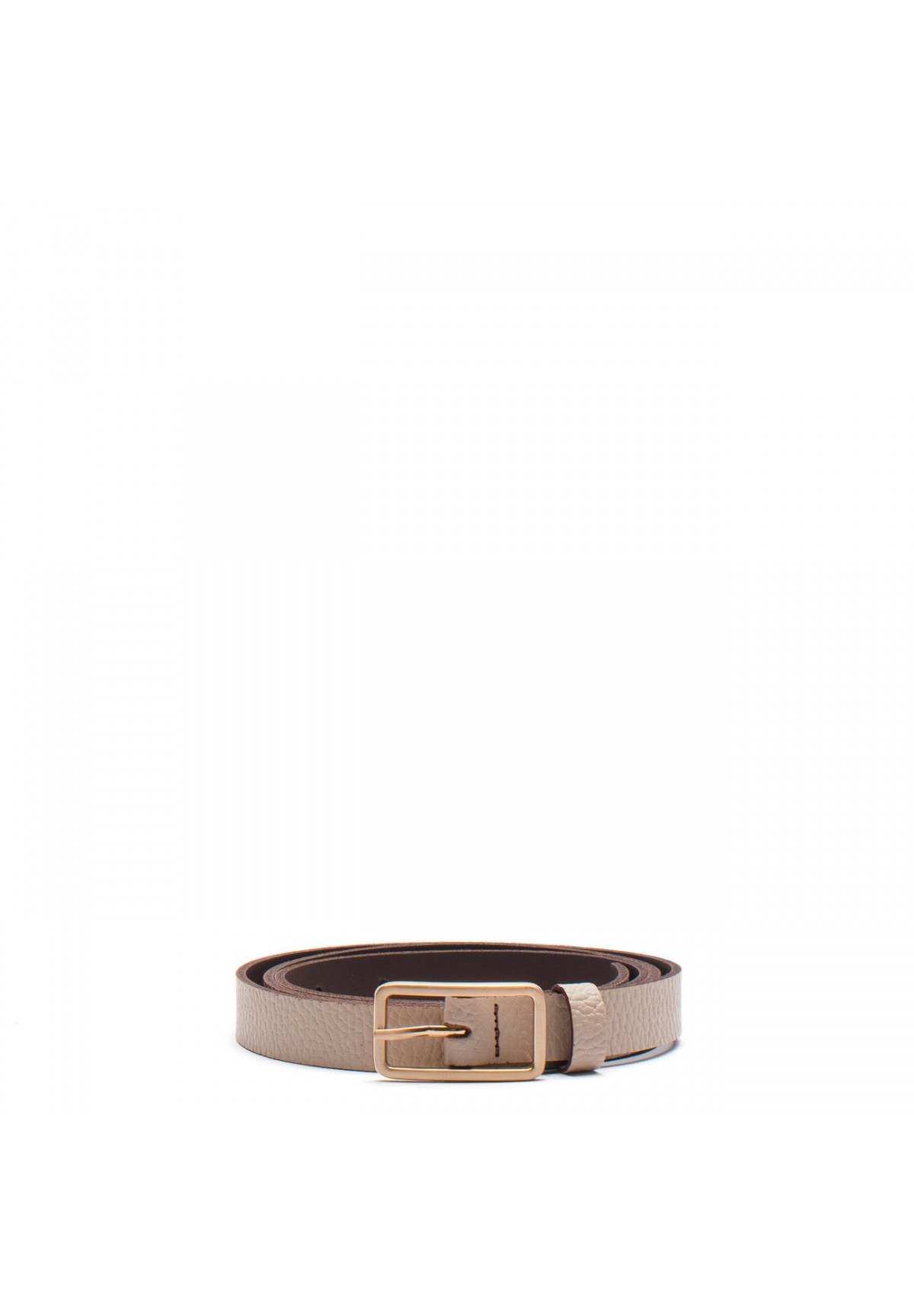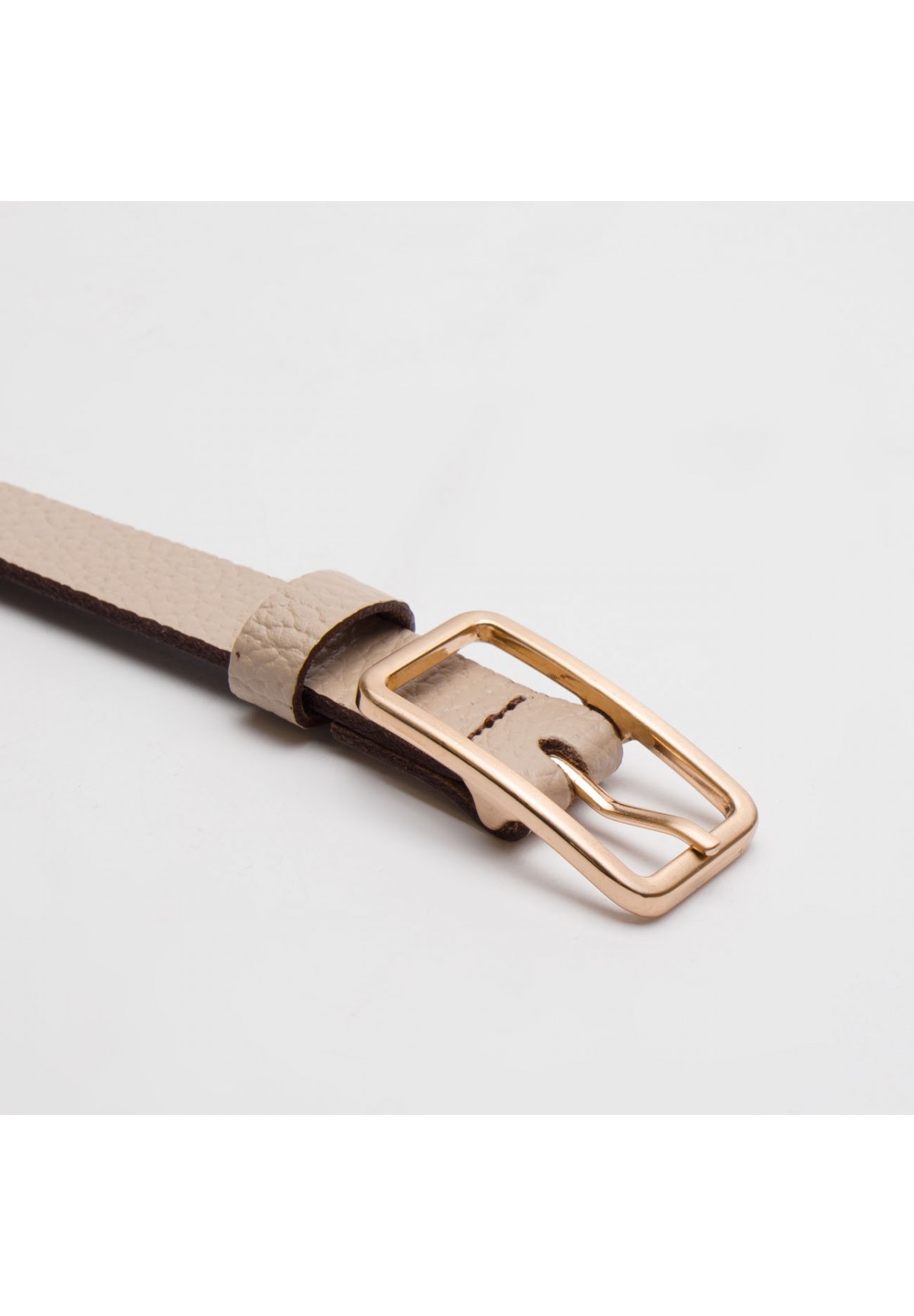 Cienki pasek damski w kolorze cappucino, wykonany z najwyższej jakości skóry naturalnej licowej, o groszkowanej fakturze. Jego szerokość, wynosząca 2 cm, sprawia, że jest idealnym wyborem zarówno do codziennych, jak i bardziej formalnych stylizacji. Pasek posiada prostokątną klamrę, która nadaje mu charakter.
