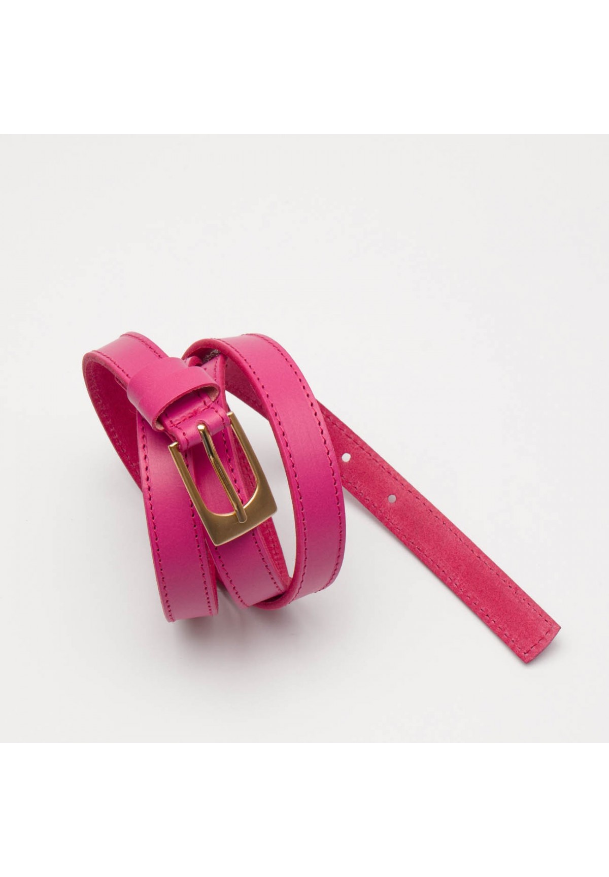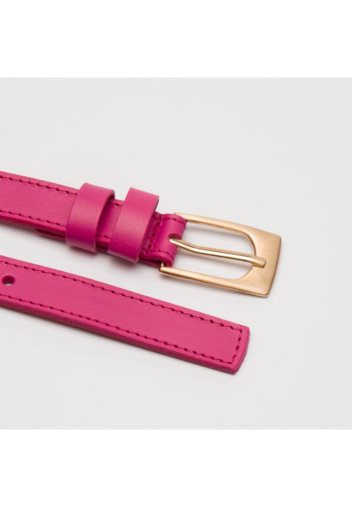 Damski pasek z naturalnej skóry w kolorze różowym to elegancki dodatek, który idealnie dopełni każdą stylizację. Wykonany z najwyższej jakości skóry, jest miękki i trwały. Jego szerokość wynosi 2 cm, co sprawia, że jest subtelny, ale zarazem wyrazisty. Pasek jest obszywany nicią w kolorze różowym, co nadaje mu spójny i estetyczny wygląd. Klamra w kolorze satynowego złota dodaje całości elegancji i luksusowego charakteru. Pasek damski jest doskonałym wyborem zarówno na co dzień, jak i na specjalne okazje.