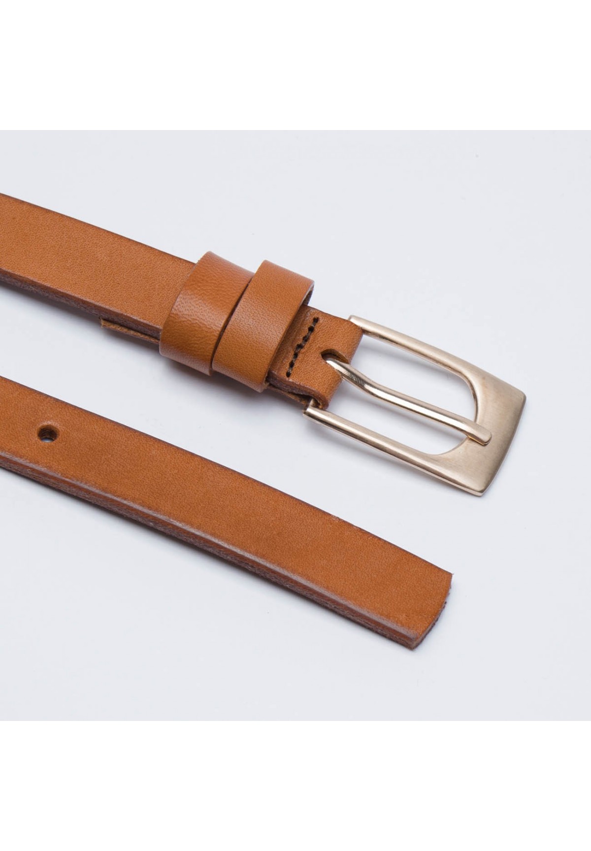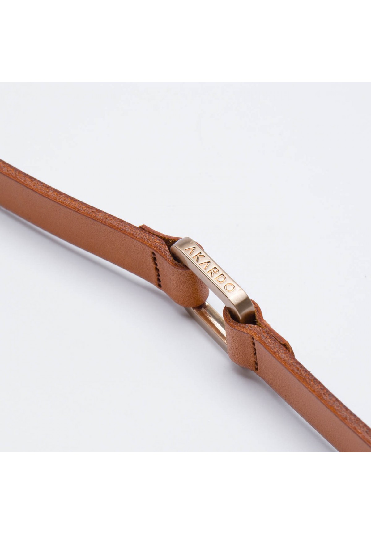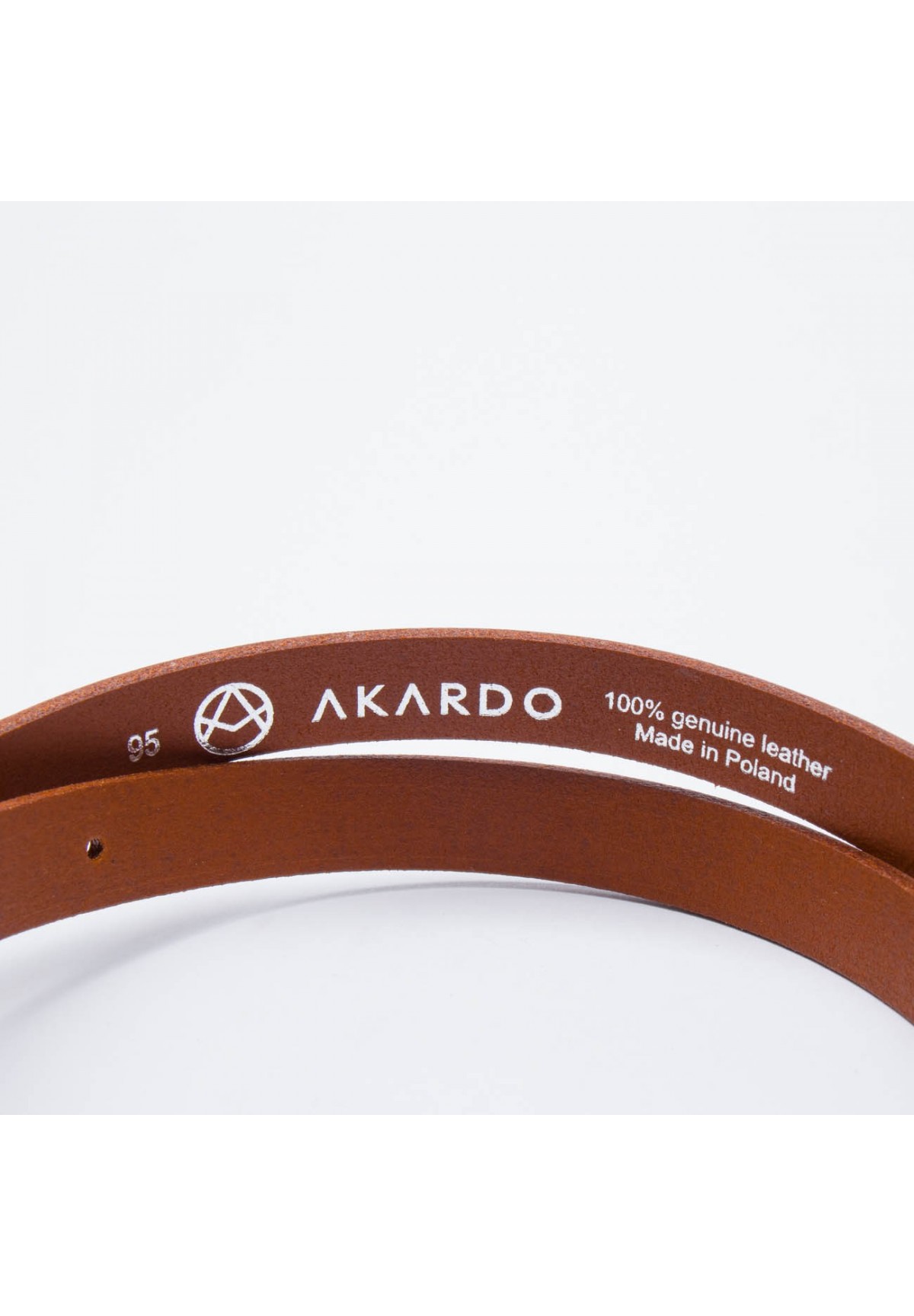 Pasek damski wykonany z najwyższej jakości skóry naturalnej w subtelnym odcieniu jasnego brązu. Ten wyjątkowy dodatek doskonale dopełni każdą sukienkę, nadając jej stylowego charakteru. Pasek wyróżnia się logowanym okuciem AKARDO, które stanowi gustowny akcent i podkreśla jego unikalność. Jego szerokość wynosząca około 2 cm czyni go doskonałym wyborem do różnorodnych stylizacji, zarówno casualowych, jak i bardziej eleganckich. Złota klamra dodaje paskowi wyjątkowego blasku i elegancji. Dzięki solidnemu wykonaniu i dbałości o każdy detal, pasek nie tylko wygląda pięknie, ale także zapewnia trwałość i komfort noszenia. To idealny dodatek, który podkreśli Twoją kobiecość i styl.