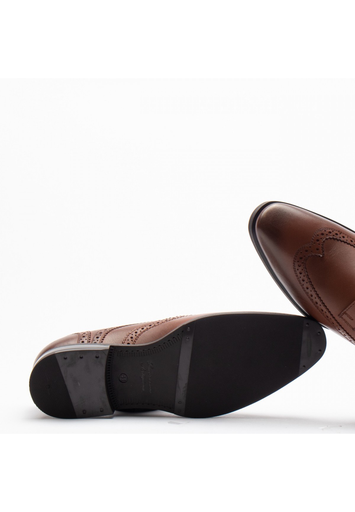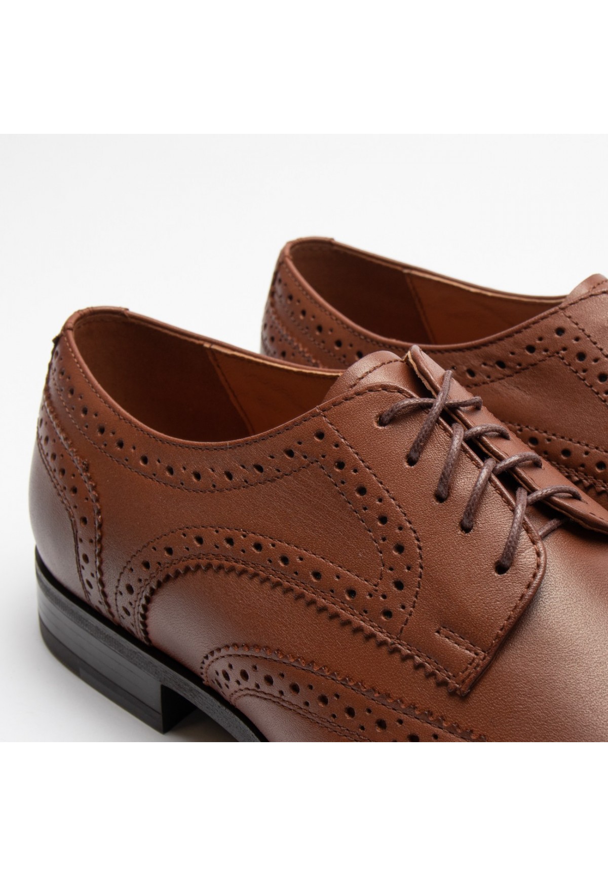 Eleganckie półbuty typu Brogsy. Wykonane z ręcznie malowanej skóry licowej w kolorze brązowym. Najbardziej uniwersalny spośród klasycznych, eleganckich modeli. Liczne przeszycia i zdobienia cechujące brogsy sprawiają, że buty będą idealnym uzupełnieniem dla wielu stylizacji.