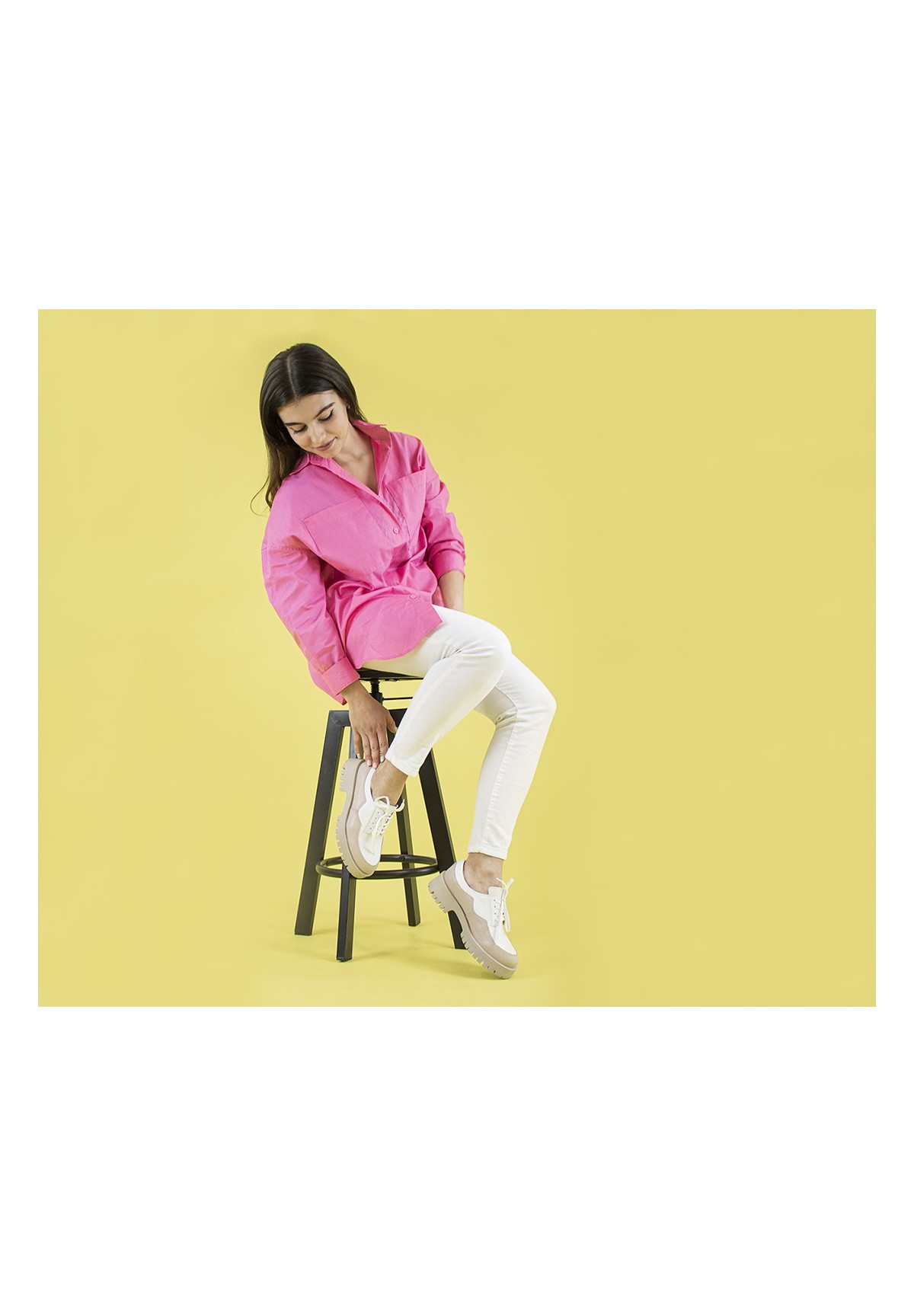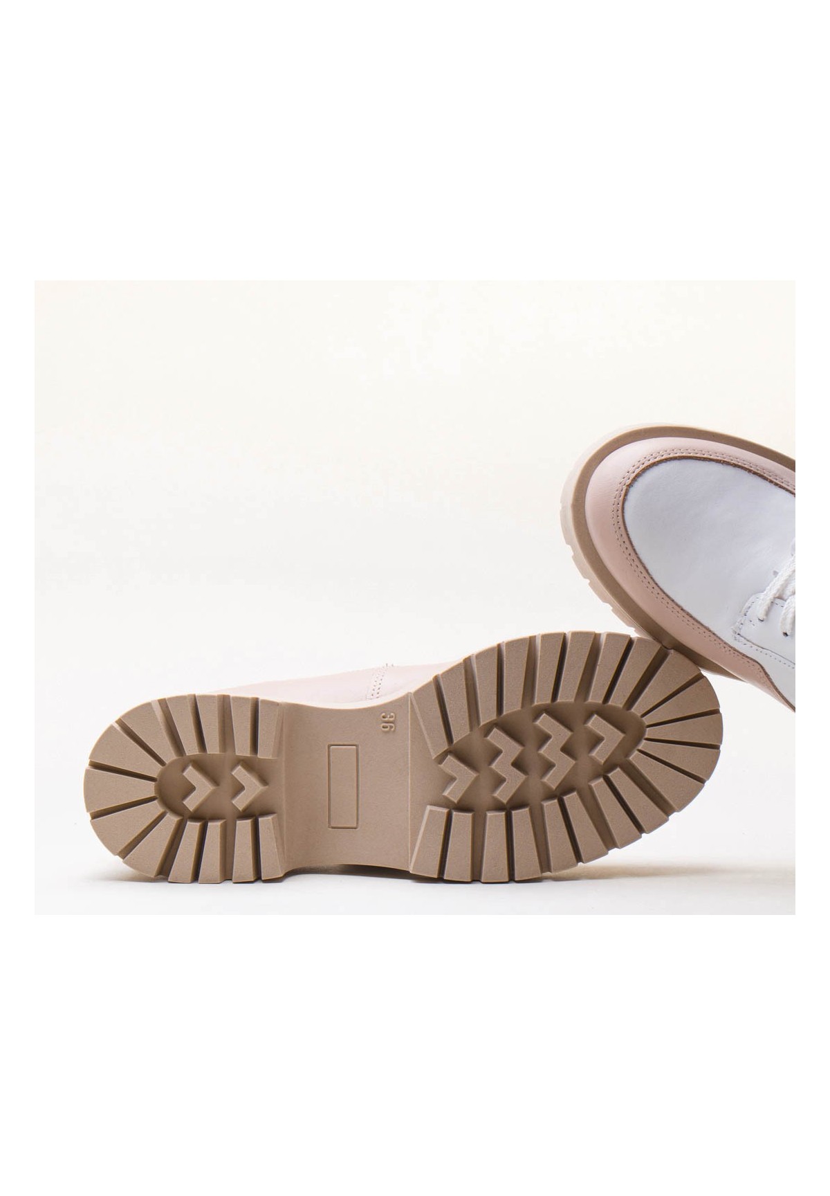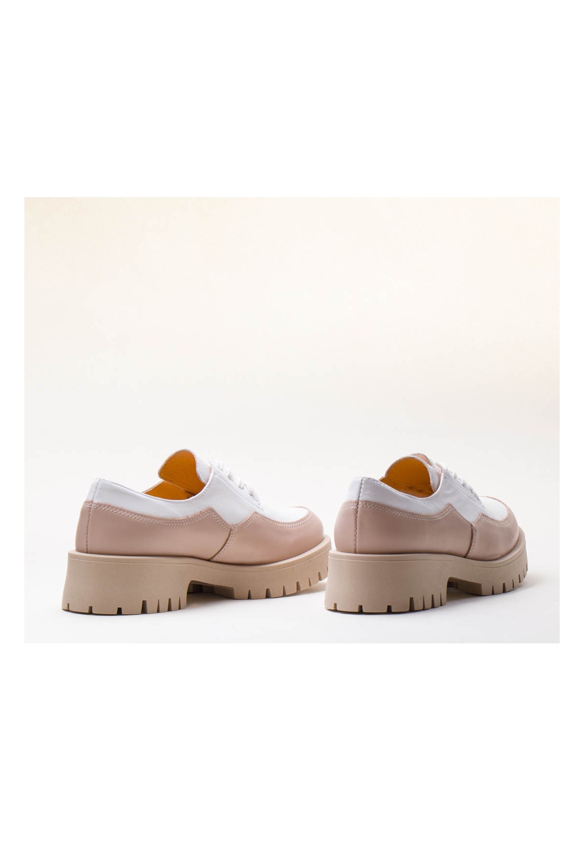 Biało-beżowe półbuty wykonane z naturalnej skóry licowej.