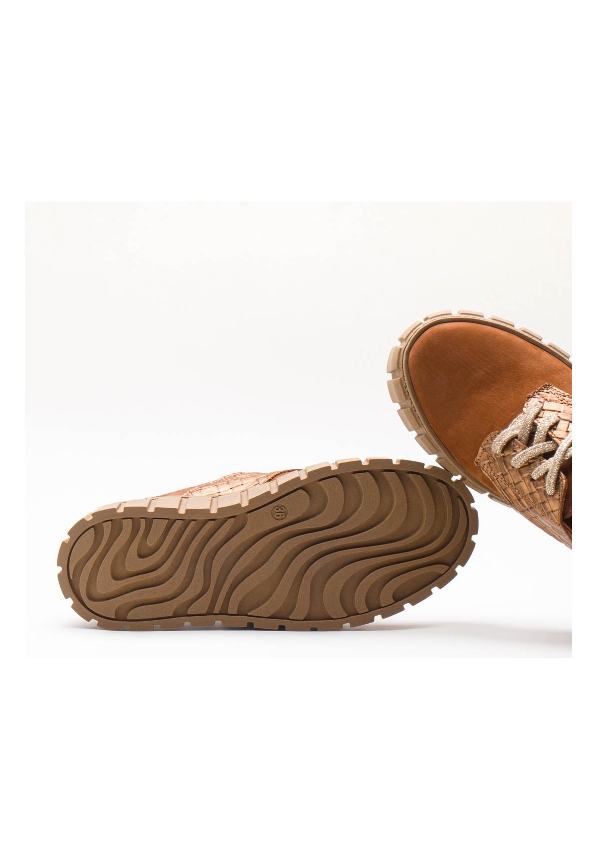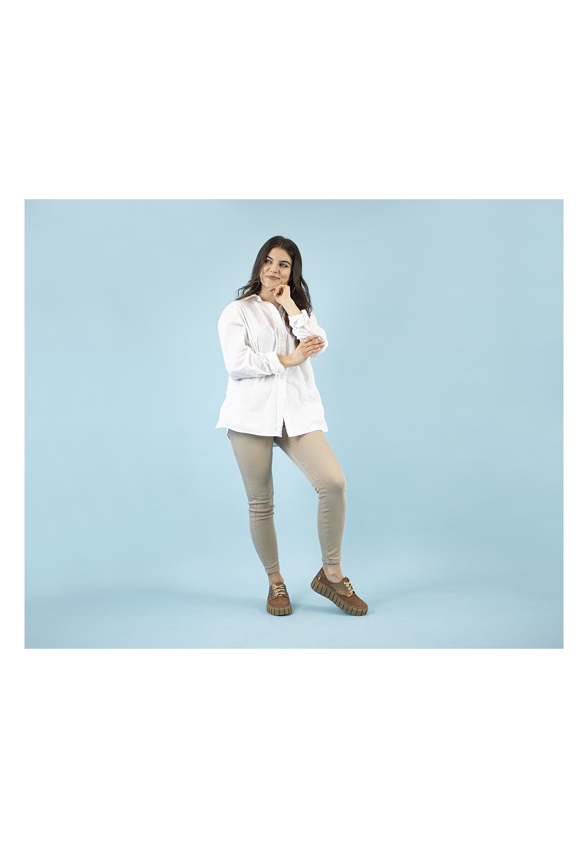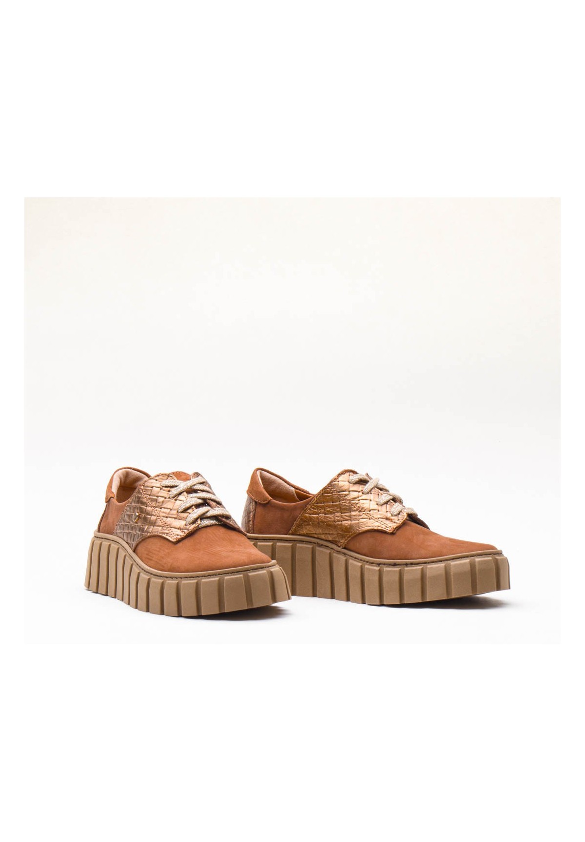 Półbuty wykonane z naturalnej skóry nubukowej w kolorze brązowym. Posiadają wstawki ze skóry licowej.