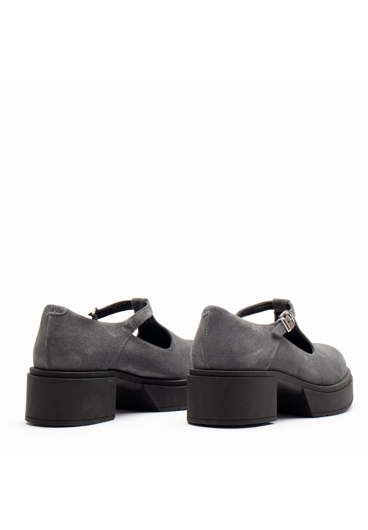 Wyjątkowe półbuty damskie wykonane są z miękkiej, welurowej skóry naturalnej o gładkiej fakturze, dodając im elegancji i luksusowego wyglądu. Ich platforma z obcasem typu słupek zapewnia stabilność i komfort noszenia, podkreślając jednocześnie doskonały styl. Zapinane są za pomocą delikatnego paska ze sprzączką, który dodaje im subtelnego akcentu. Okrągły nosek nadaje im klasycznego wyrazu, jednocześnie zapewniając przestronność dla stopy. Wnętrze półbutów jest wyściełane miękką skórą naturalną, zapewniającą uczucie wygody na każdym kroku. Dodatkowo, wkładka wykonana z tej samej wysokiej jakości skóry naturalnej zapewnia doskonałe wsparcie dla stopy. Półbuty posiadają interesujące wycięcia na górnej części cholewki, nadając im niepowtarzalny, modny charakter. Te półbuty są idealnym wyborem dla kobiet poszukujących połączenia stylu, wygody i jakości.