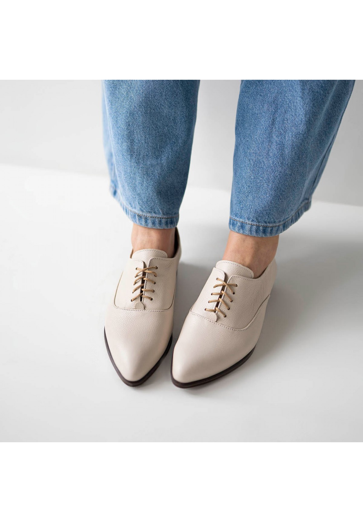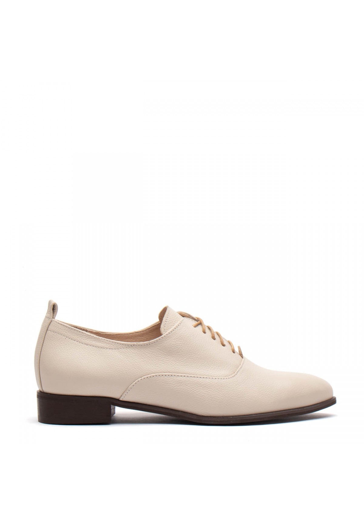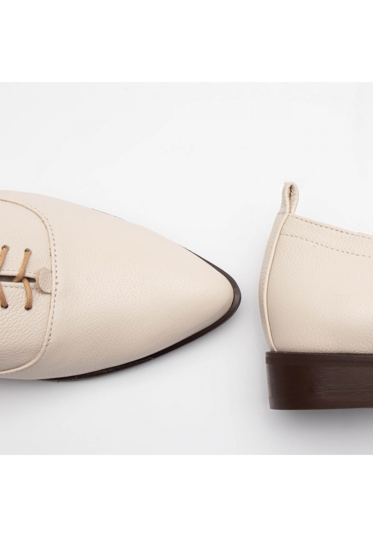 Eleganckie półbuty damskie, stworzone z wysokiej jakości skóry naturalnej o gładkiej fakturze, wyróżniają się subtelnością i komfortem noszenia. Ich niski obcas zapewnia stabilność, idealny zarówno na co dzień, jak i na specjalne okazje. Wiązane za pomocą delikatnych, okrągłych sznurówek, zapewniają doskonałe dopasowanie do stopy. Nosek sięgający ku szpicowi dodaje finezji, podkreślając kobiecy design. Wnętrze półbutów wyścielane jest miękką skórą naturalną, zapewniającą odpowiednią wentylację i uczucie miękkości podczas noszenia. Dodatkowo, wkładka wykonana z wysokiej jakości skóry naturalnej gwarantuje wygodę i wsparcie dla stopy przez cały dzień. Te półbuty są idealnym wyborem dla kobiet ceniących zarówno styl, jak i komfort.